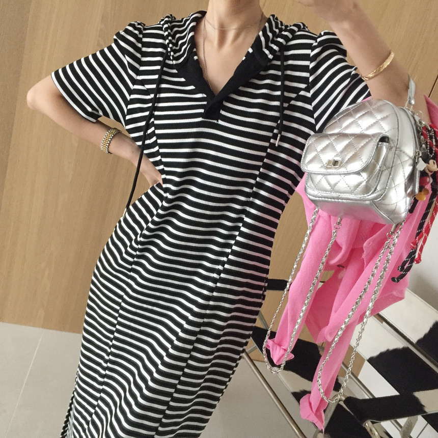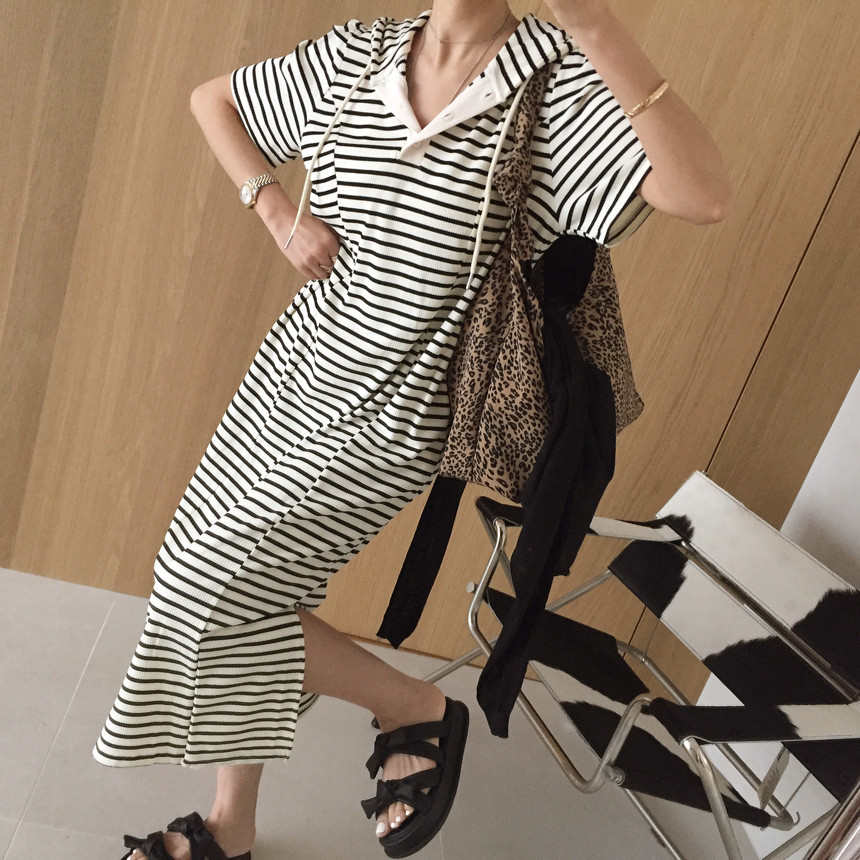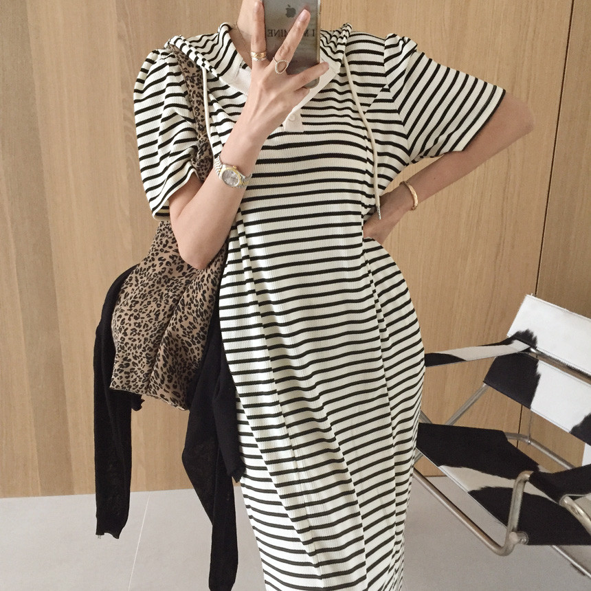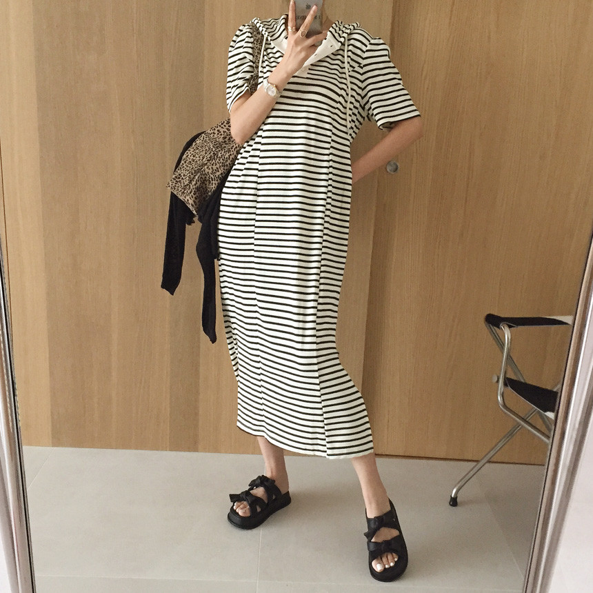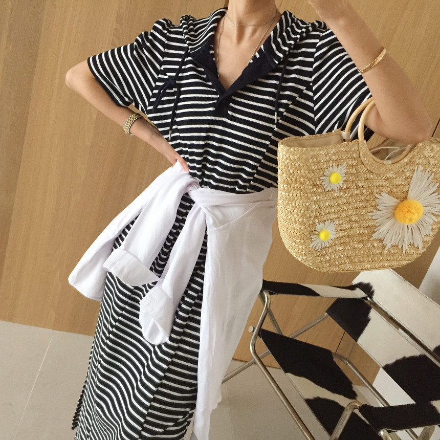후드 단가라 스트링 반팔 니트지 롱원피스 보여드릴게용!