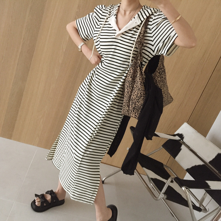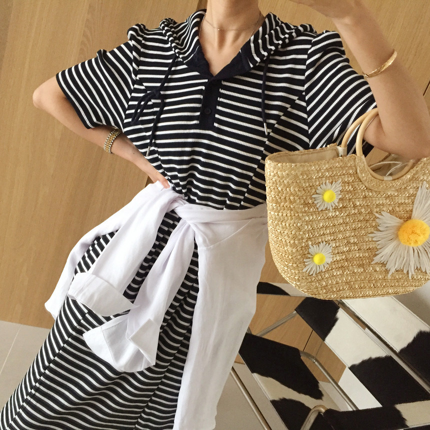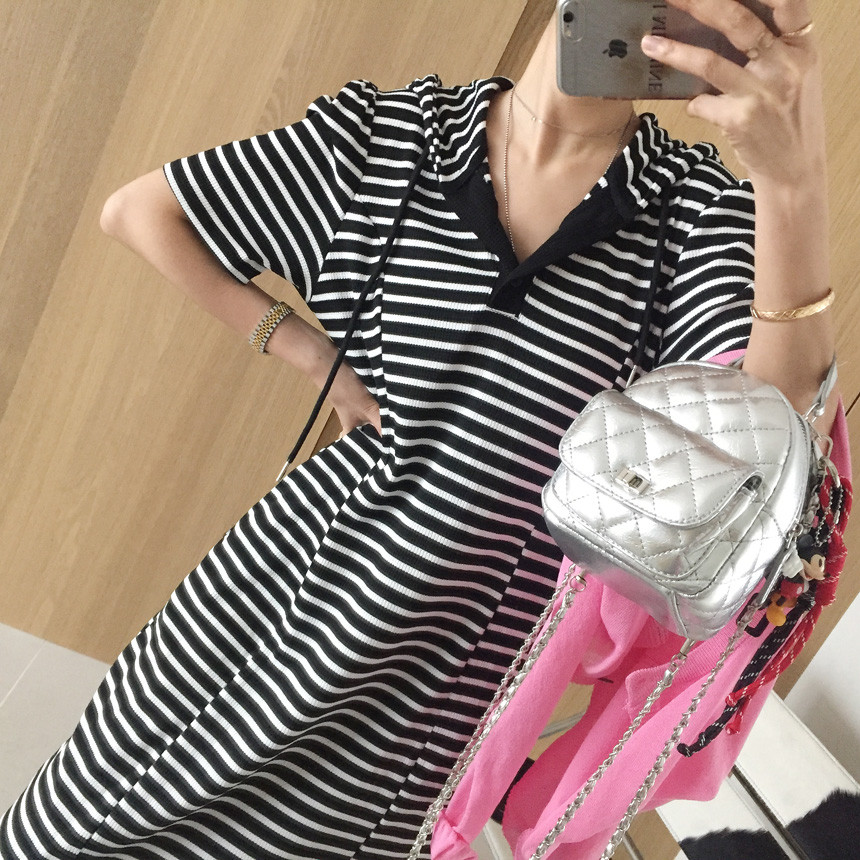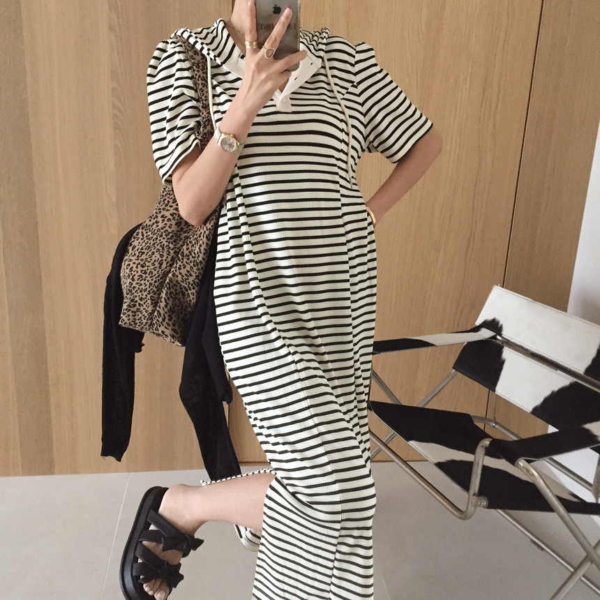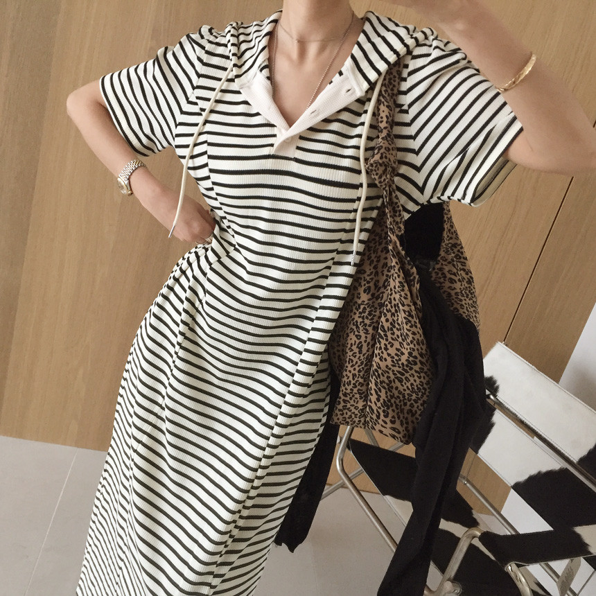 후드 단가라 스트링 반팔 니트지 롱원피스 보여드릴게용!