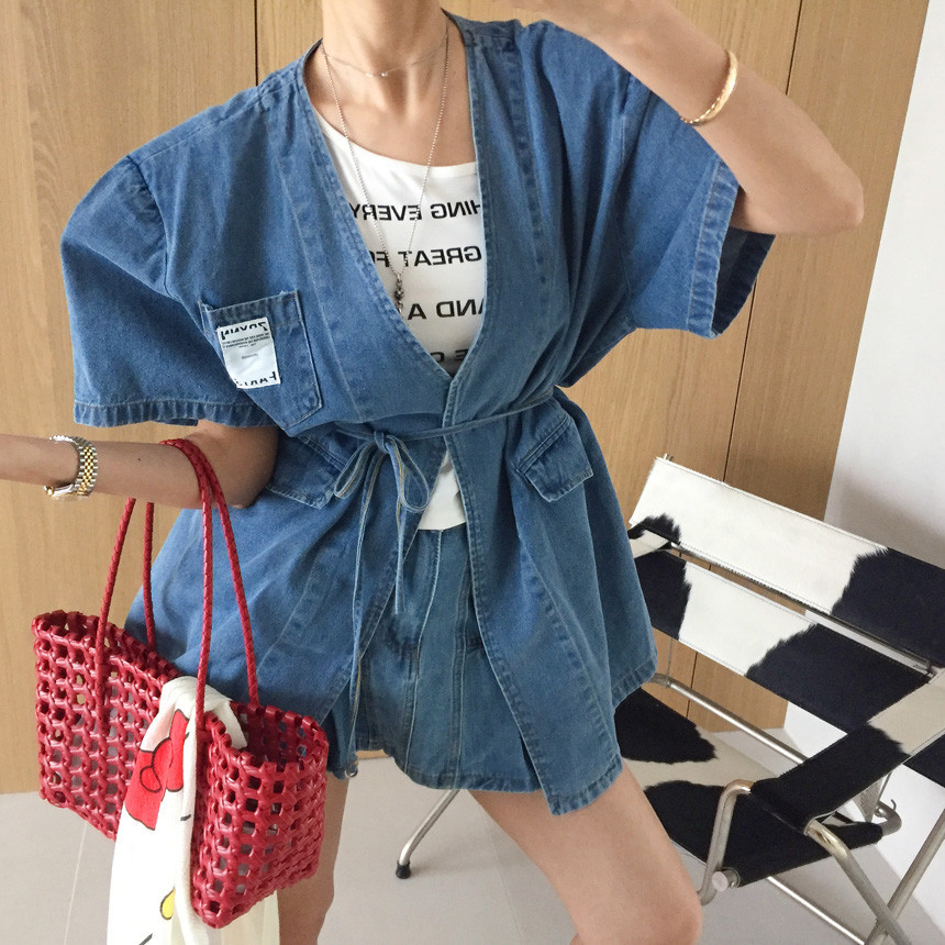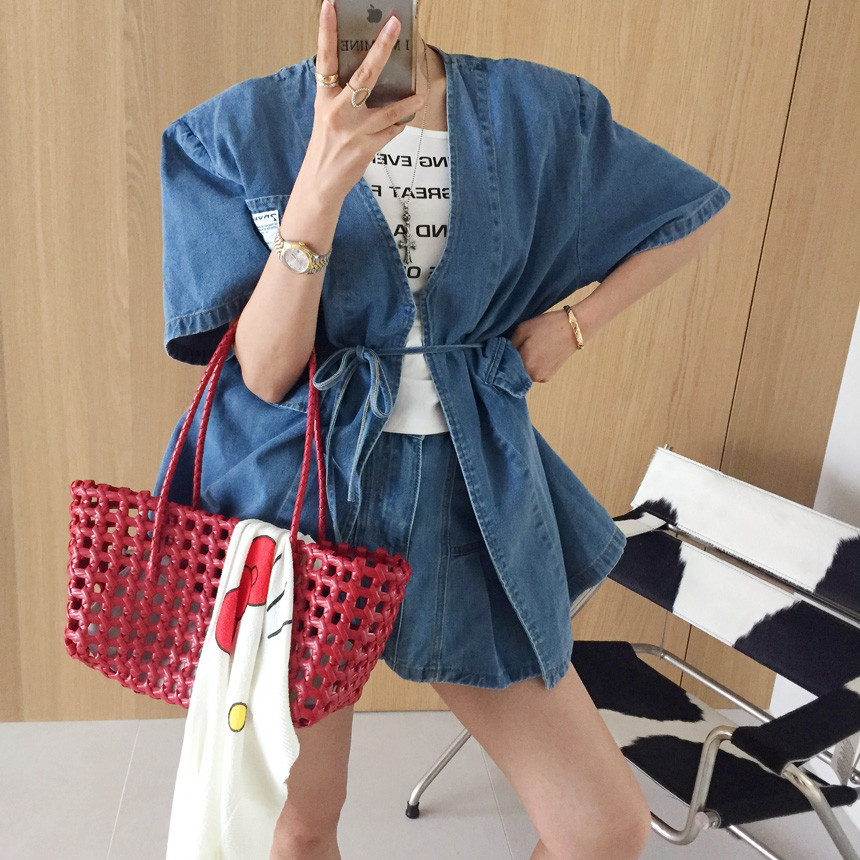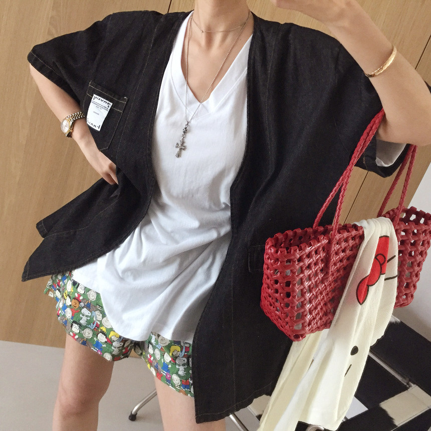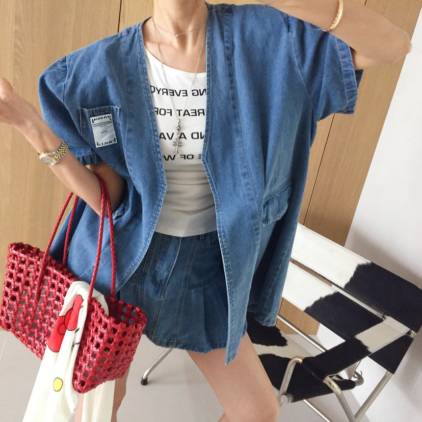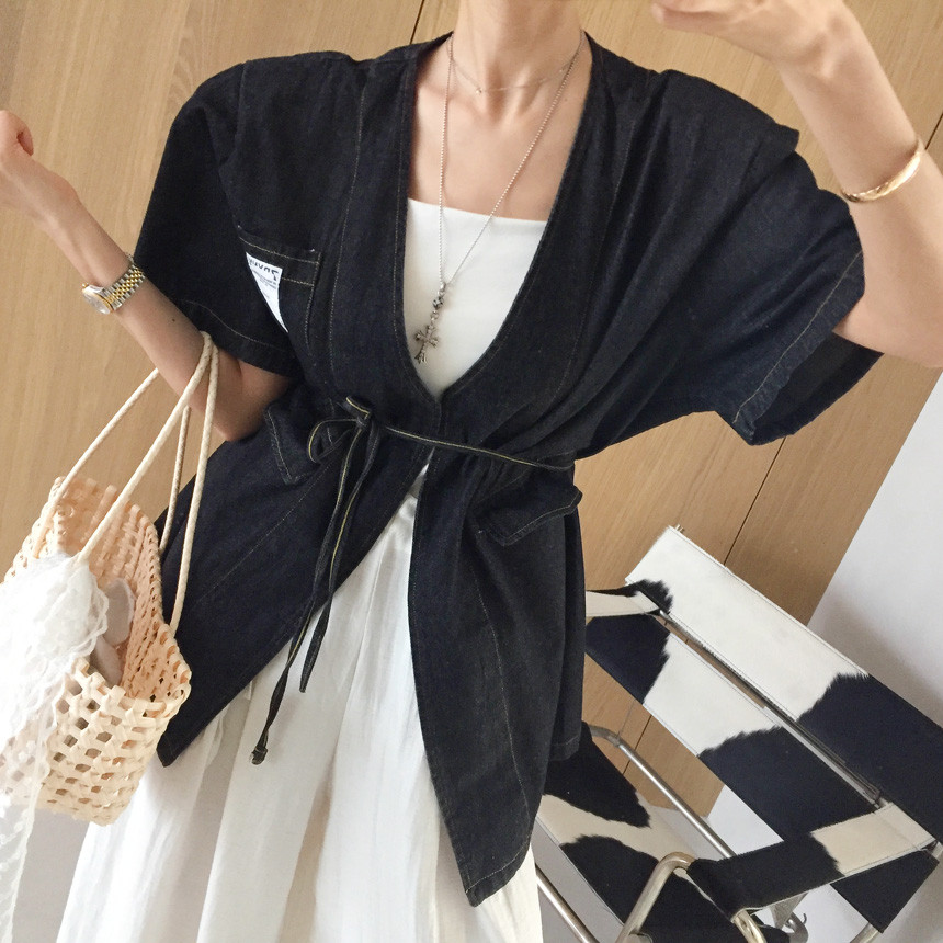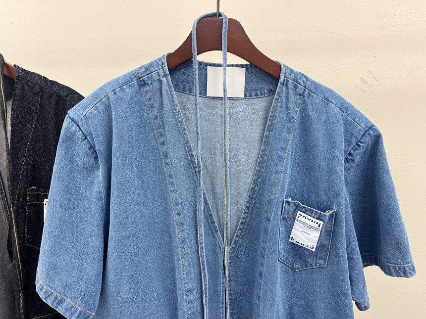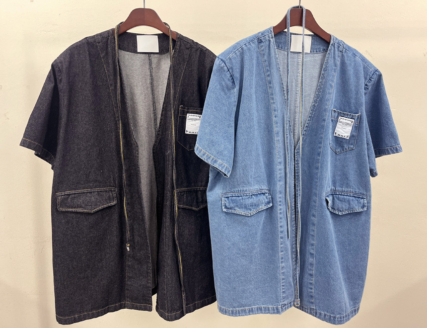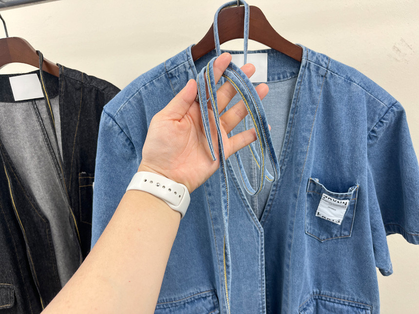 노카라 벨트세트 패치 포켓 반팔 데님자켓 소개드릴게요^^