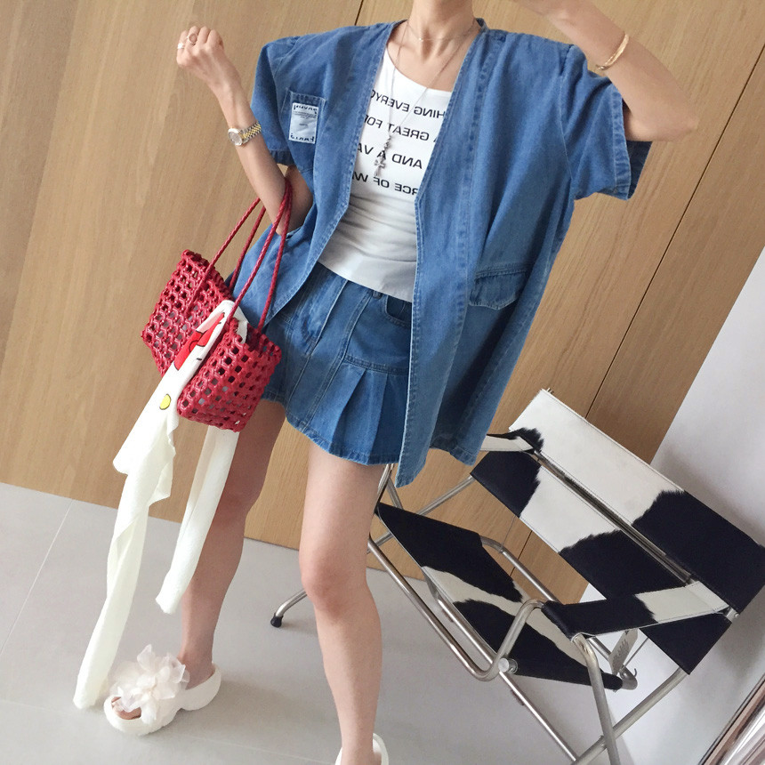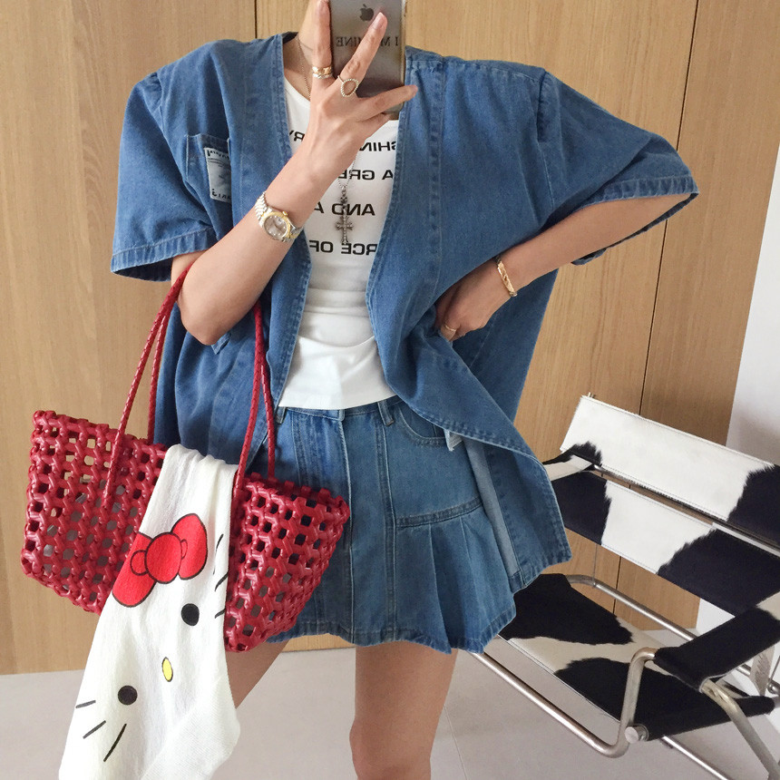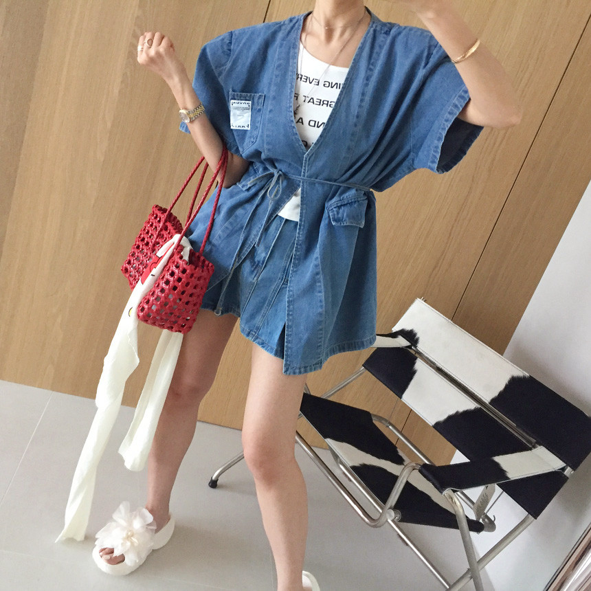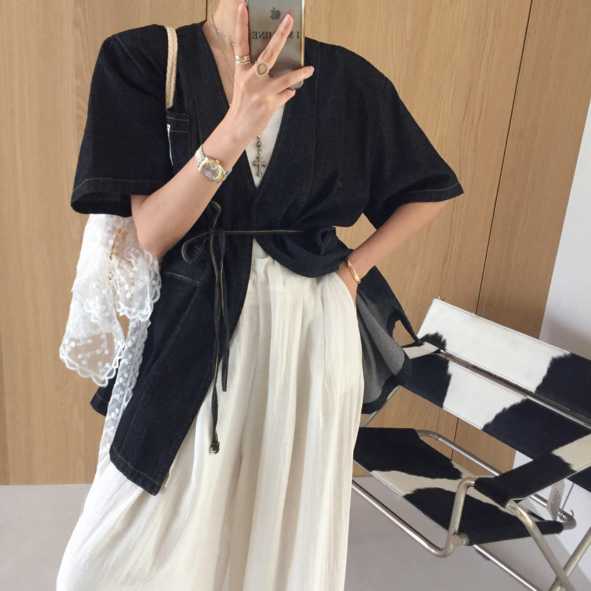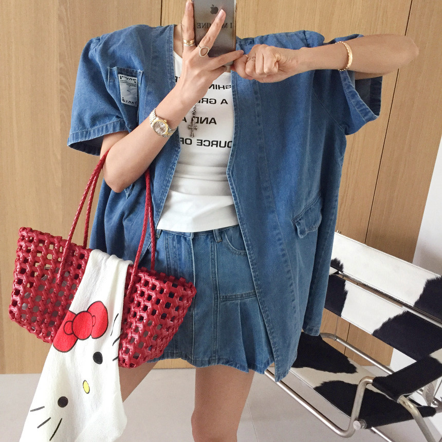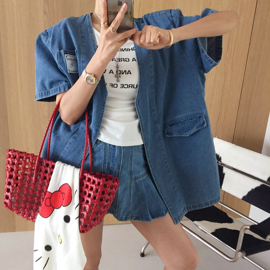 노카라 벨트세트 패치 포켓 반팔 데님자켓 소개드릴게요^^