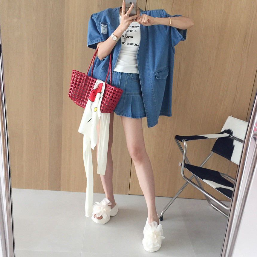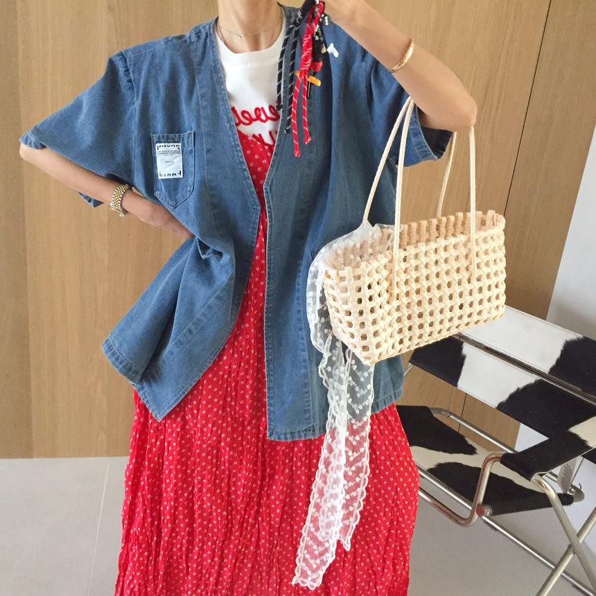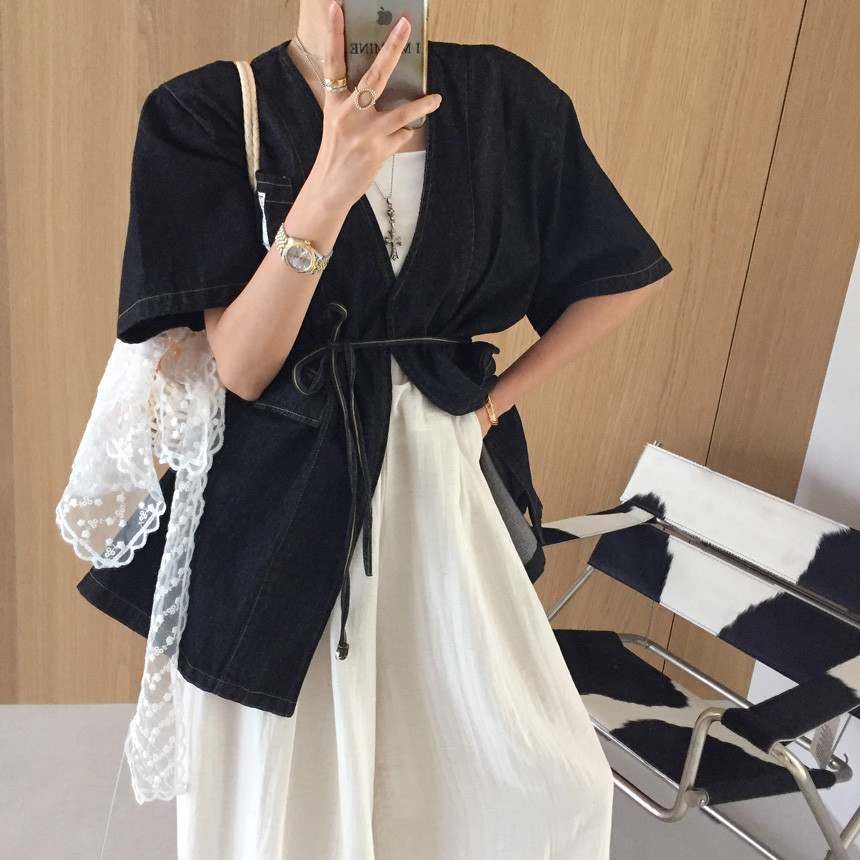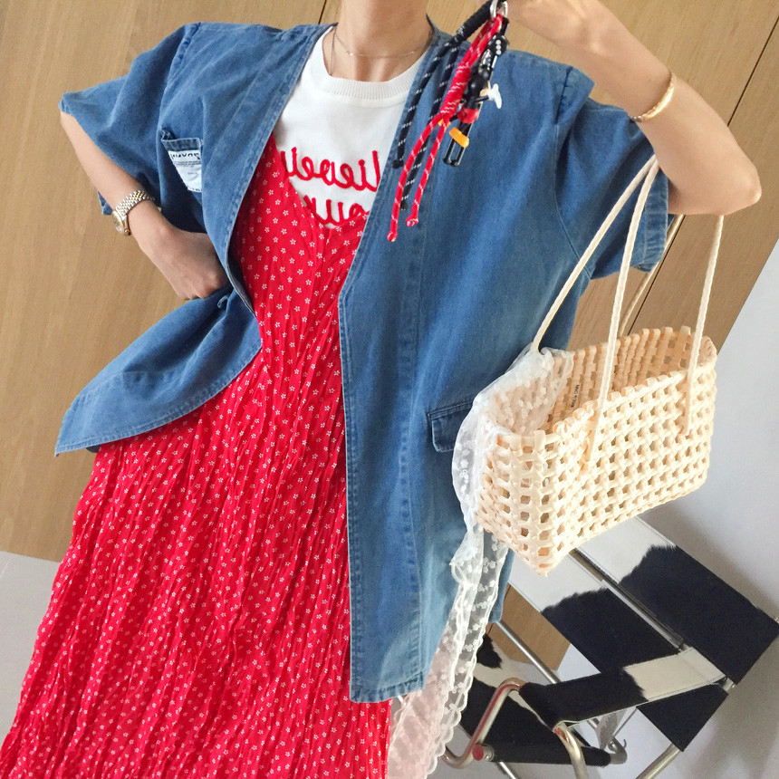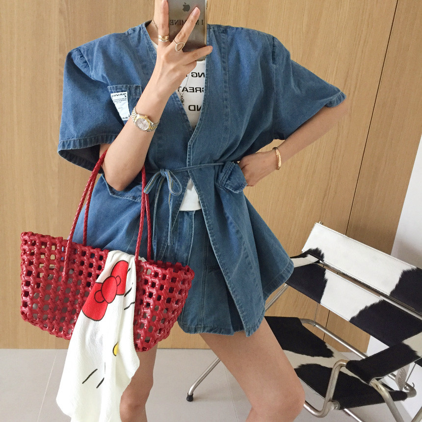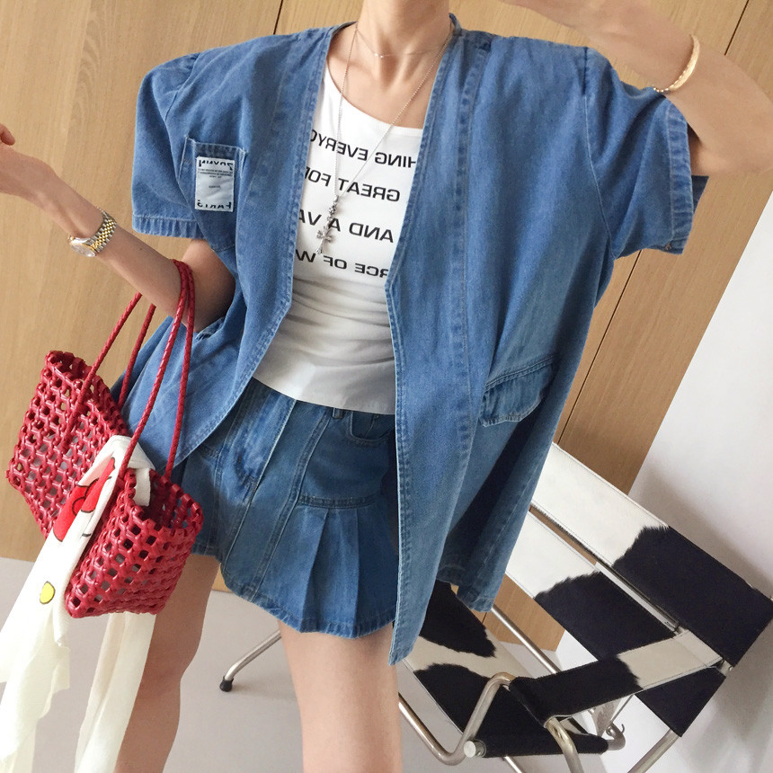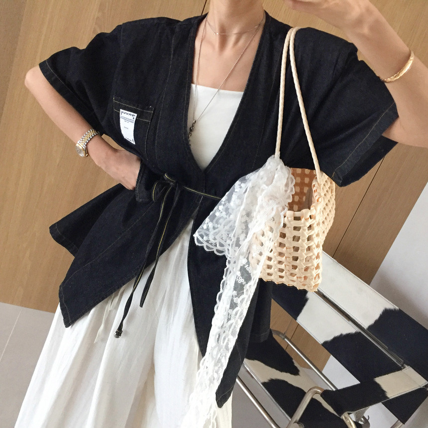 노카라 벨트세트 패치 포켓 반팔 데님자켓 소개드릴게요^^