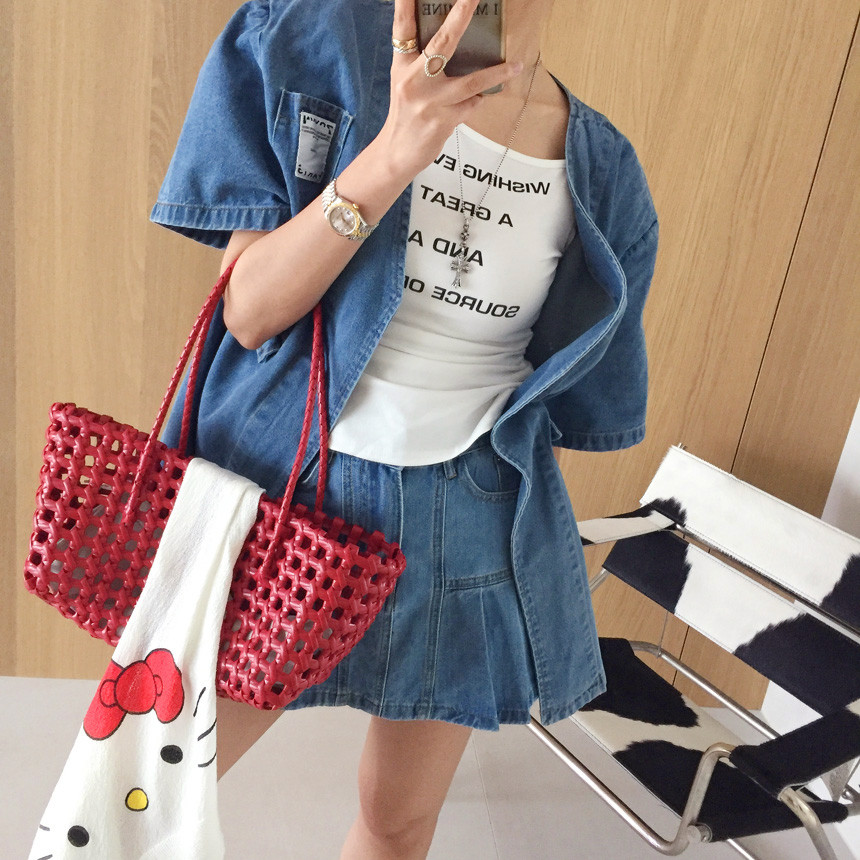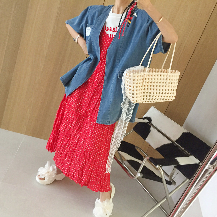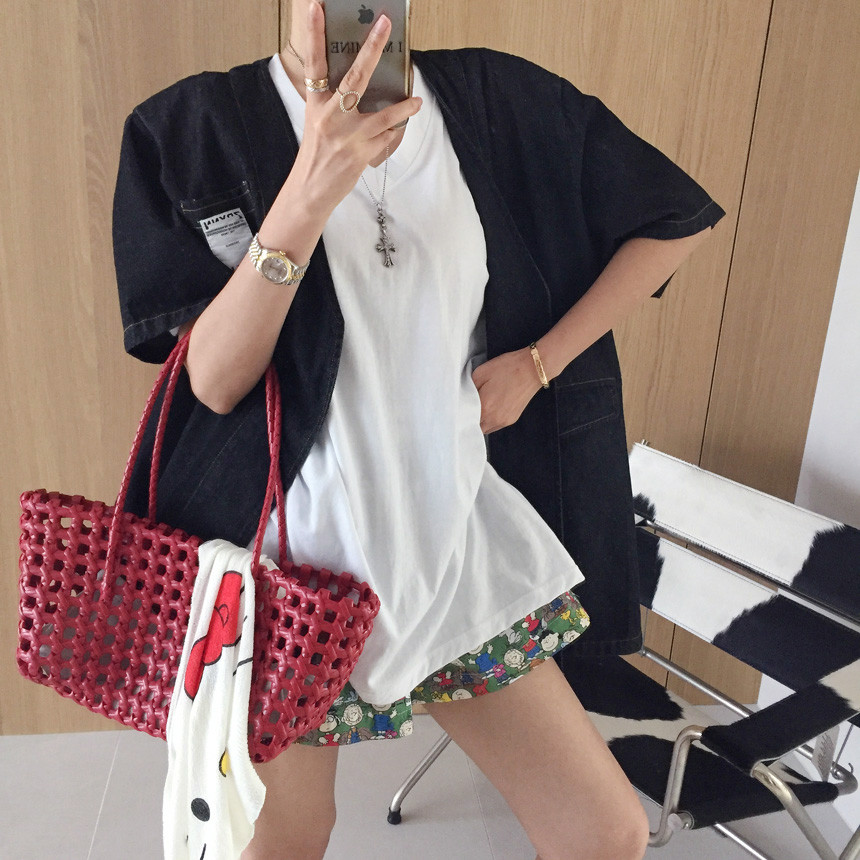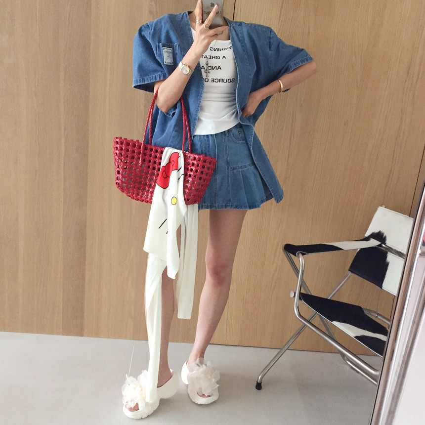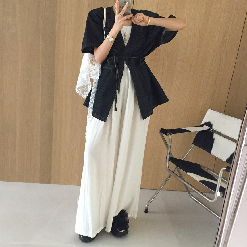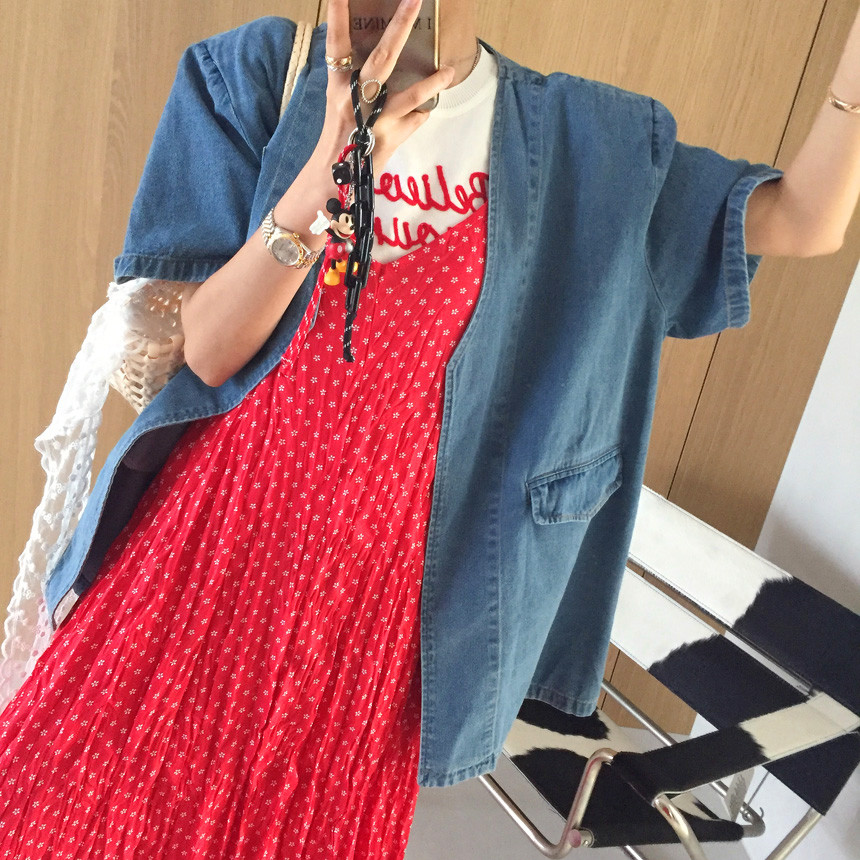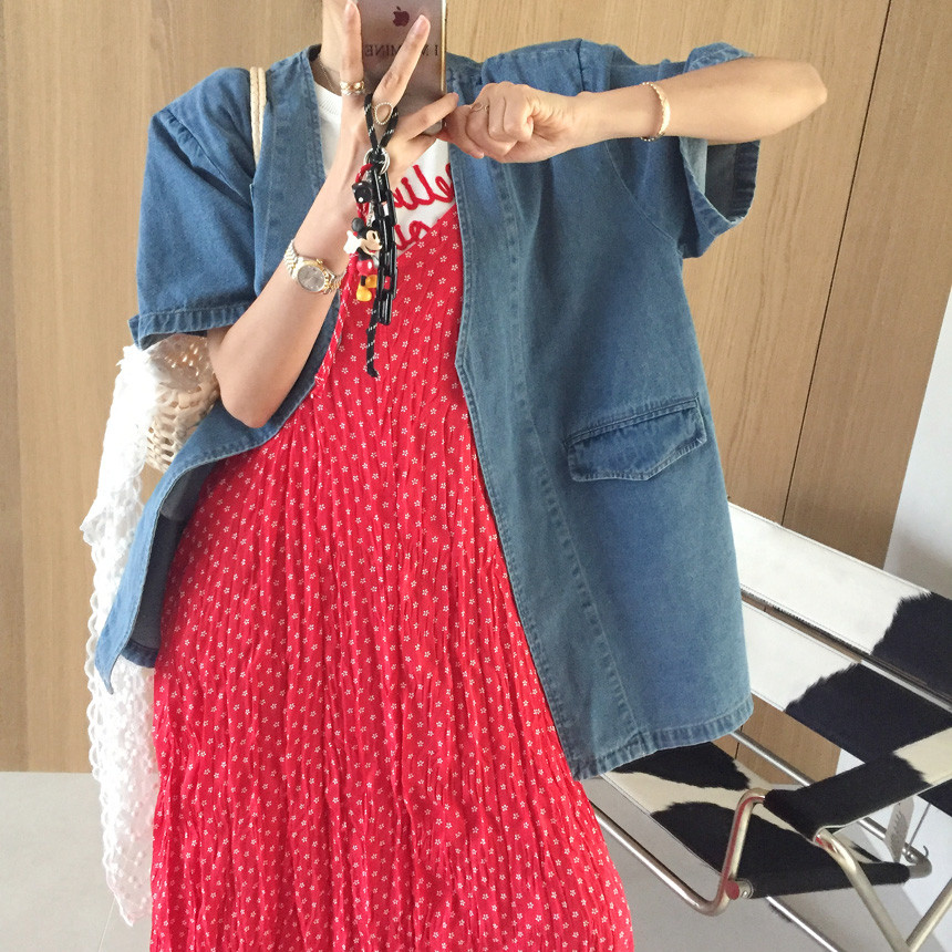 노카라 벨트세트 패치 포켓 반팔 데님자켓 소개드릴게요^^