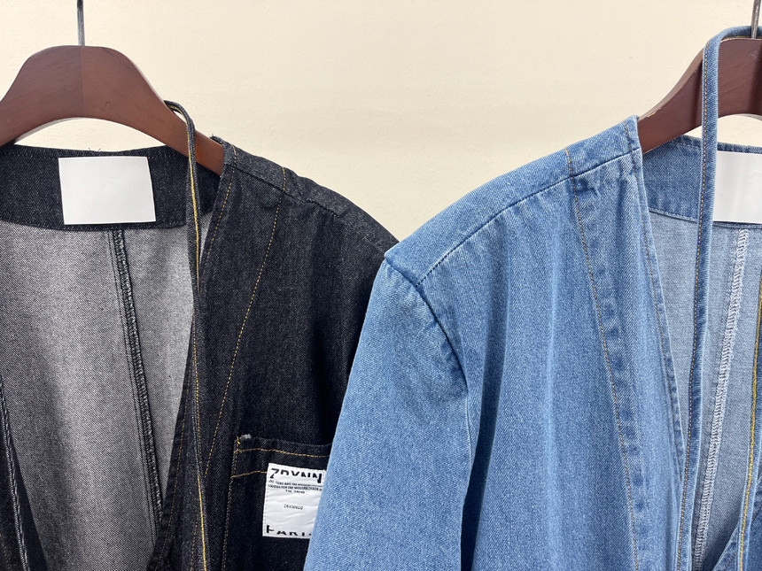 노카라 디자인으로 깔끔한 아웃핏이 연출되고