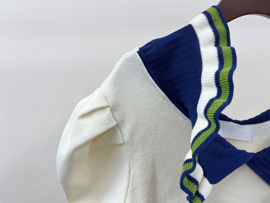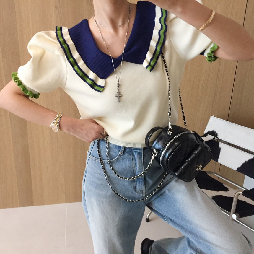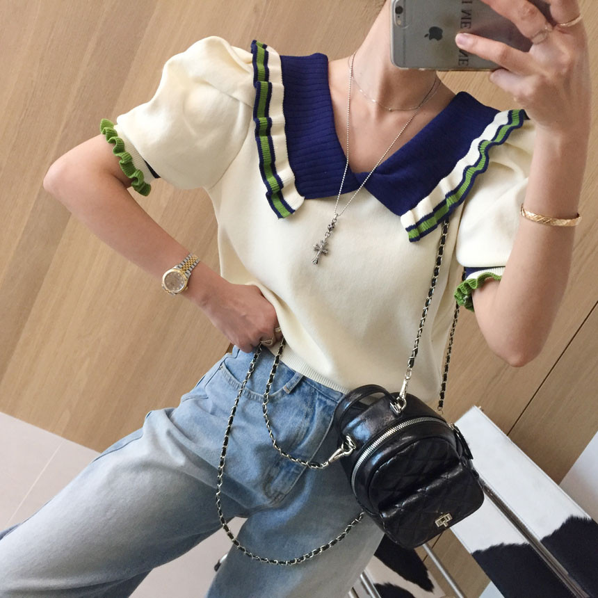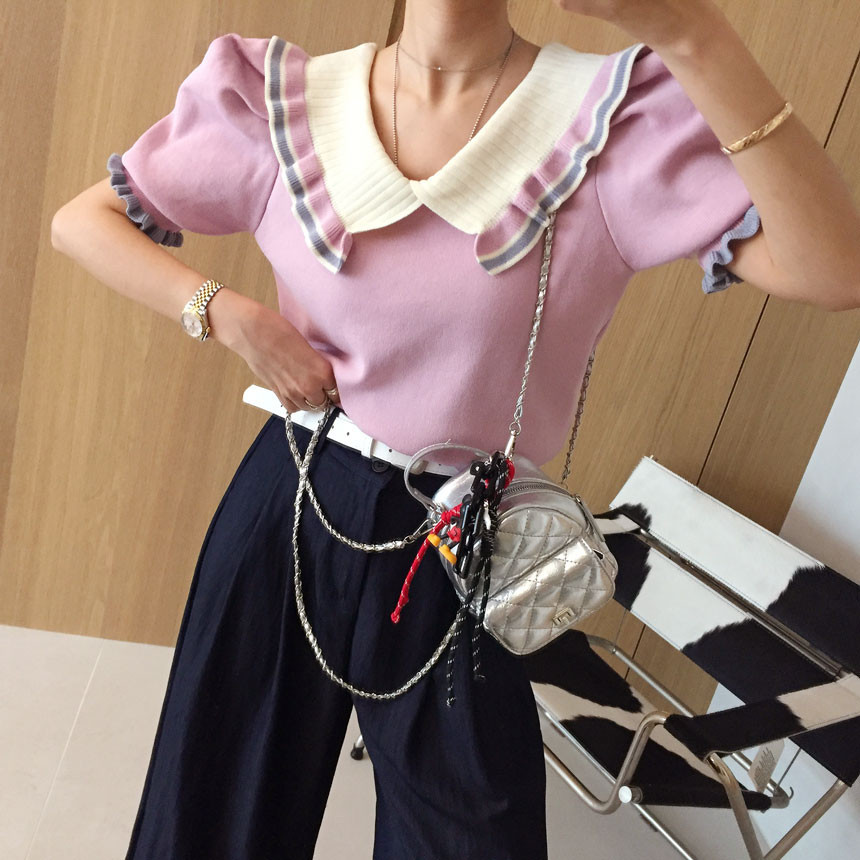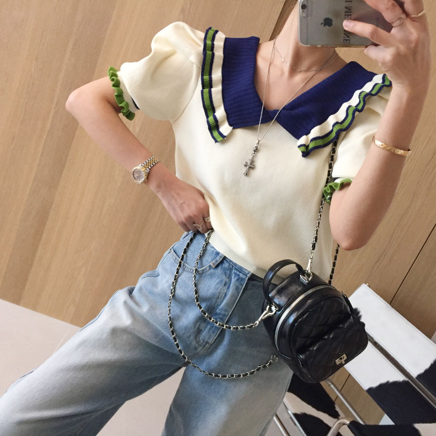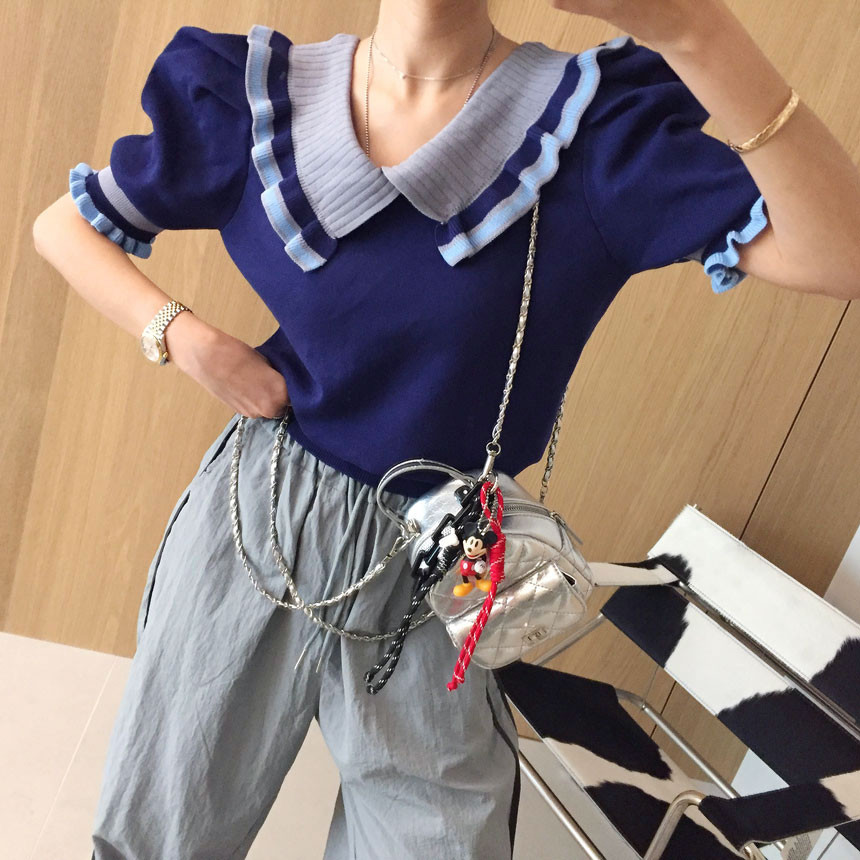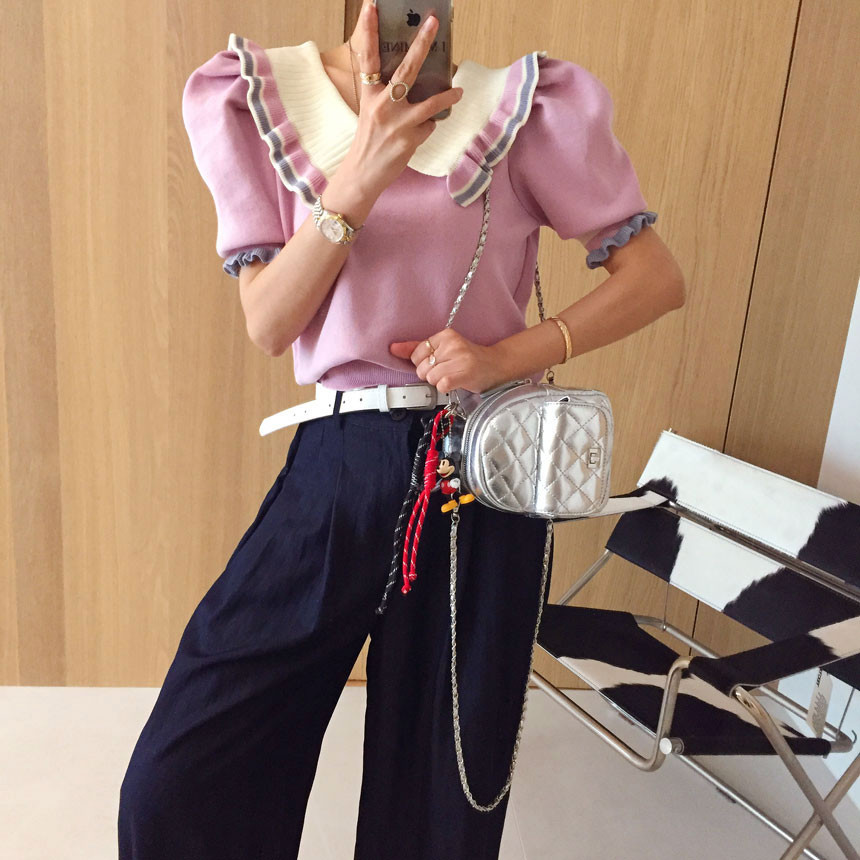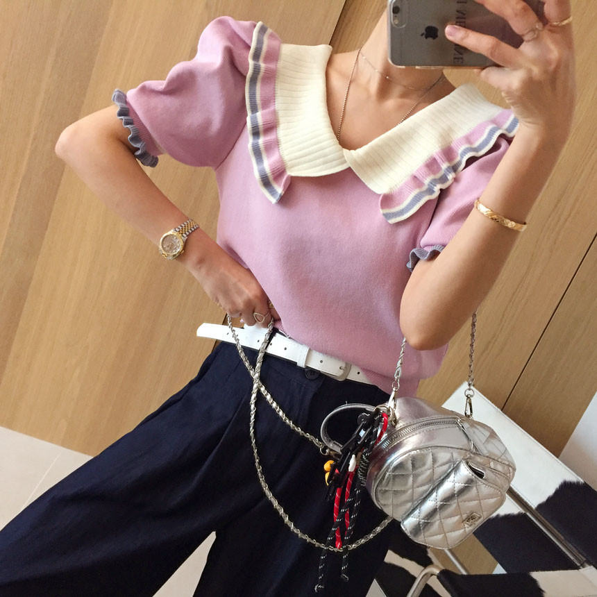 레이스 프릴 카라 퍼프 반팔니트 소개드려용^^