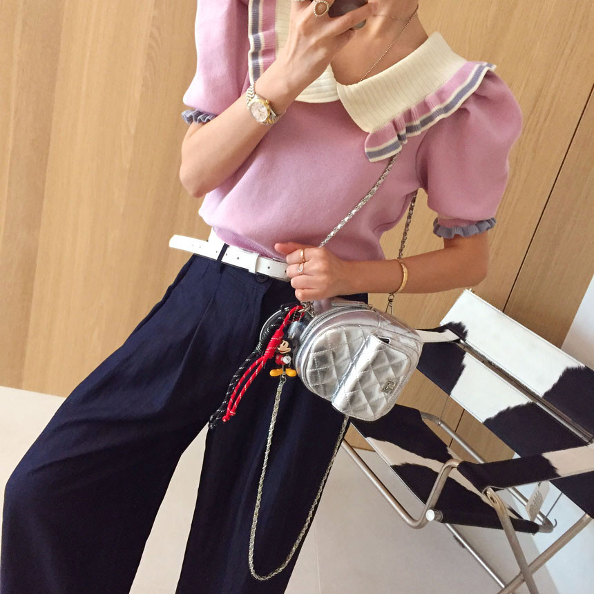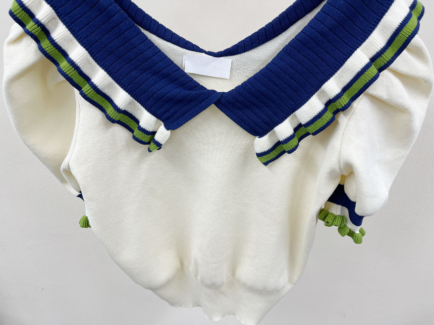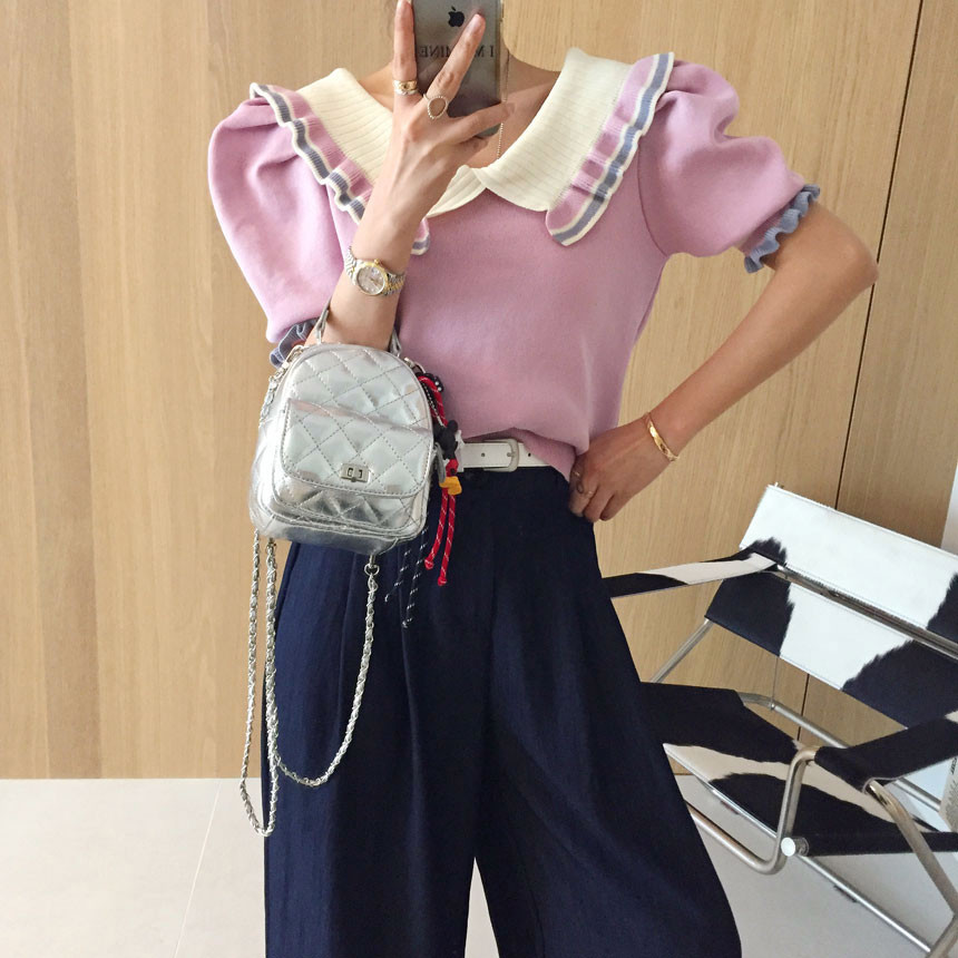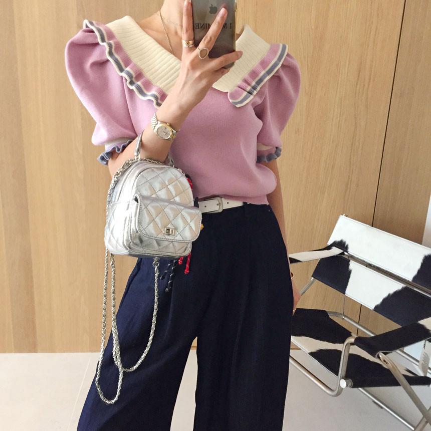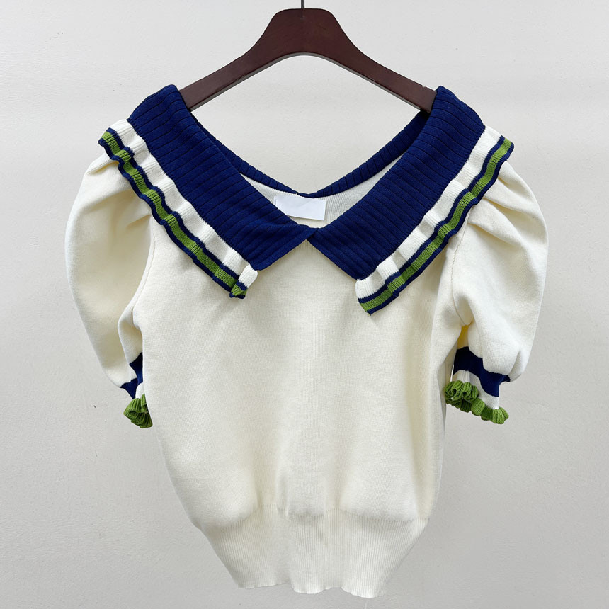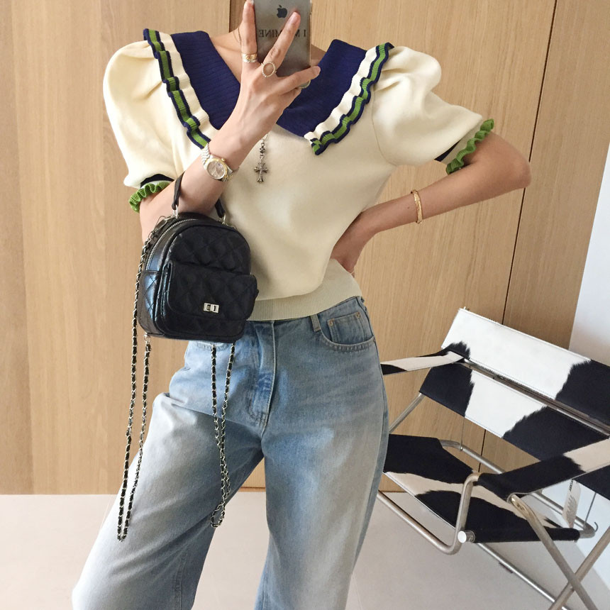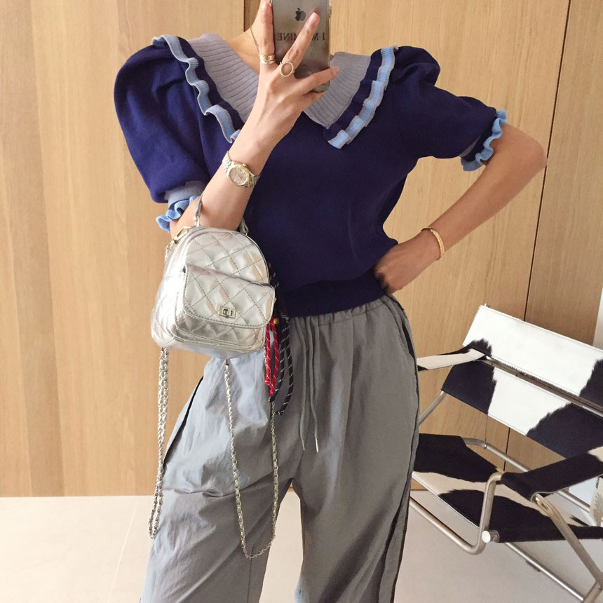 레이스 프릴 카라 퍼프 반팔니트 소개드려용^^