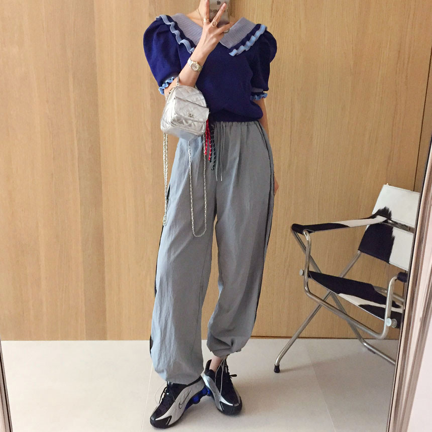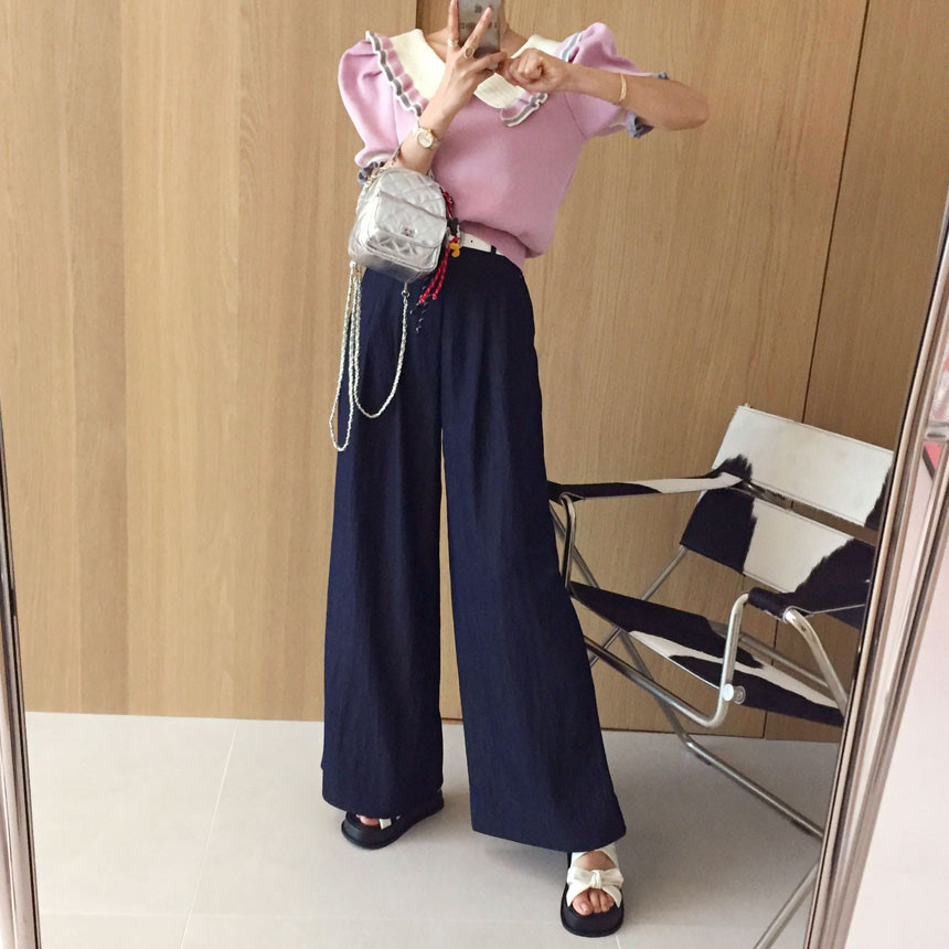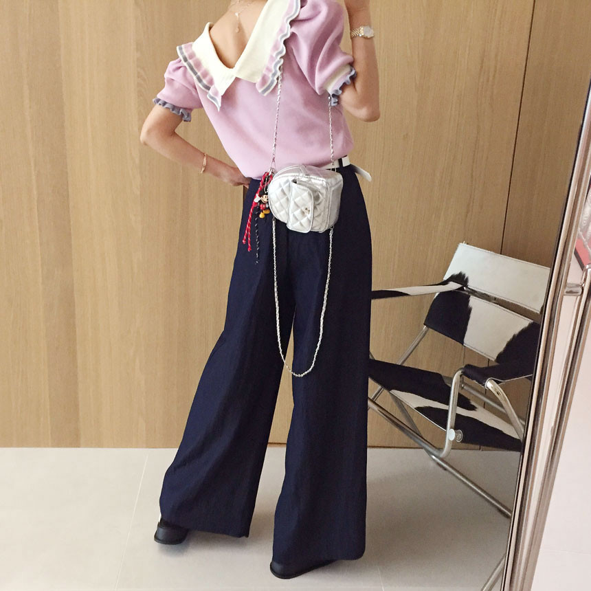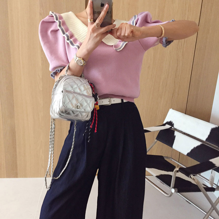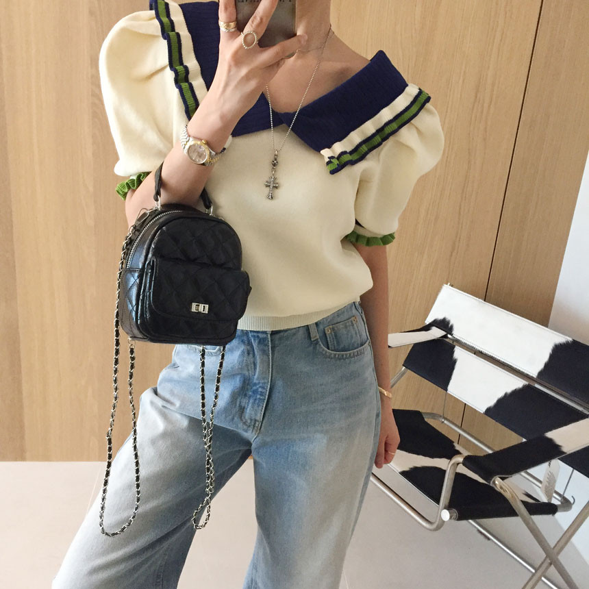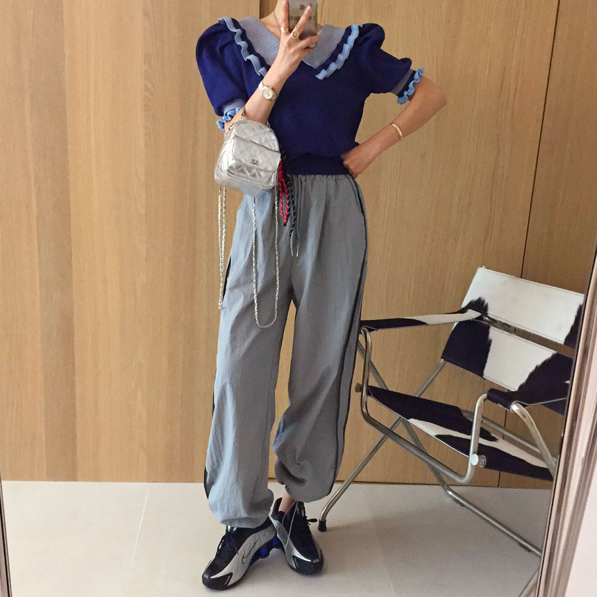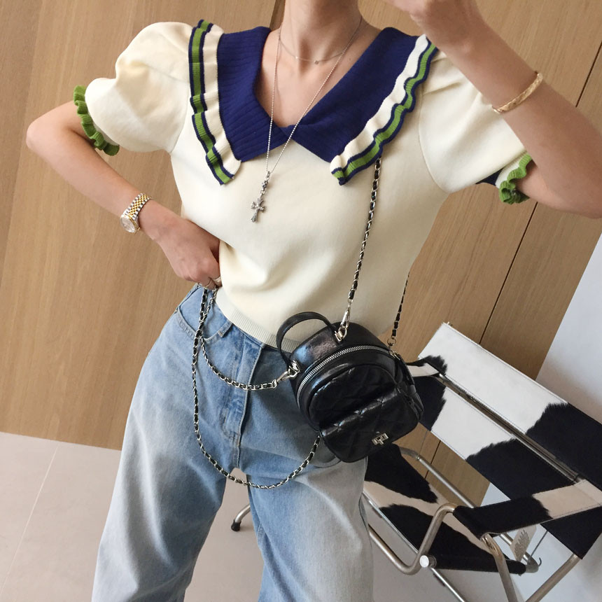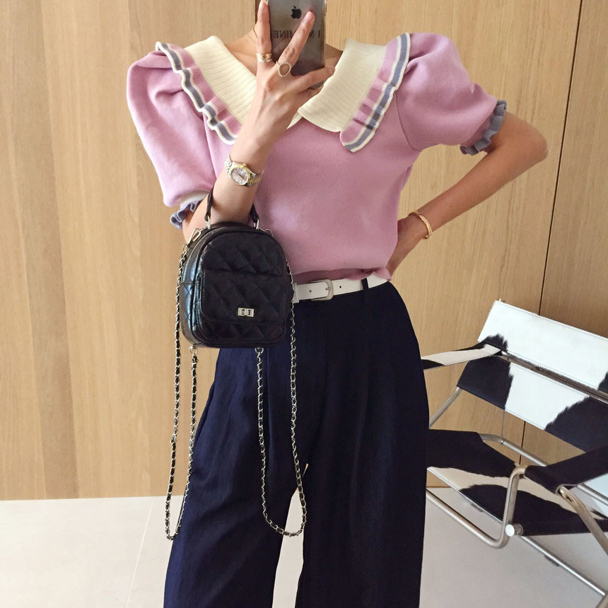 레이스 프릴 카라 퍼프 반팔니트 소개드려용^^