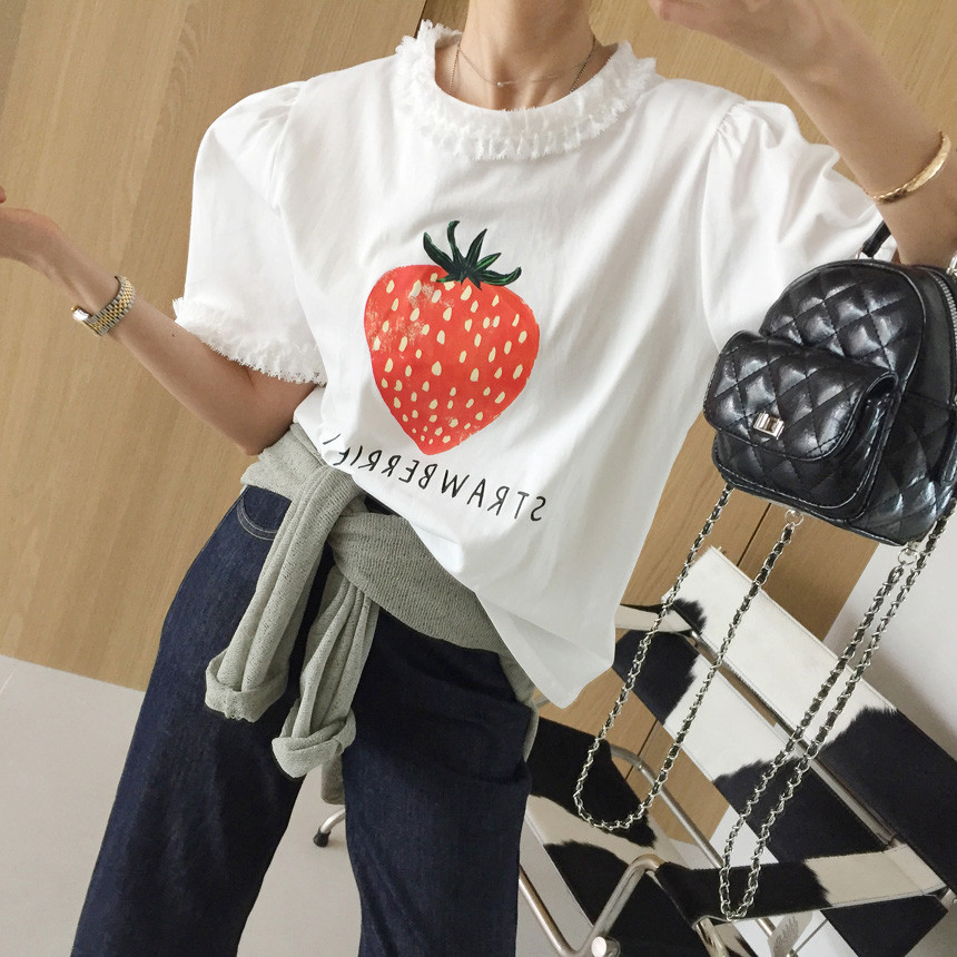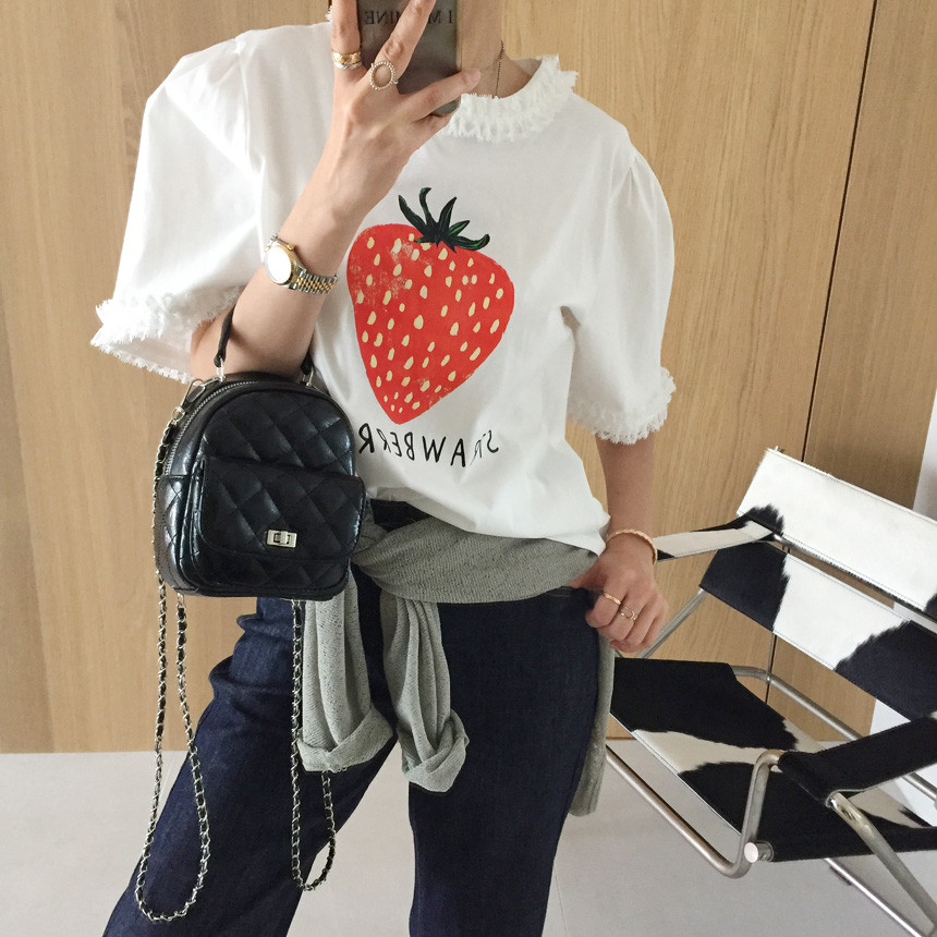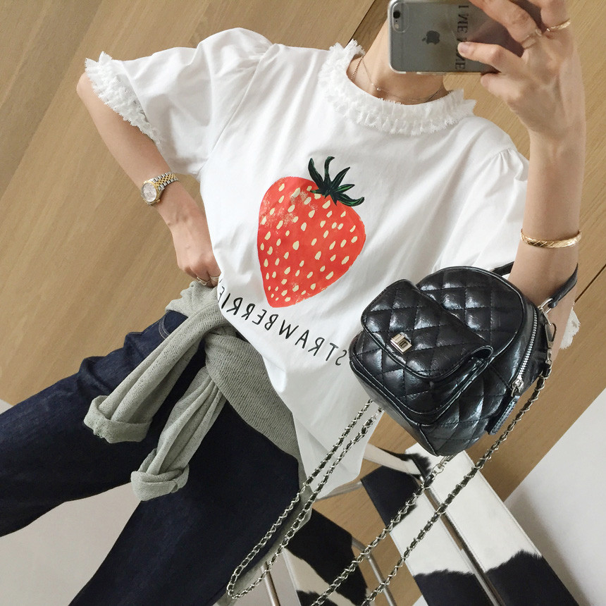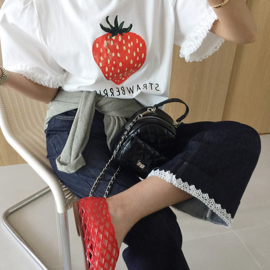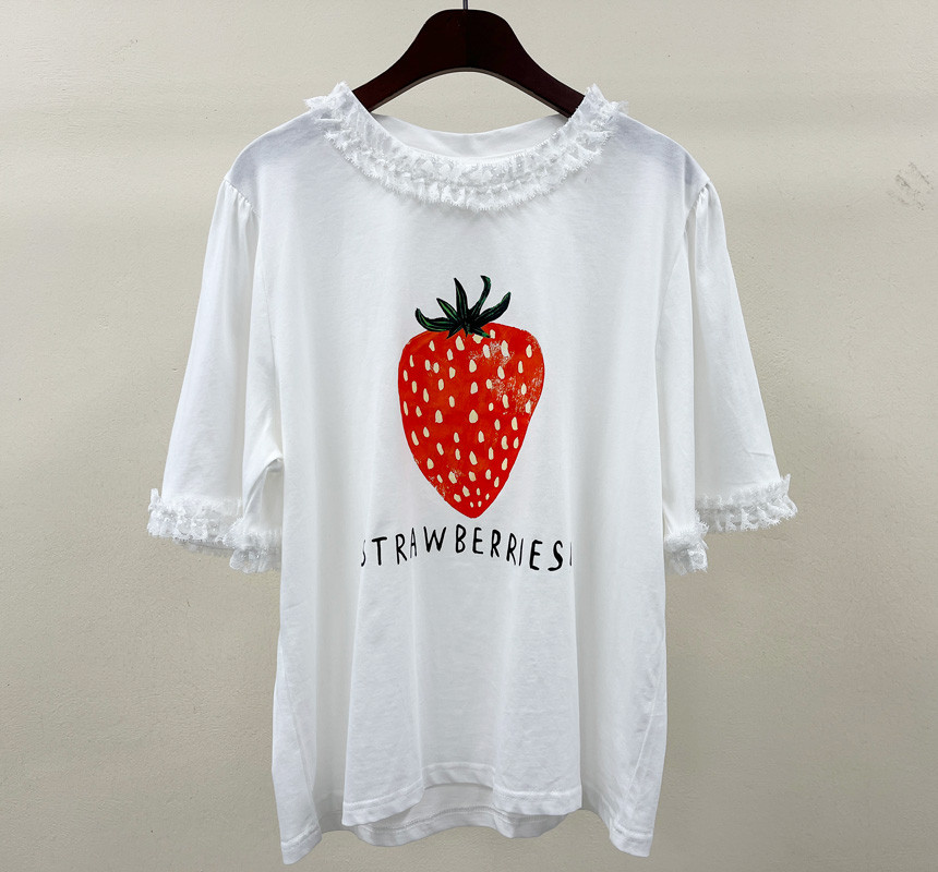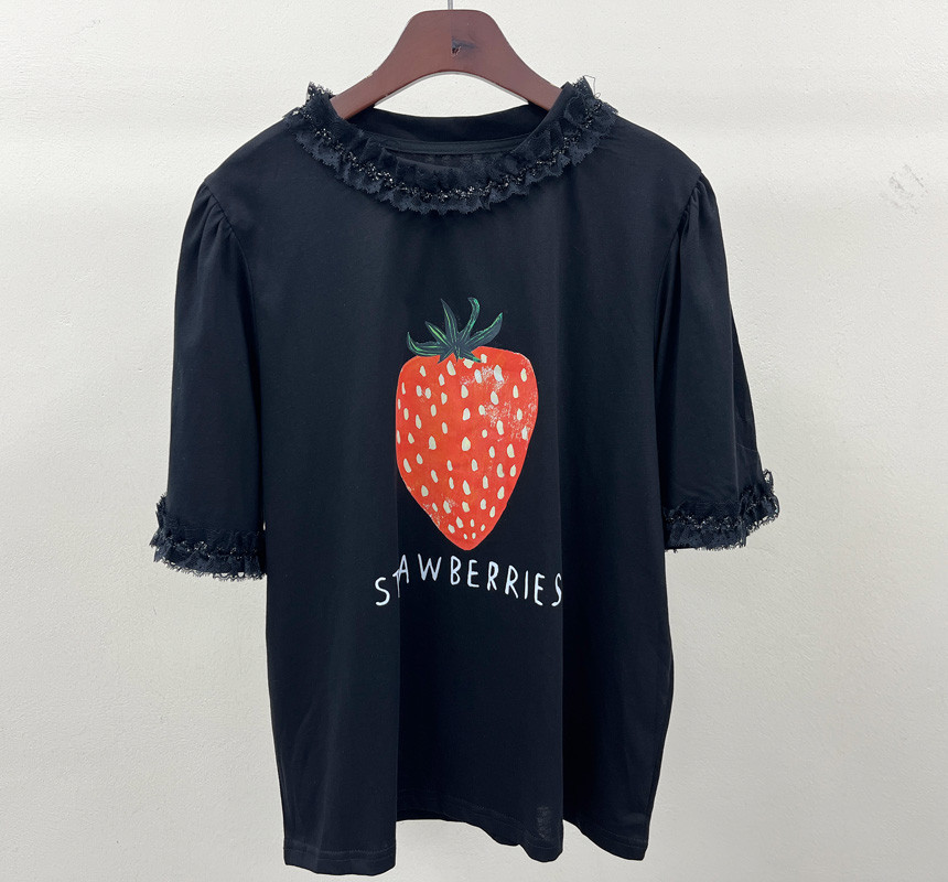 딸기 프린팅 레이스 반팔티셔츠 소개해드릴께요 :)