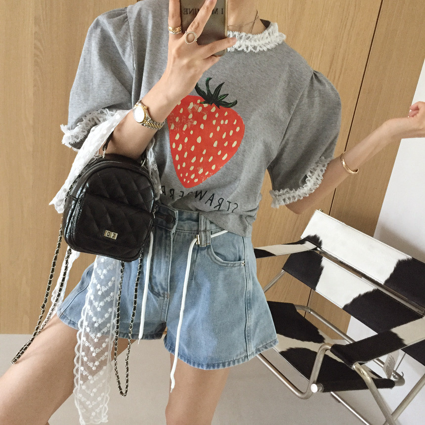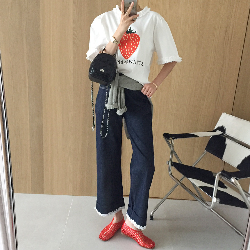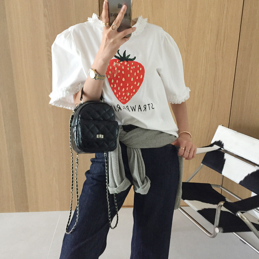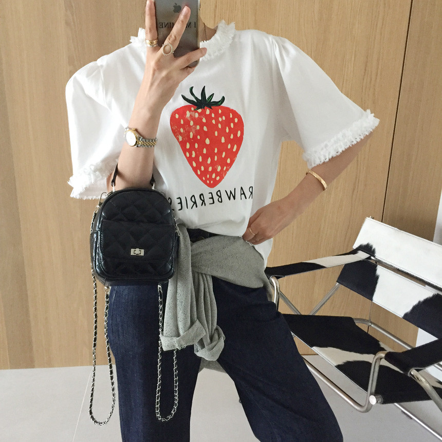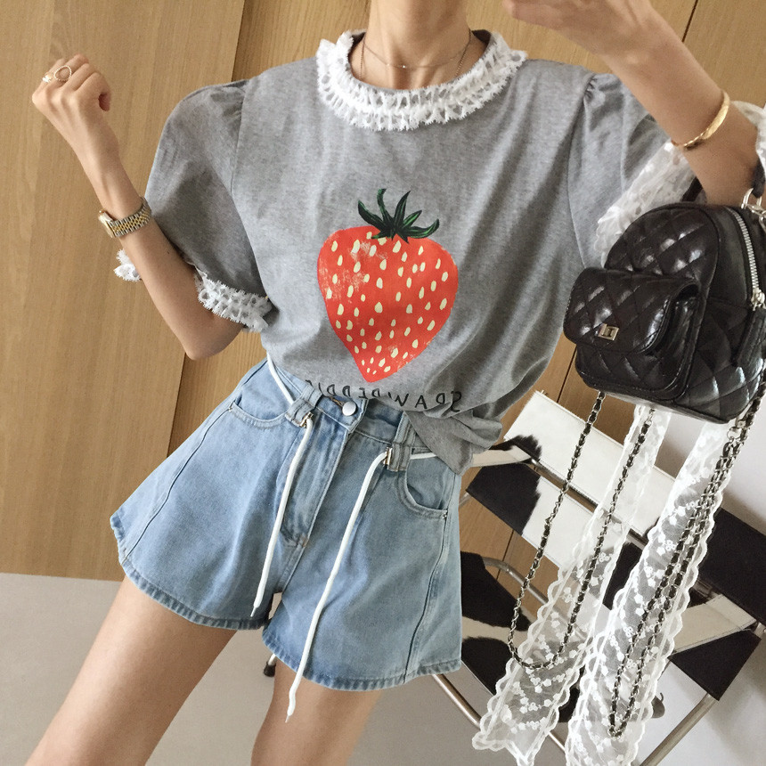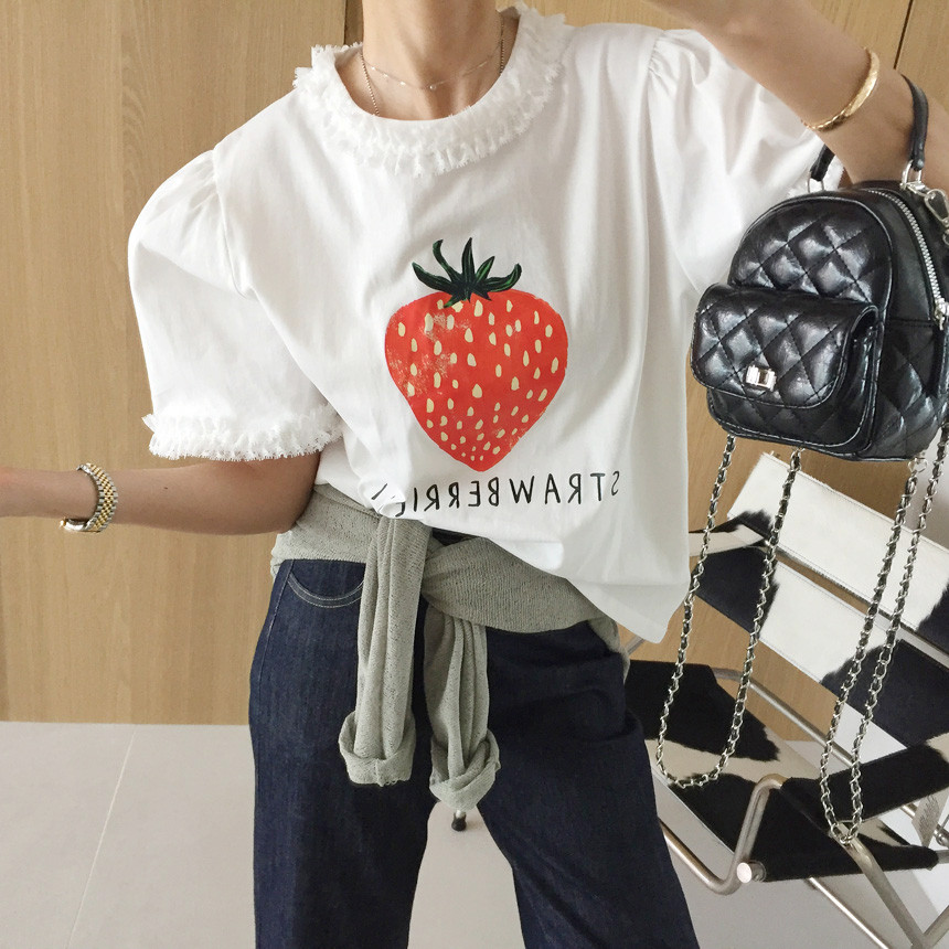 딸기 프린팅 레이스 반팔티셔츠 소개해드릴께요 :)