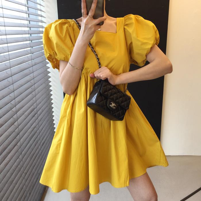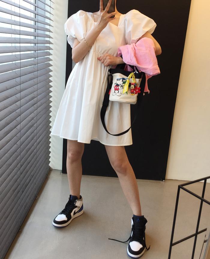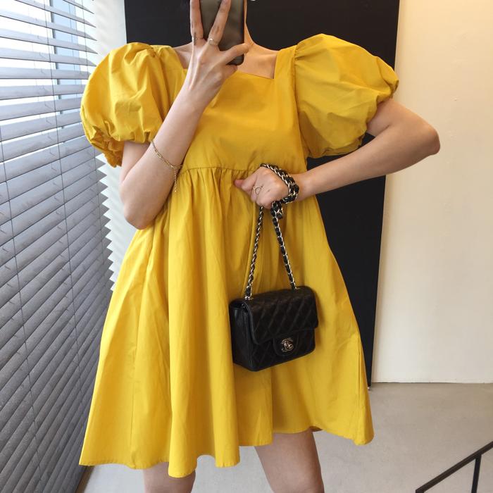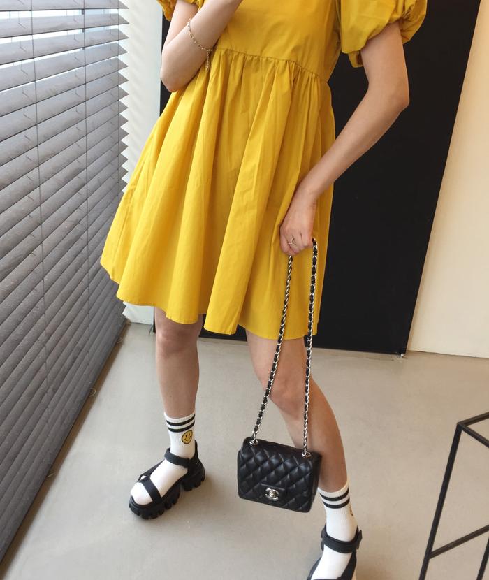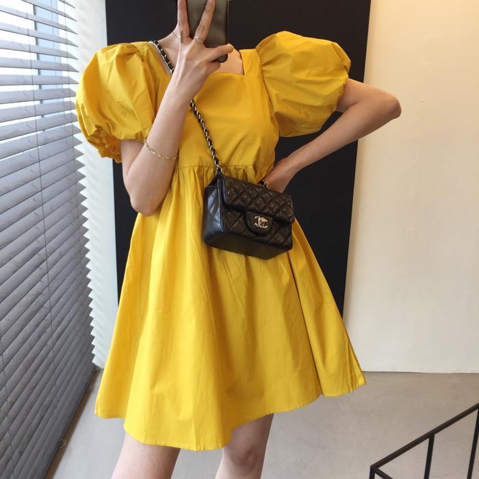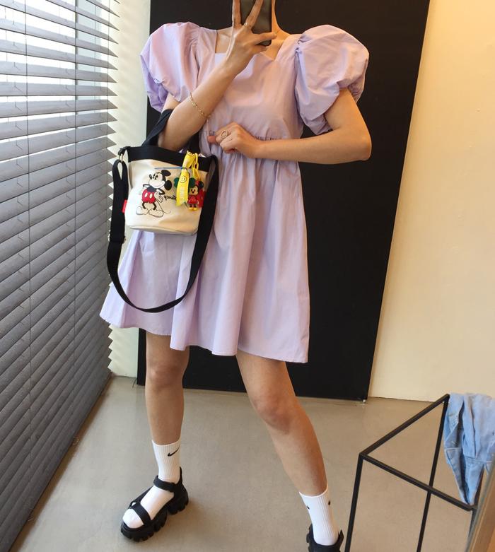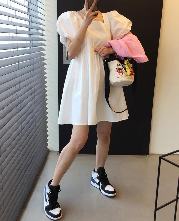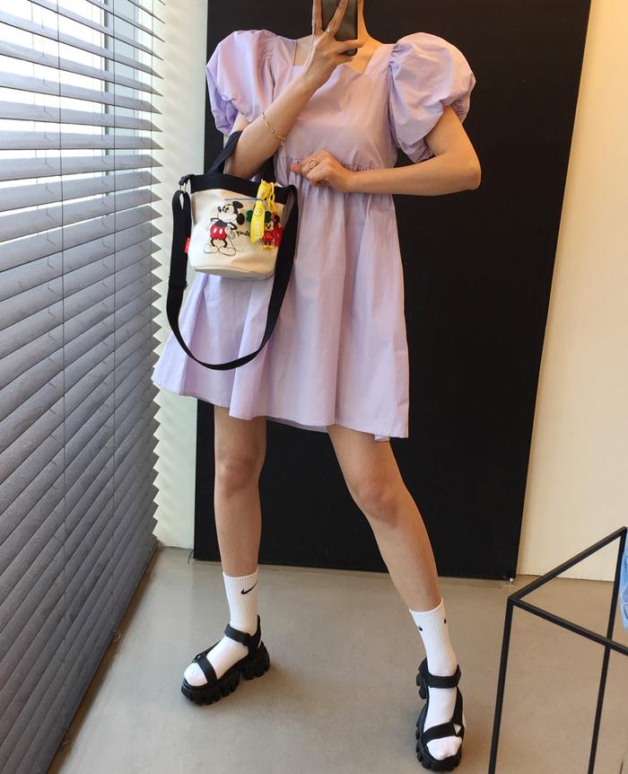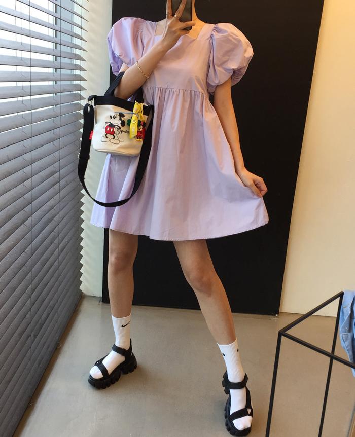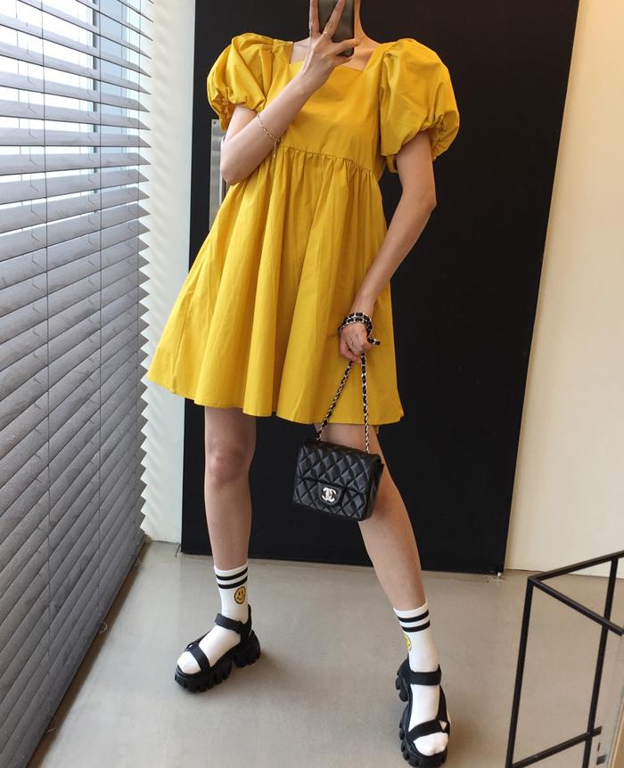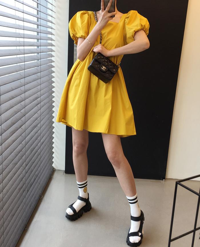 발랄한 무드의 스퀘어넥 퍼프 미니 원피스를 소개 해드릴게용 ^^