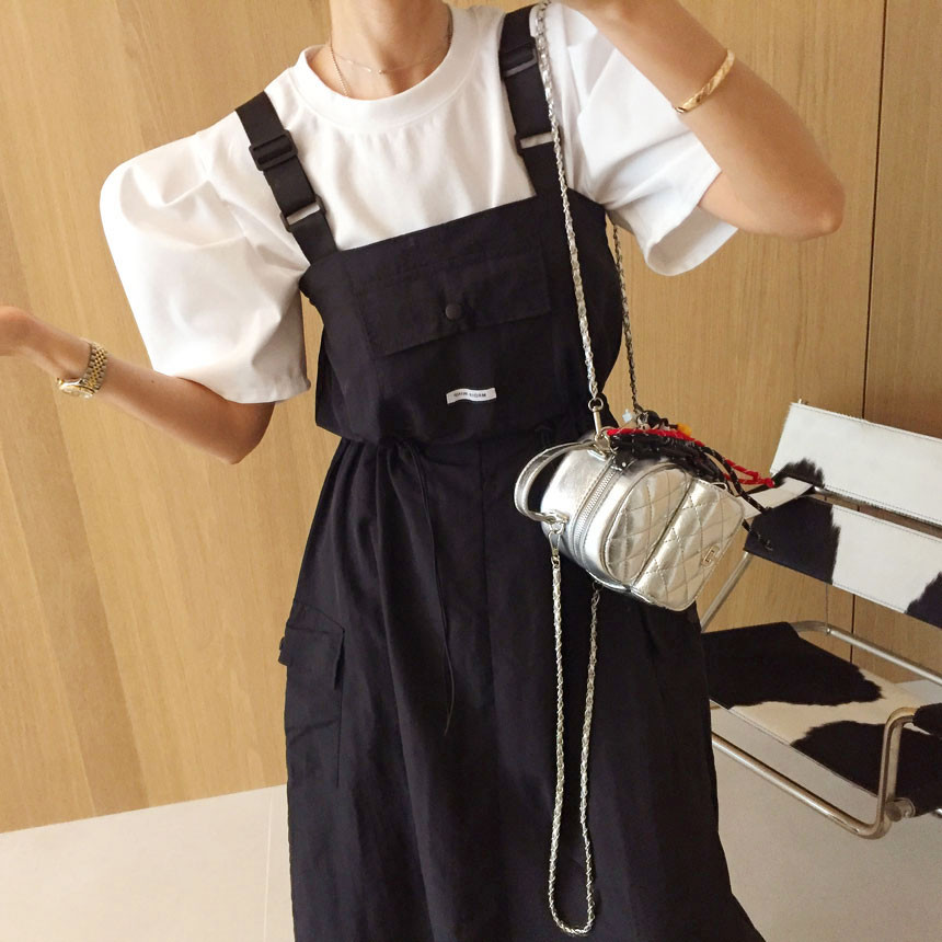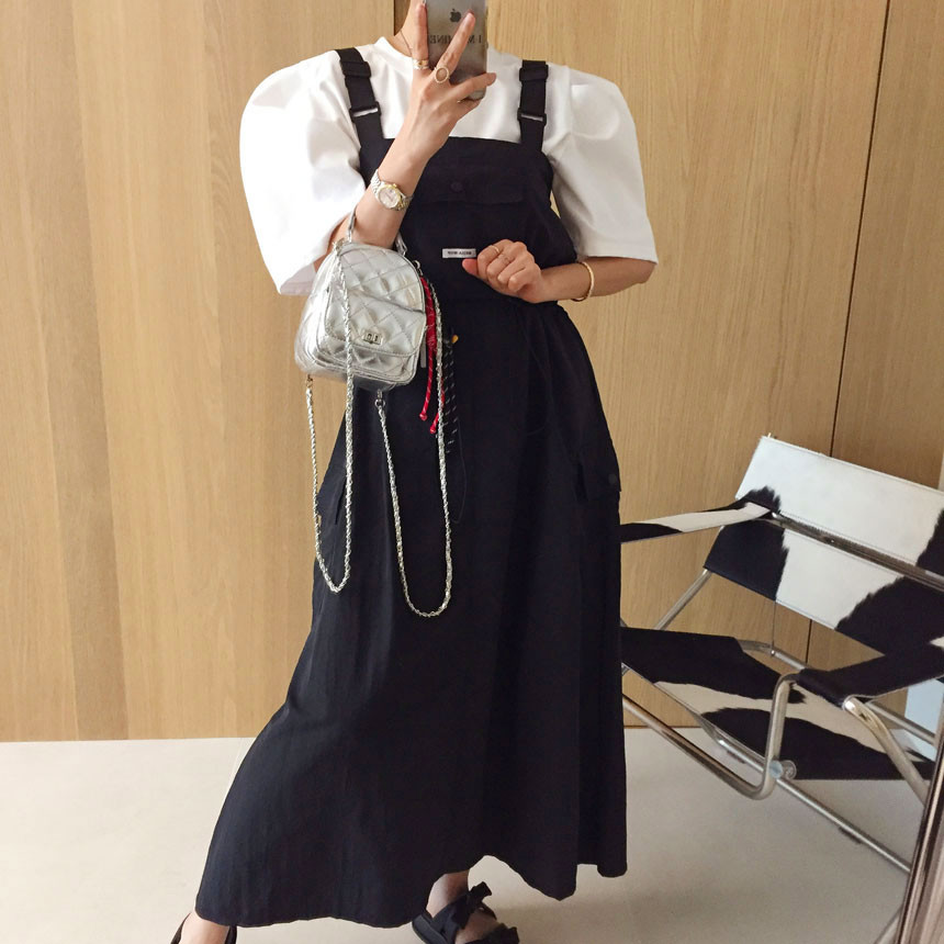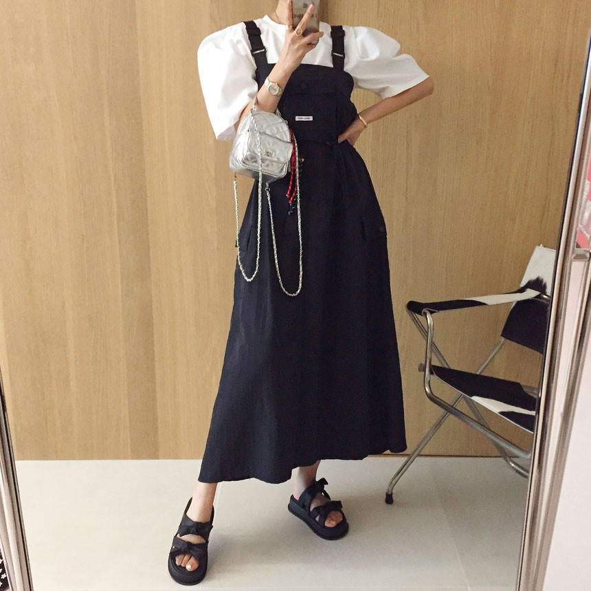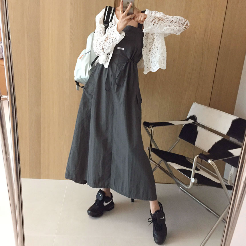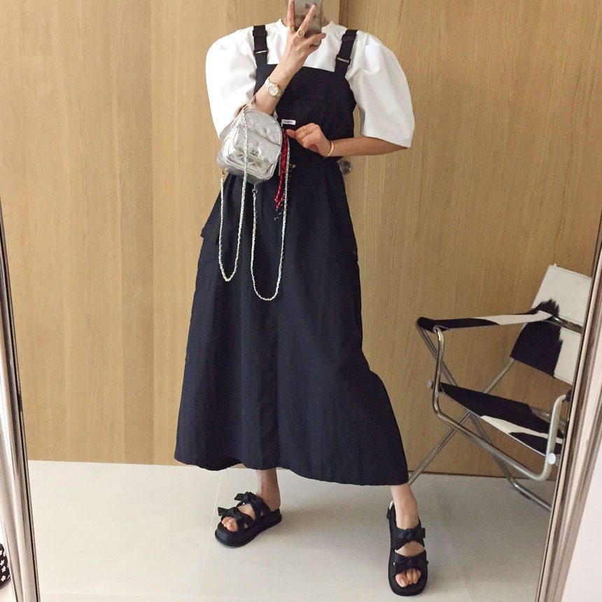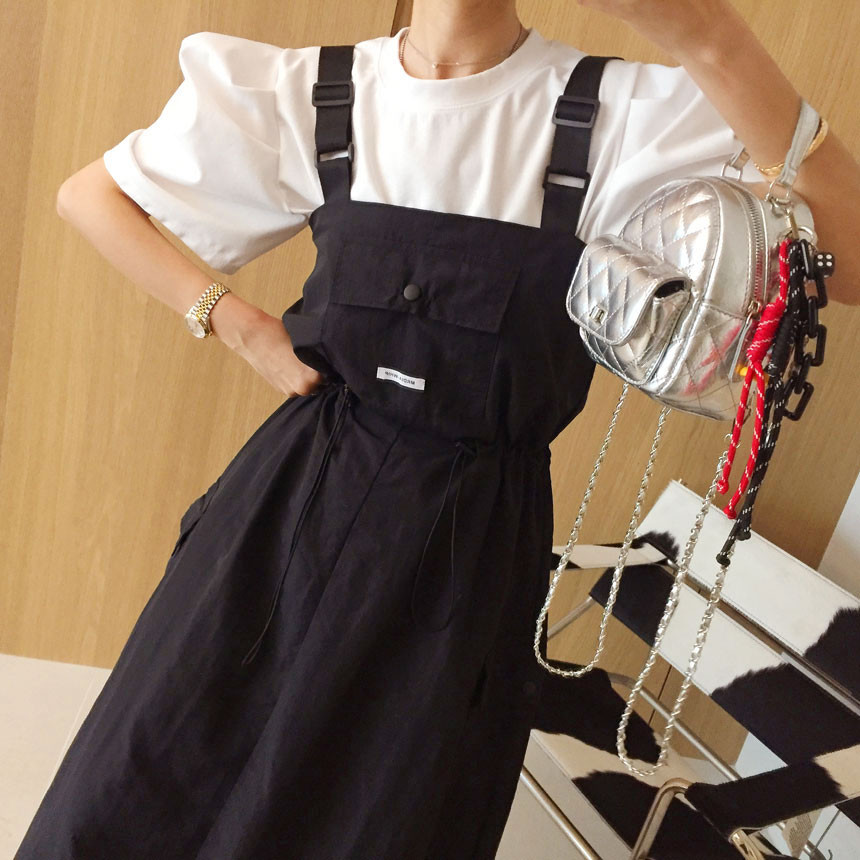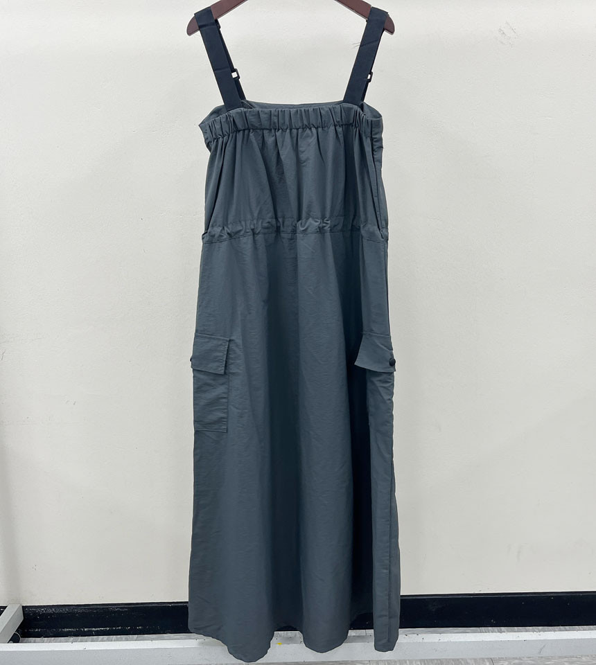 바스락 허리 스트링 패치 포켓 멜빵 롱원피스 보여드릴게용 ><