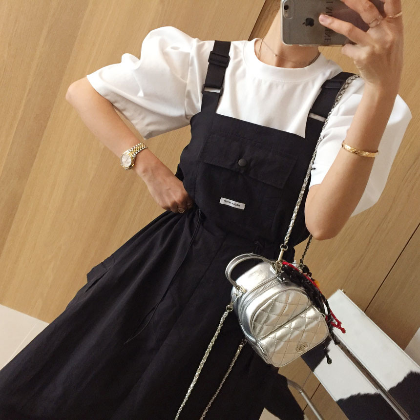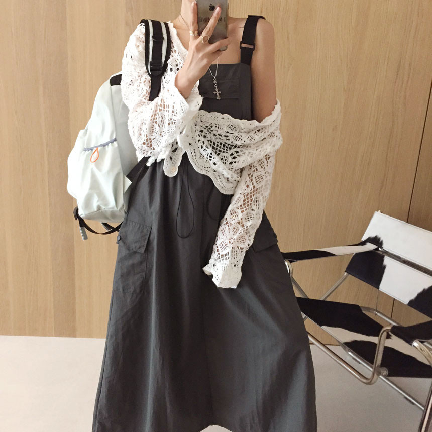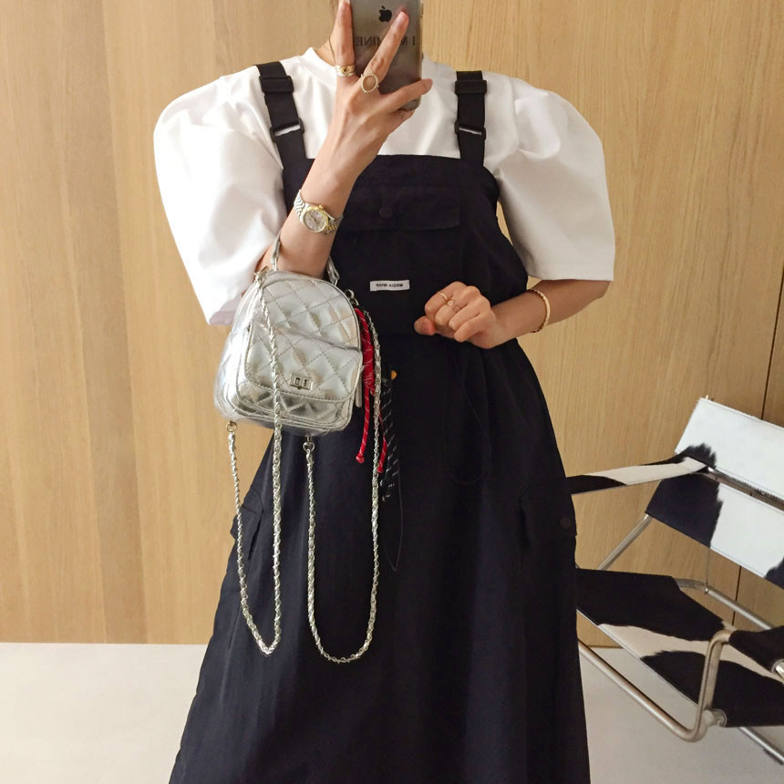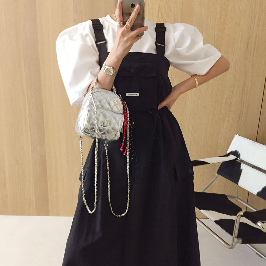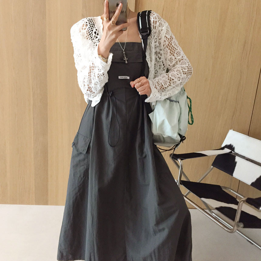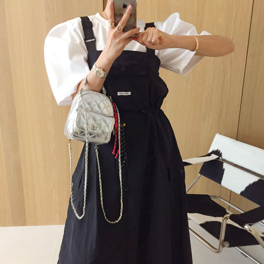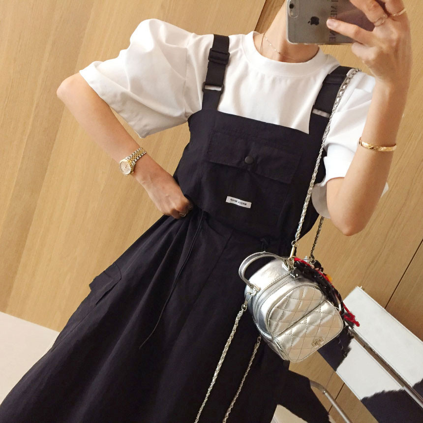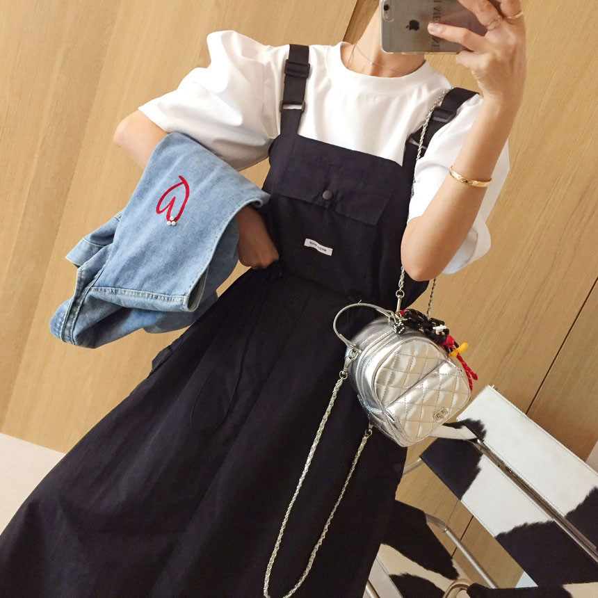 바스락 허리 스트링 패치 포켓 멜빵 롱원피스 보여드릴게용 ><