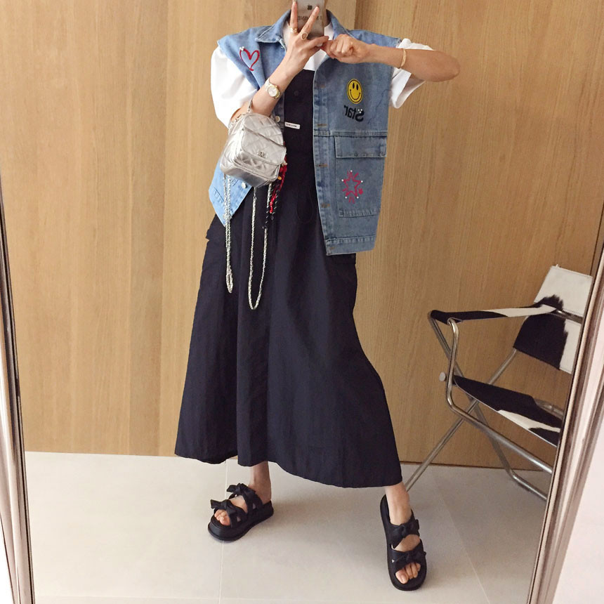 [가슴 40~51(뒷밴딩) 밑단 85 총기장 112 (어깨끈미포함/길이조절가능)]
