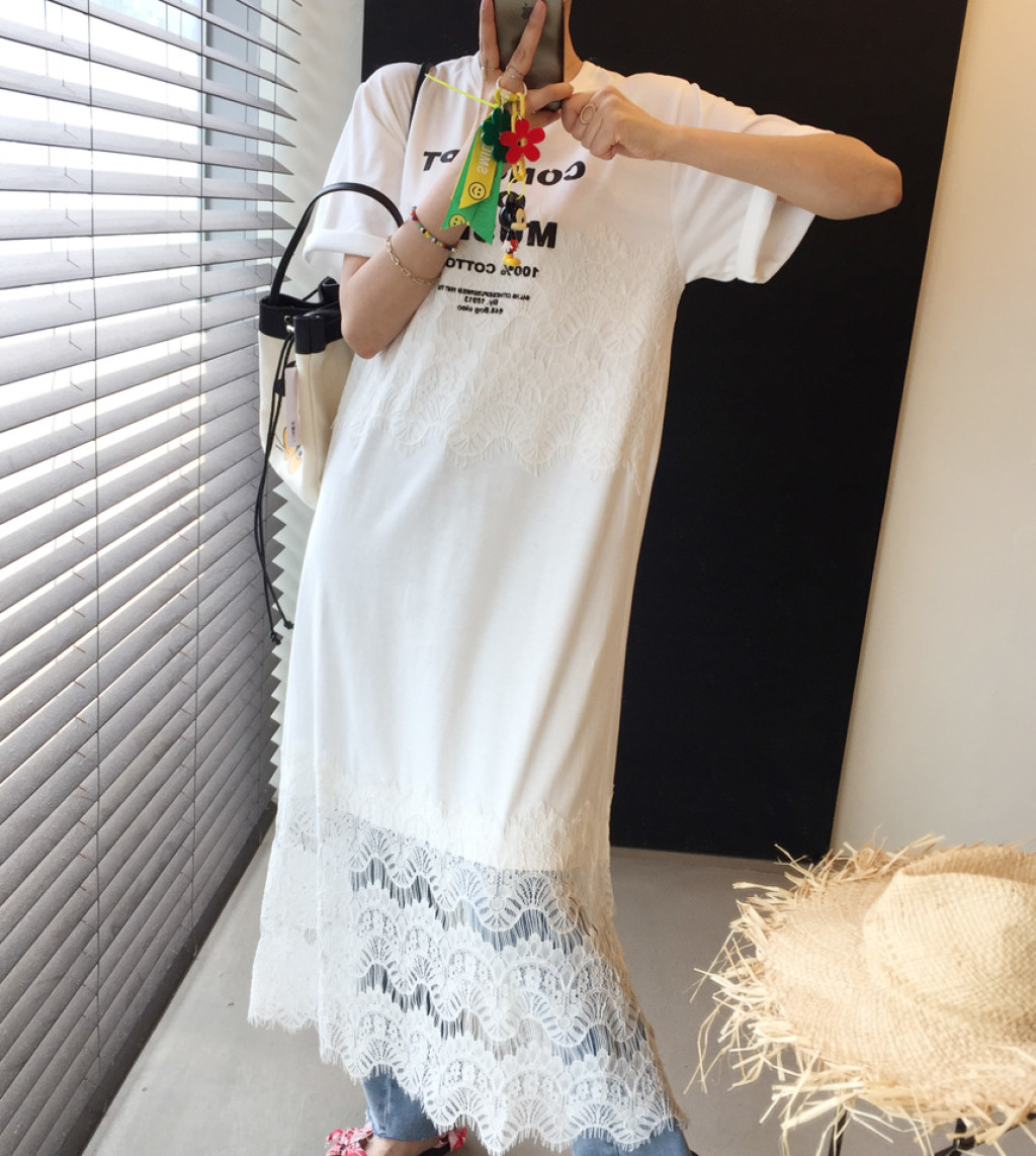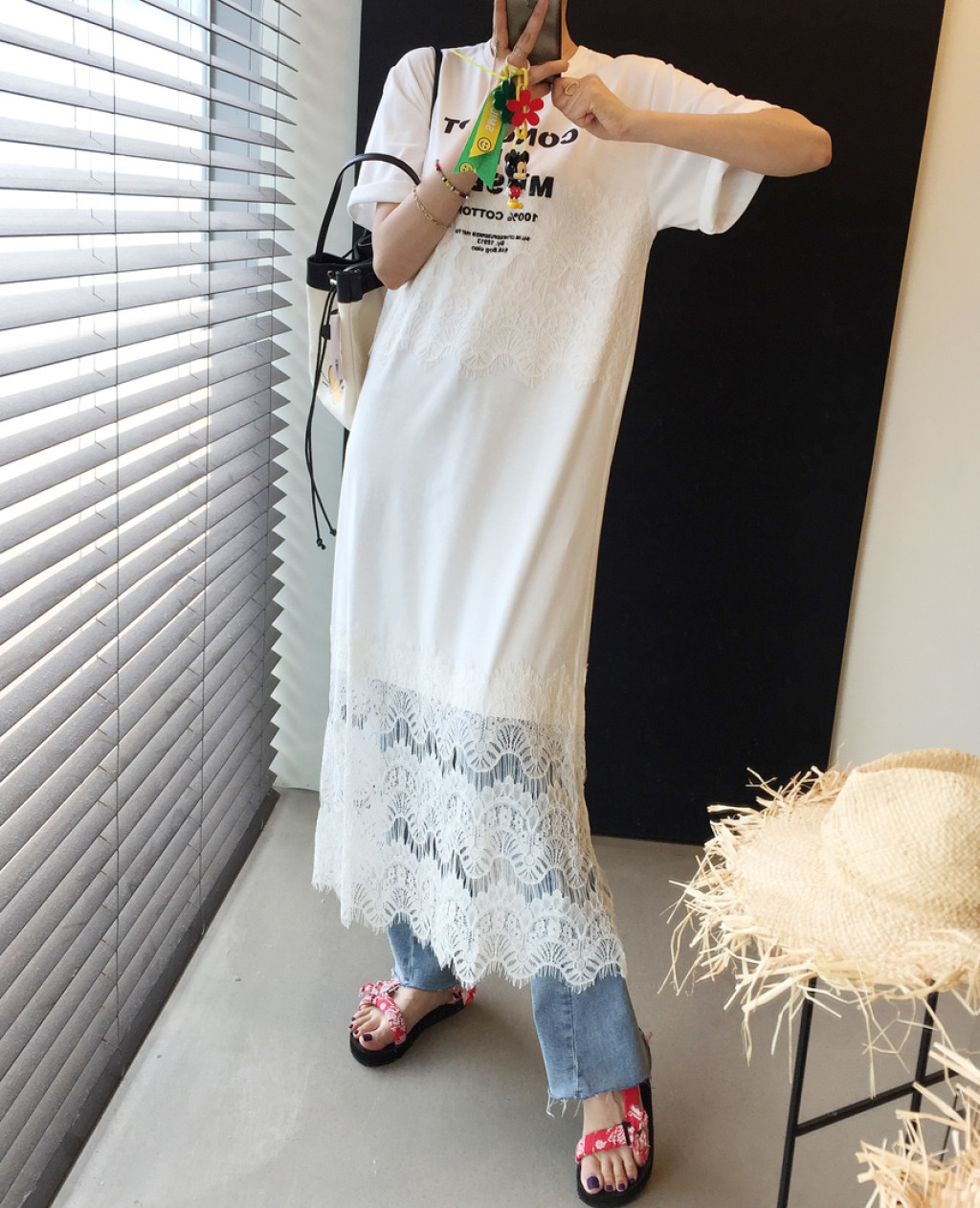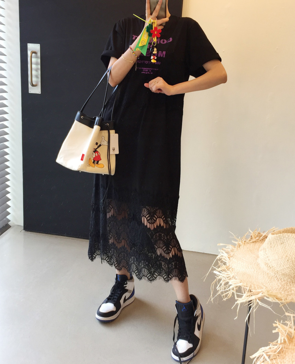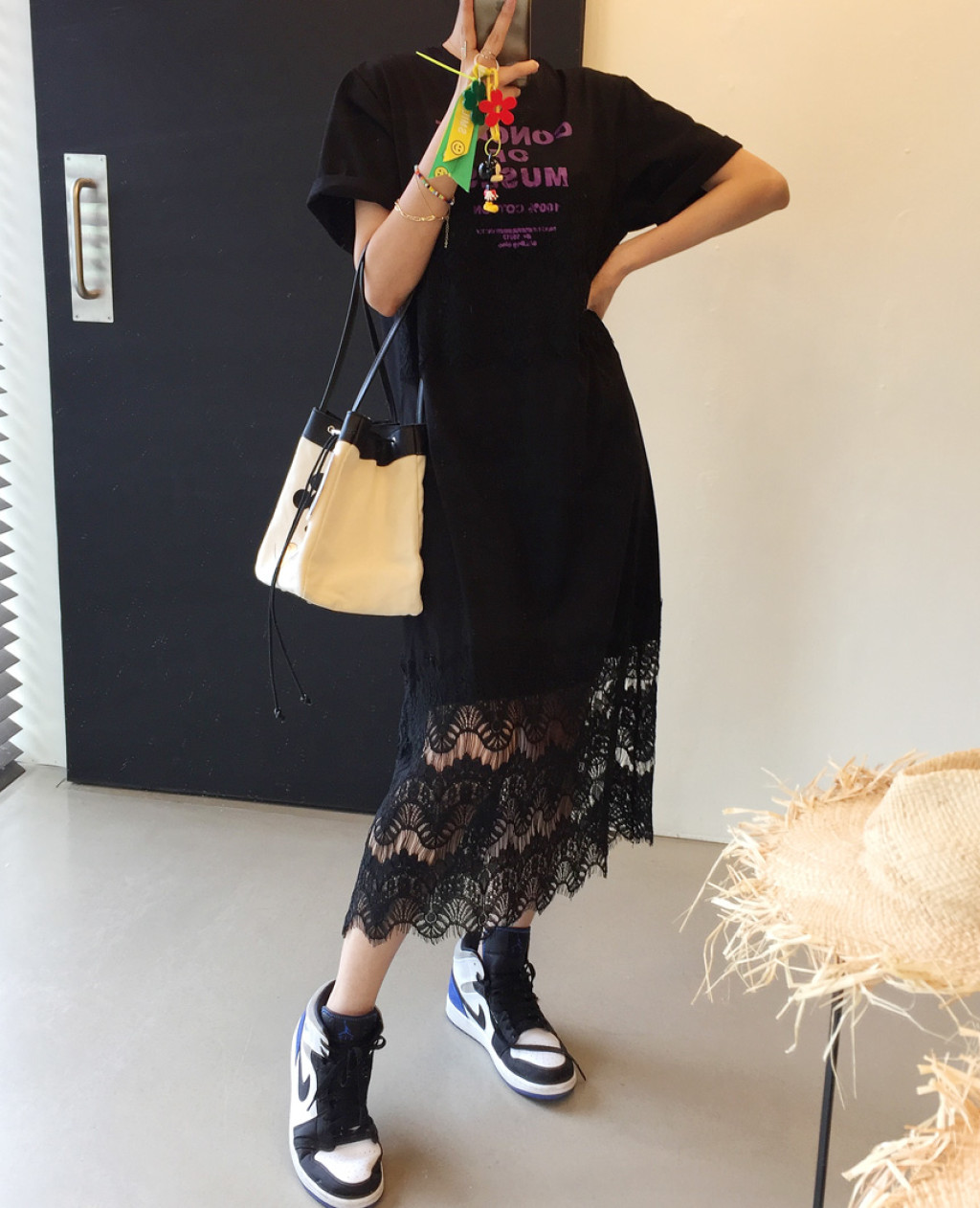사이즈 걱정없는 루즈한 실루엣에 레이스 디테일이