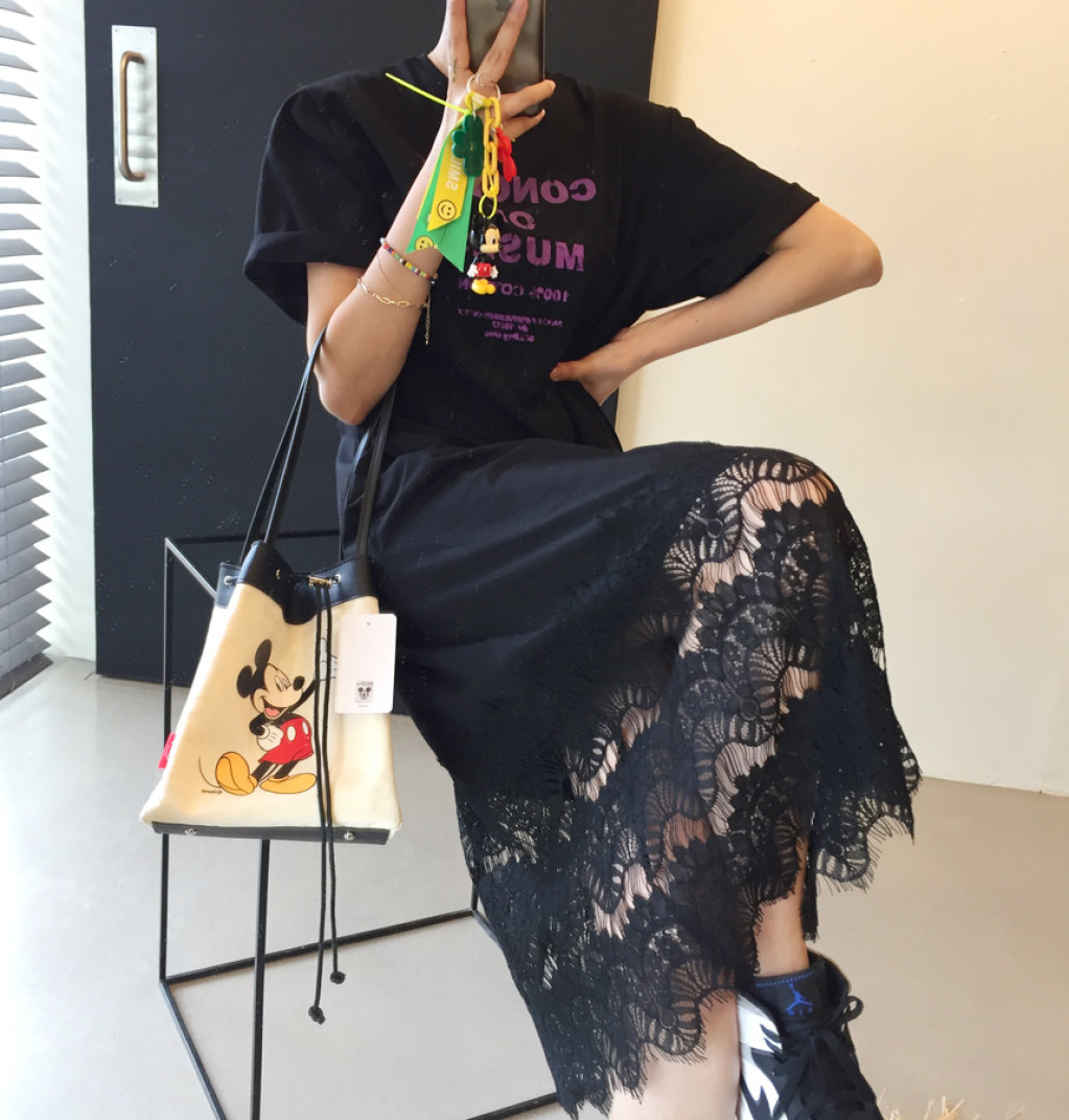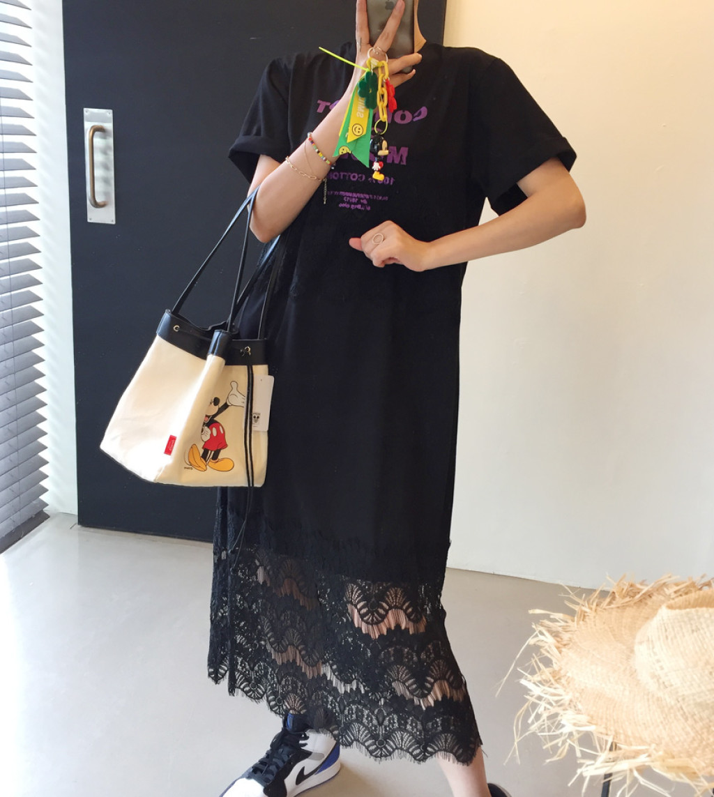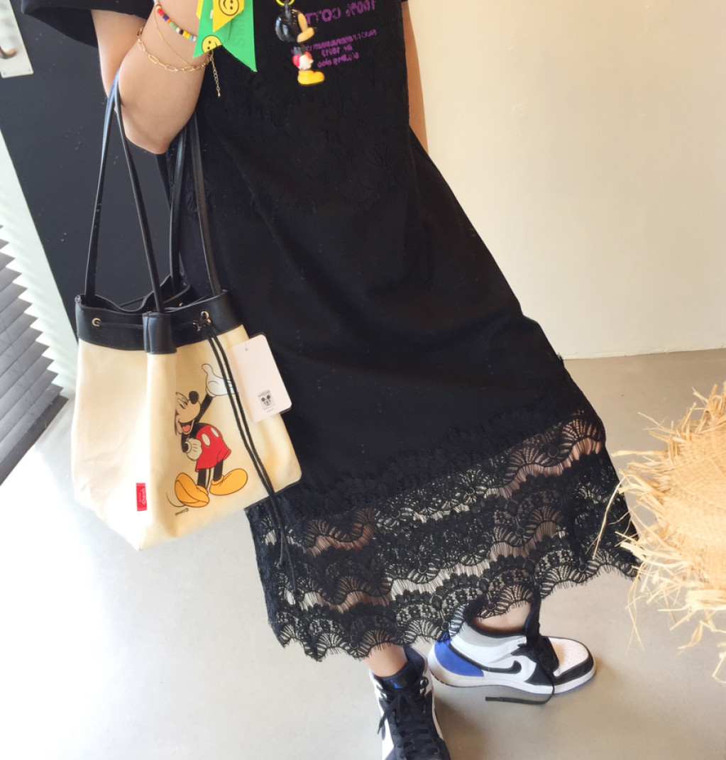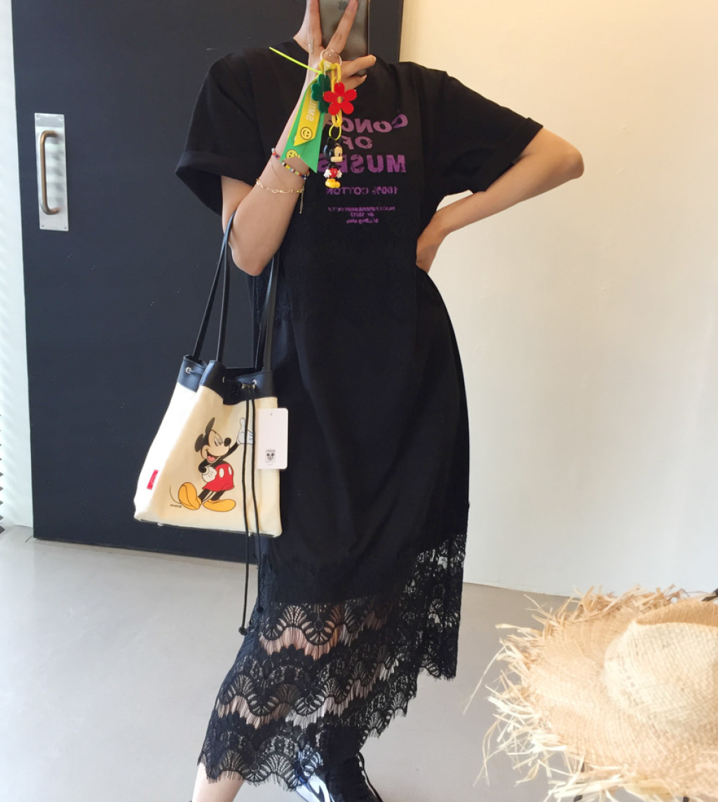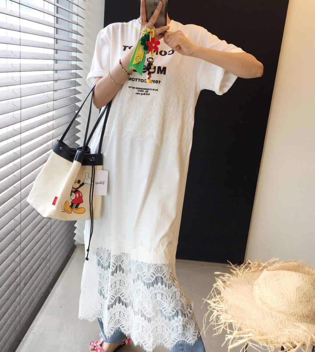 사이즈 걱정없는 루즈한 실루엣에 레이스 디테일이