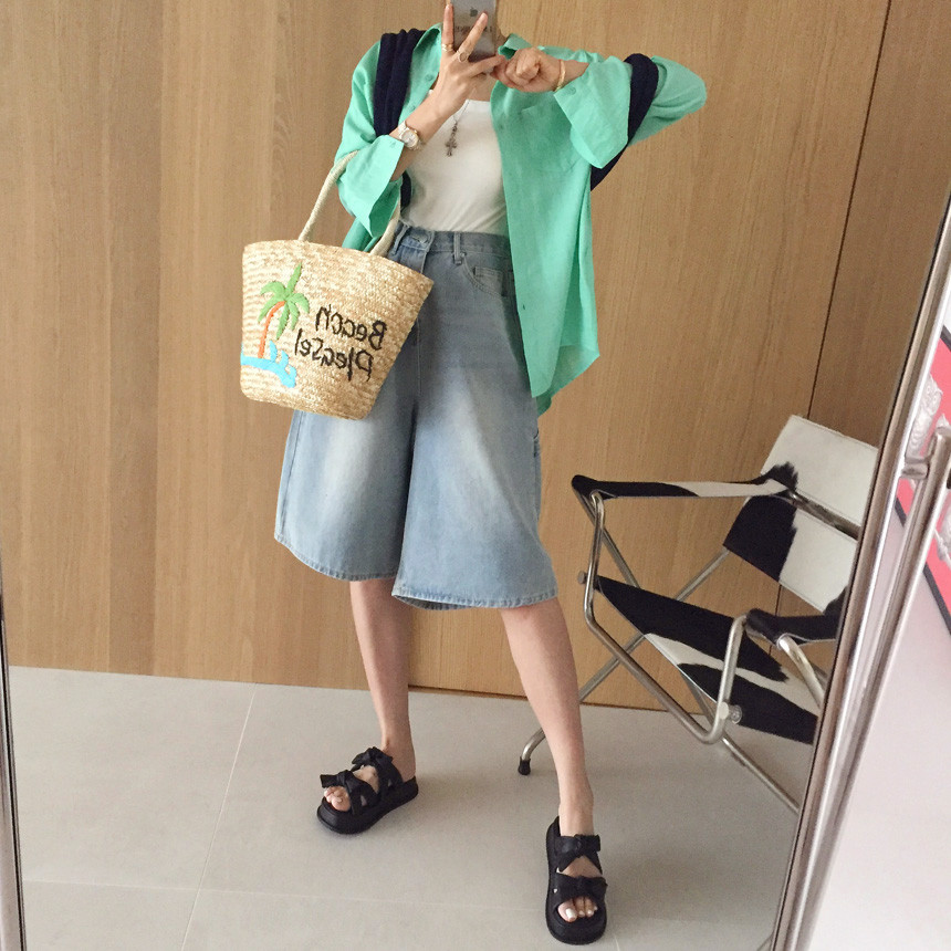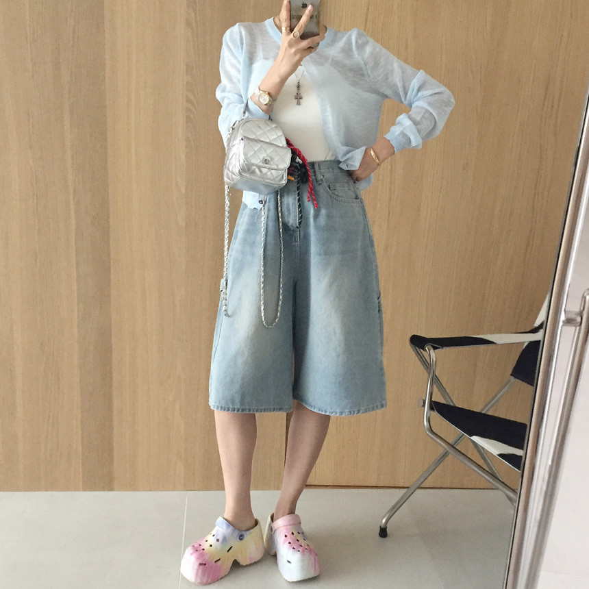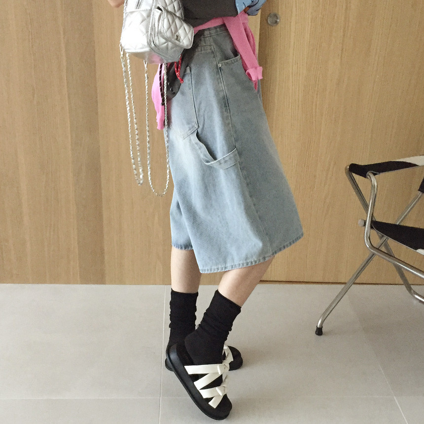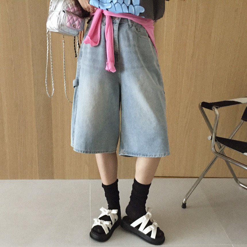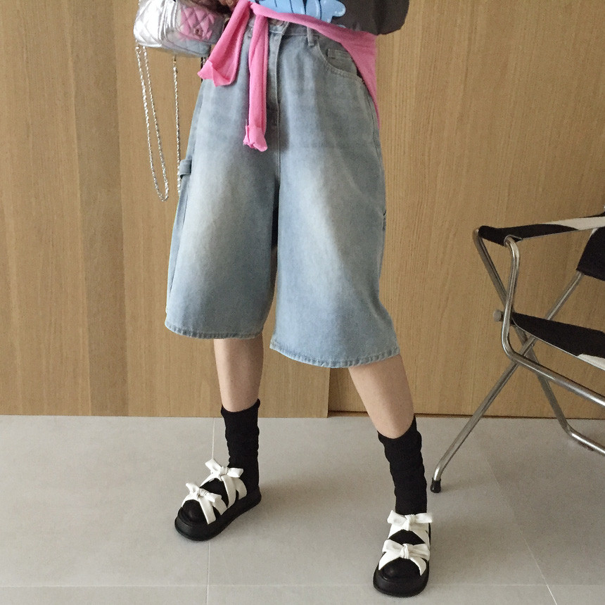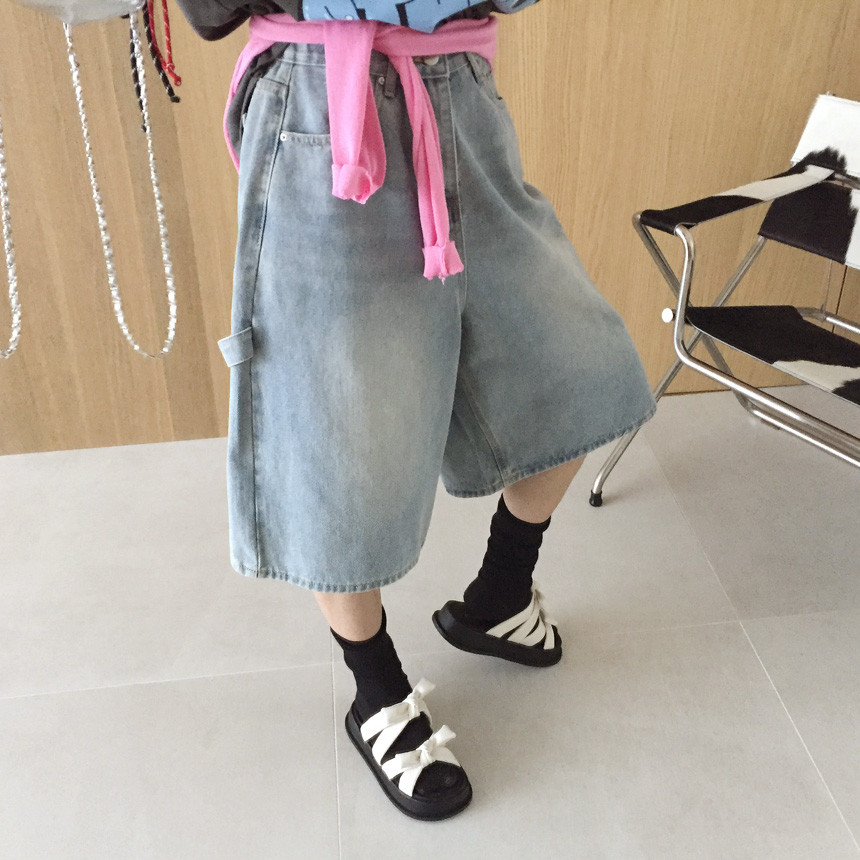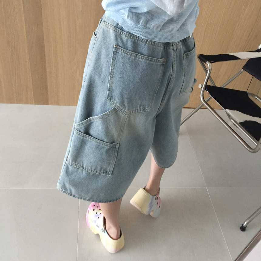 와이드 뒷밴딩 워싱 버뮤다 데님팬츠 보여드릴게용!