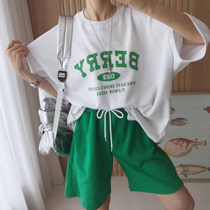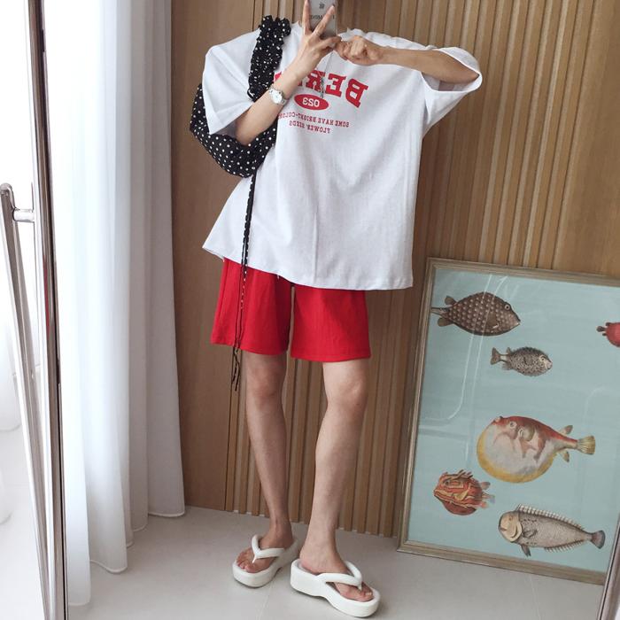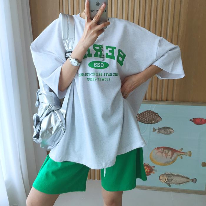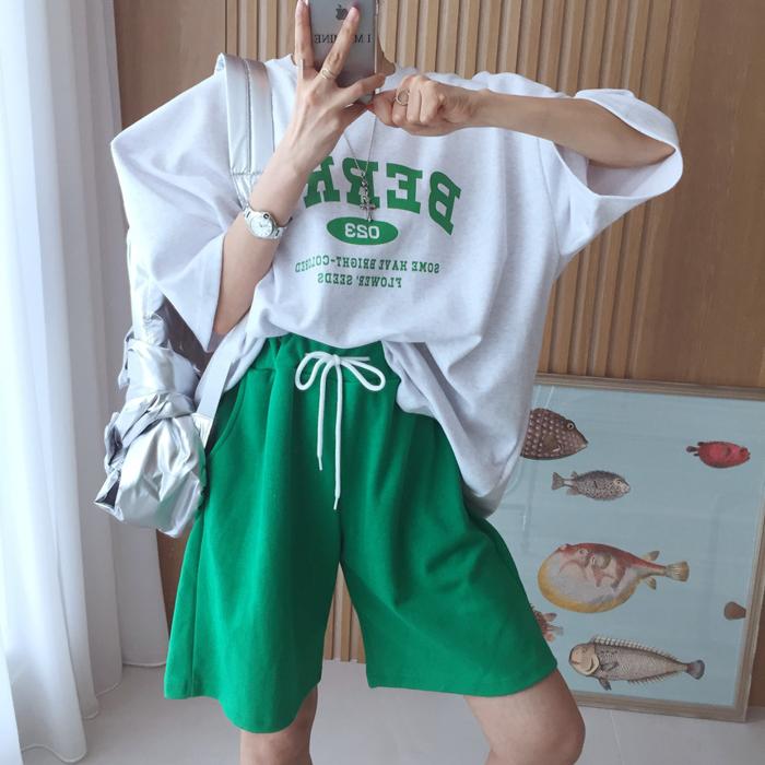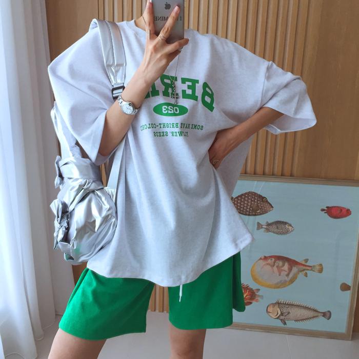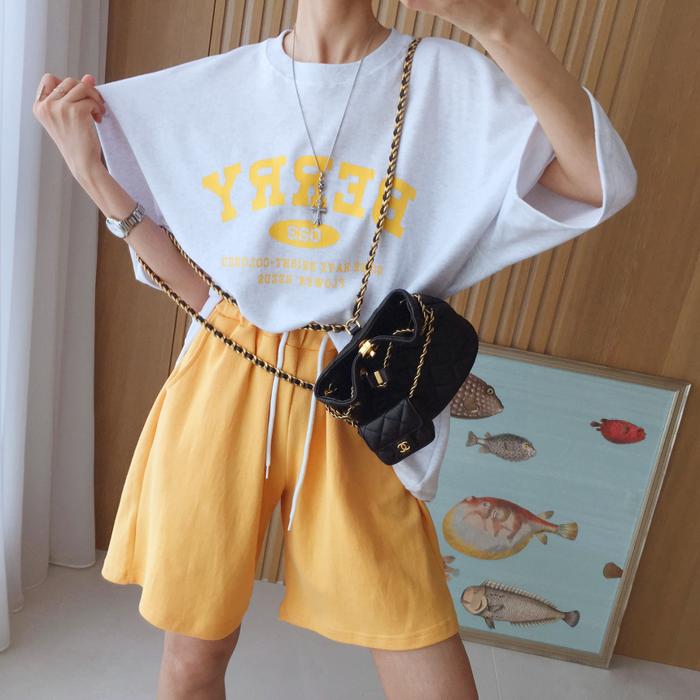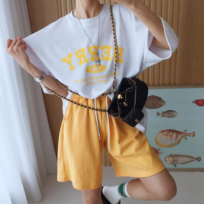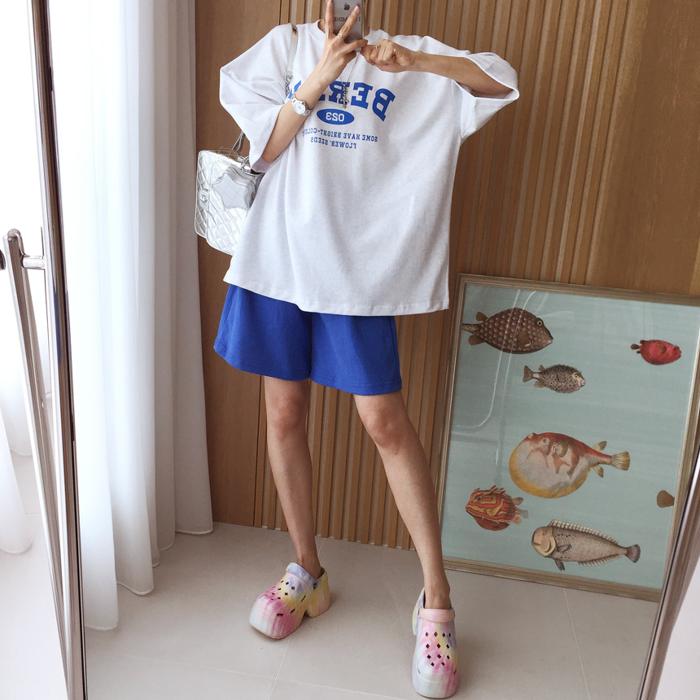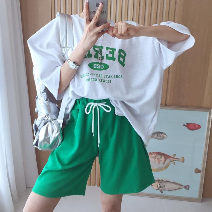 레터링 반팔 티셔츠 밴딩 반바지 트레이닝세트 보여드릴게용~!