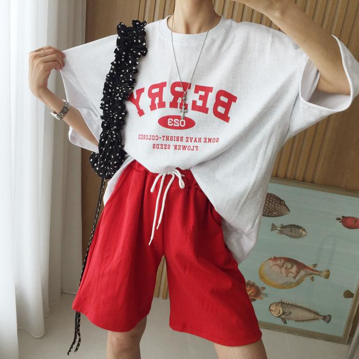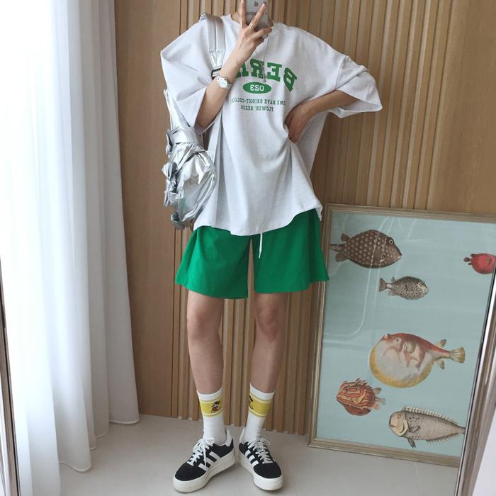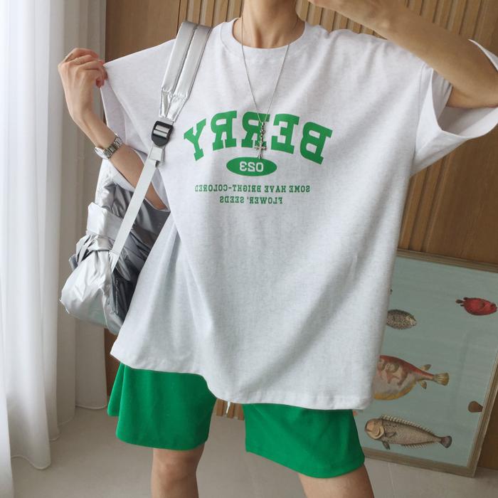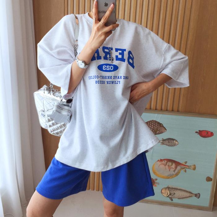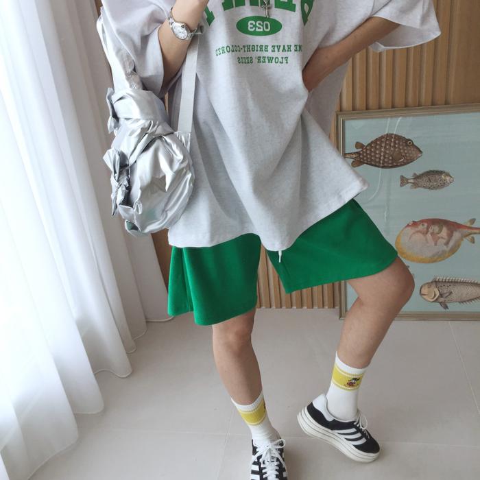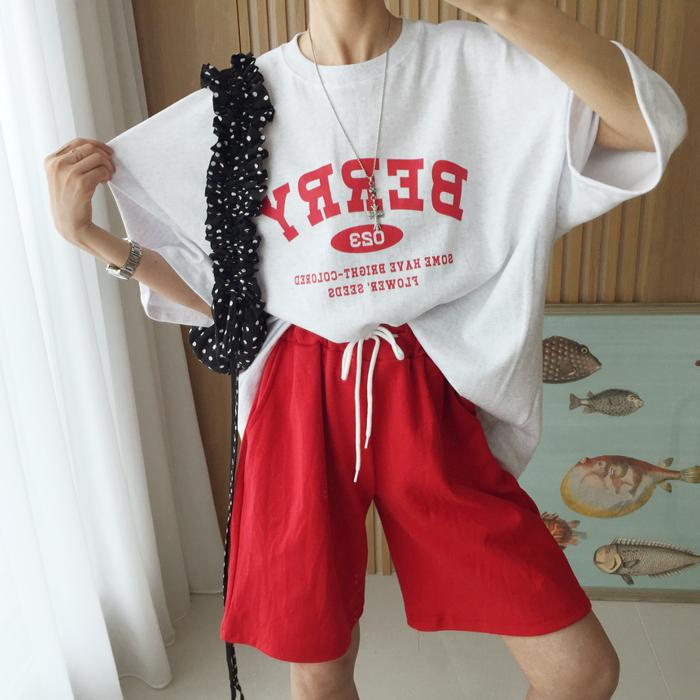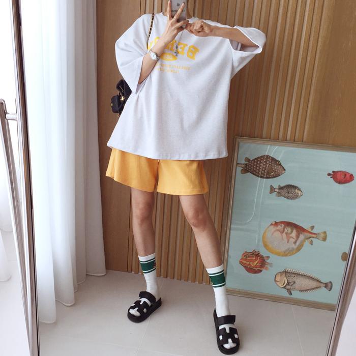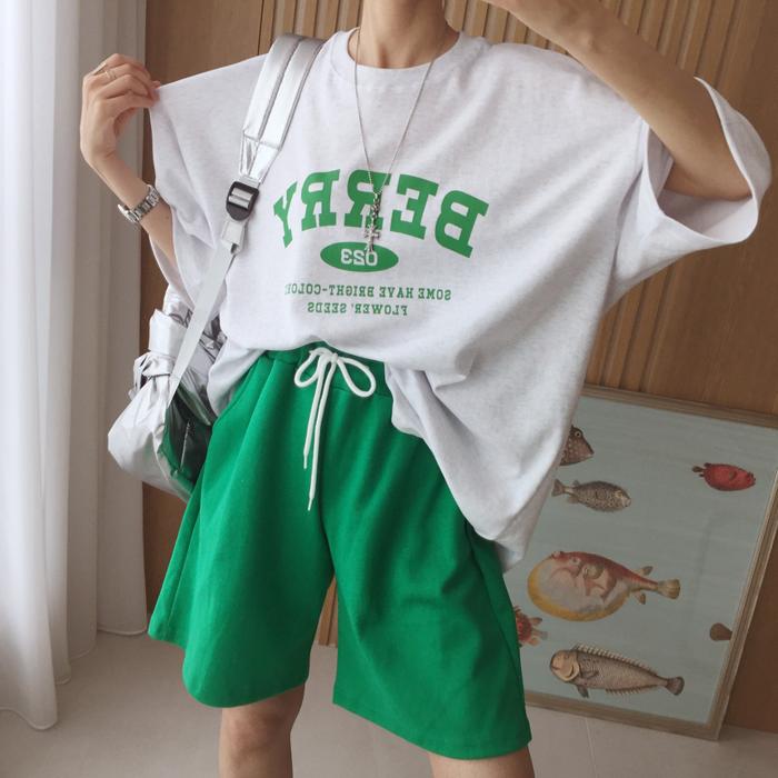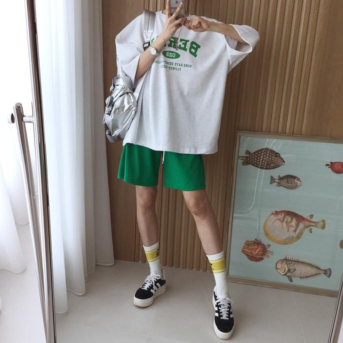 레터링 반팔 티셔츠 밴딩 반바지 트레이닝세트 보여드릴게용~!