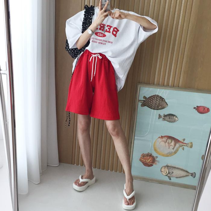 하의는 전체적으로 밴딩이 들어간 5부 팬츠예용