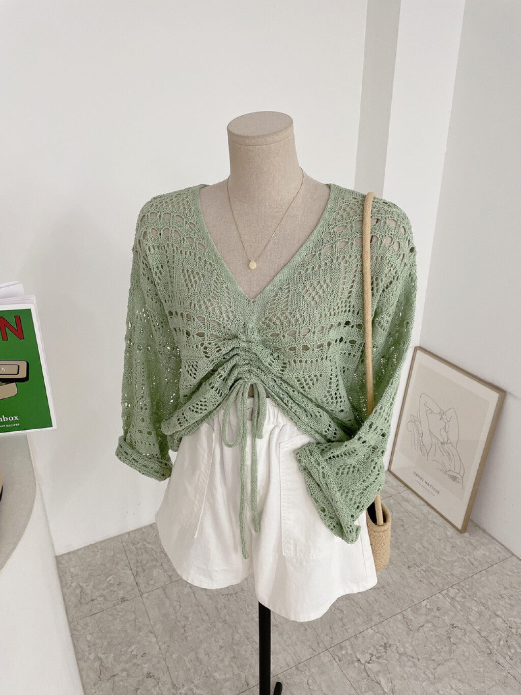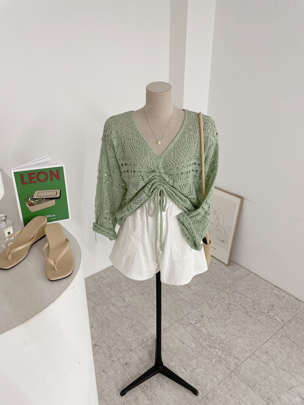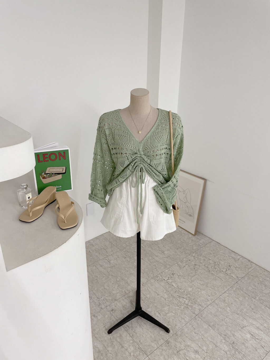 앞면에 스트링으로 원하는 만큼 셔링 조절이 가능해