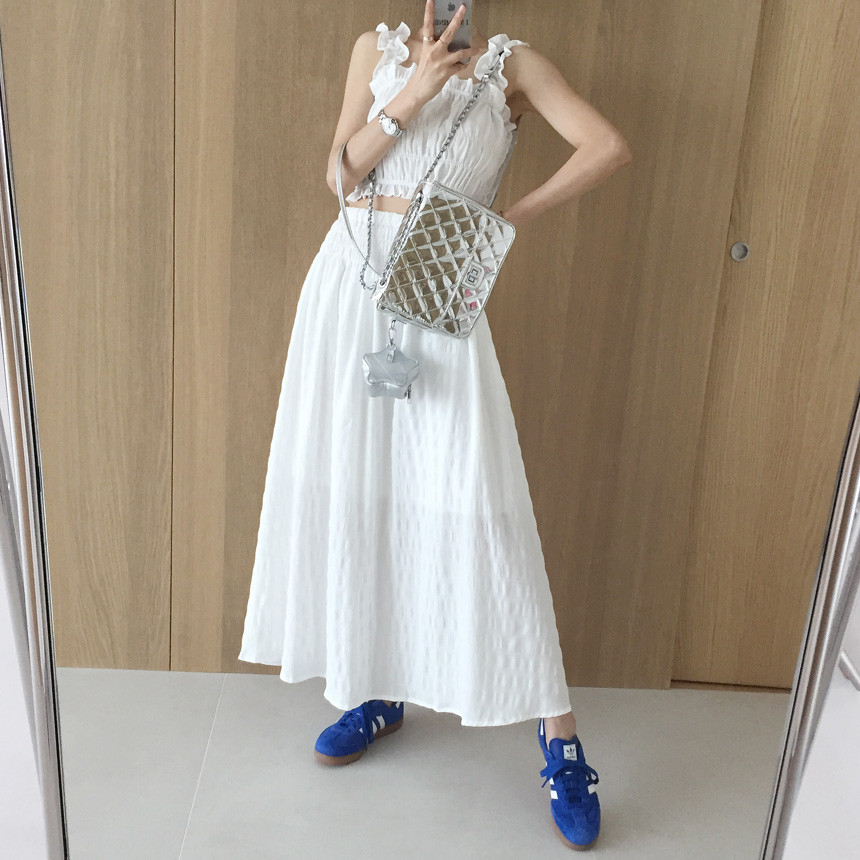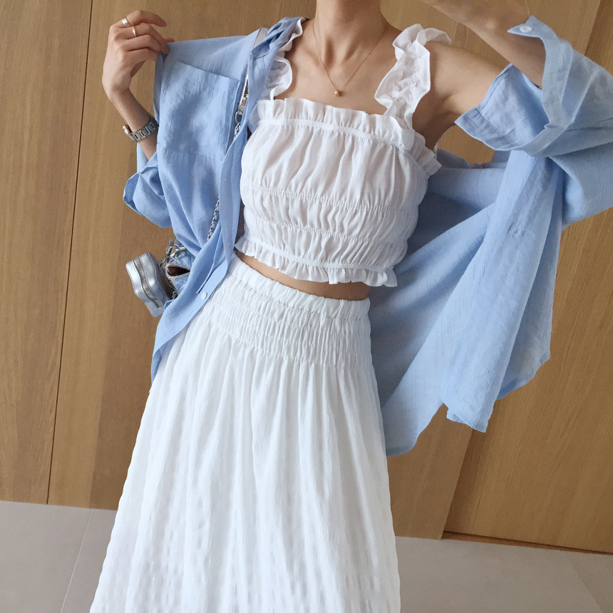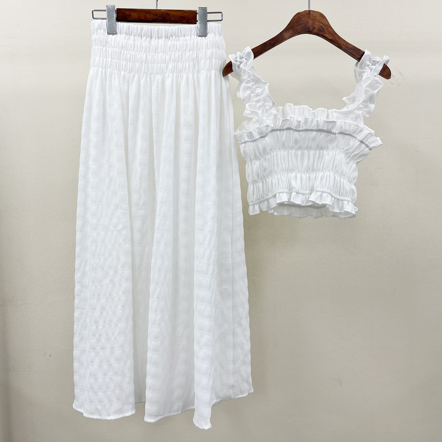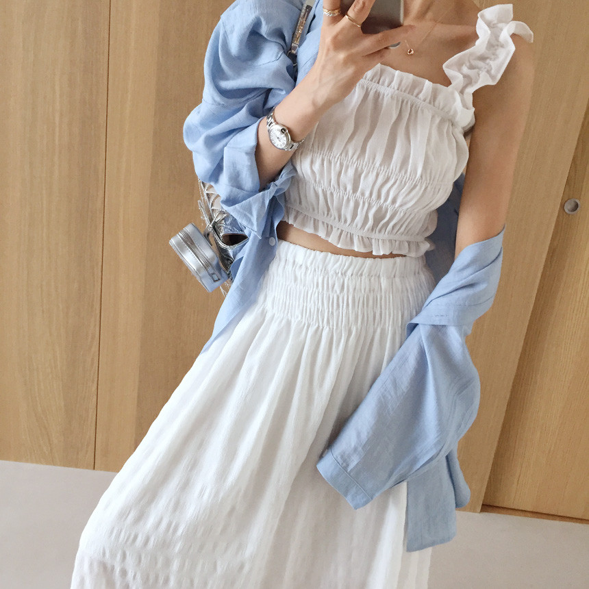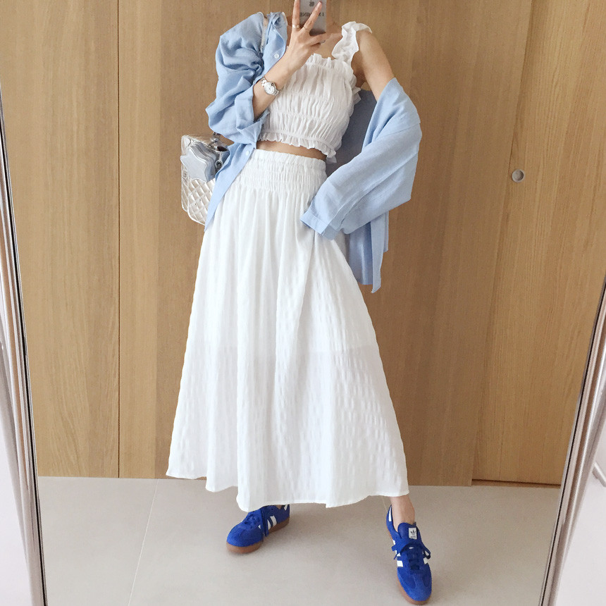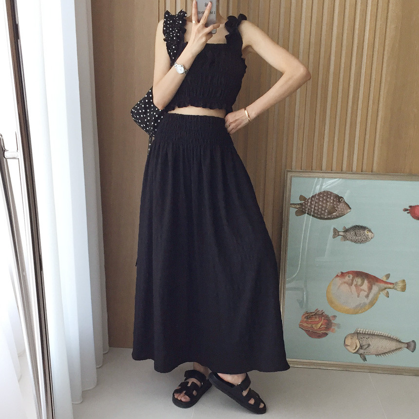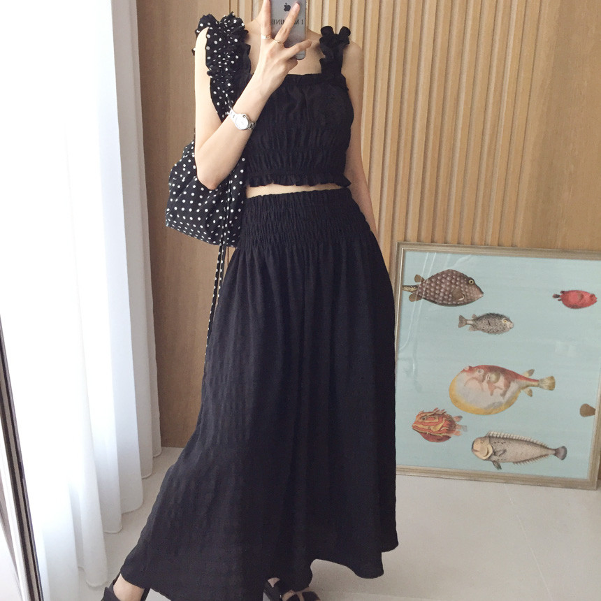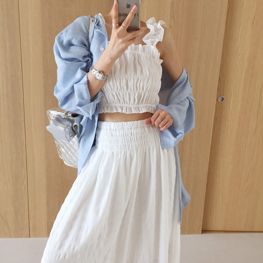 프릴 크롭나시+하이웨스트 롱스커트 투피스세트 보고가세용^^