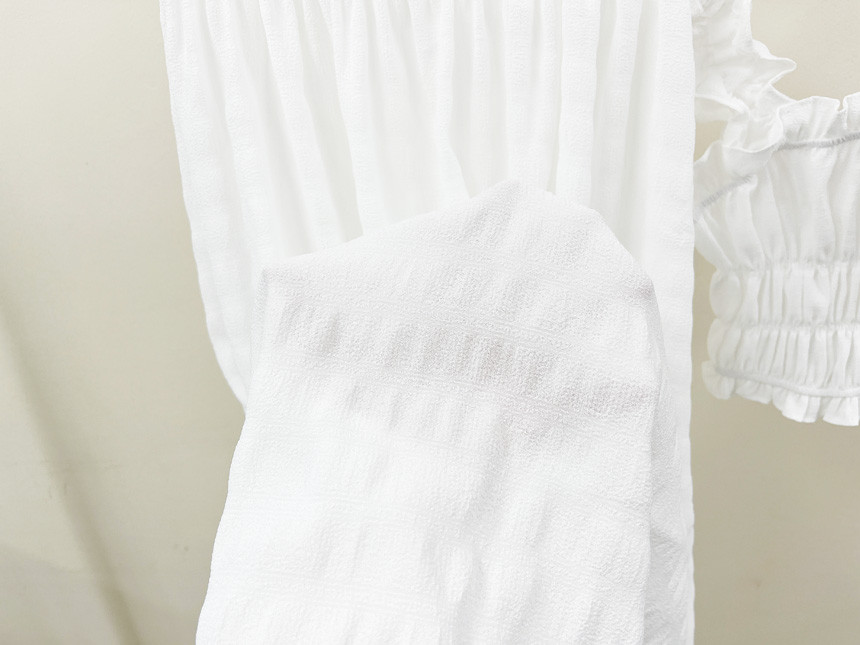 어깨, 바스트, 밑단 모두 스모크 밴딩으로