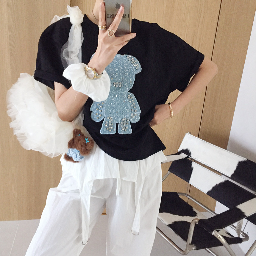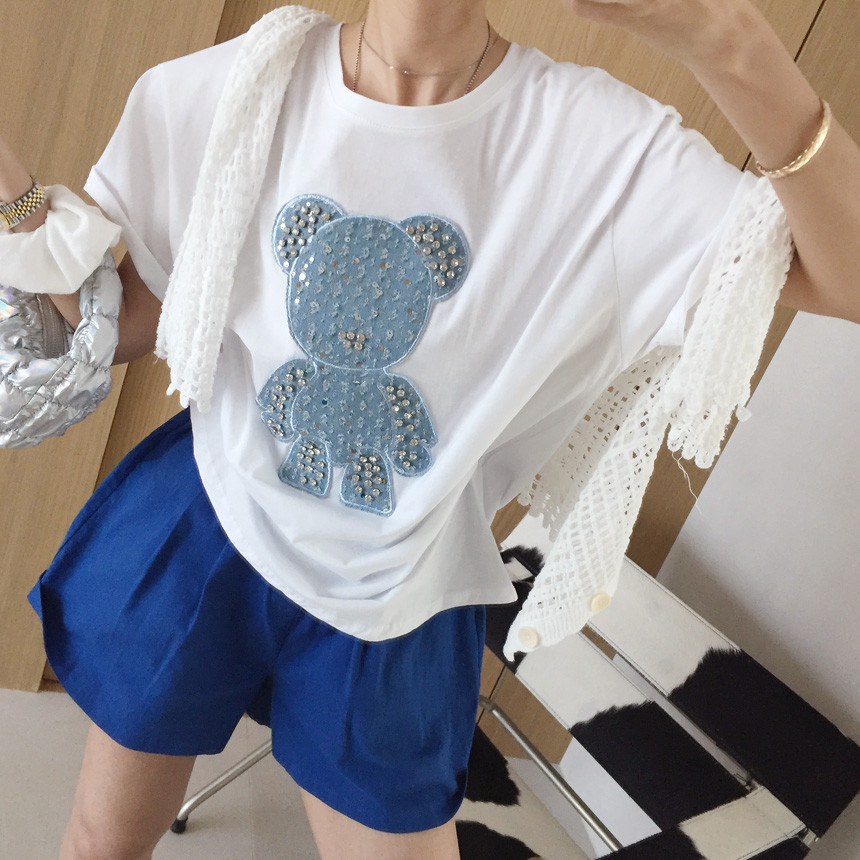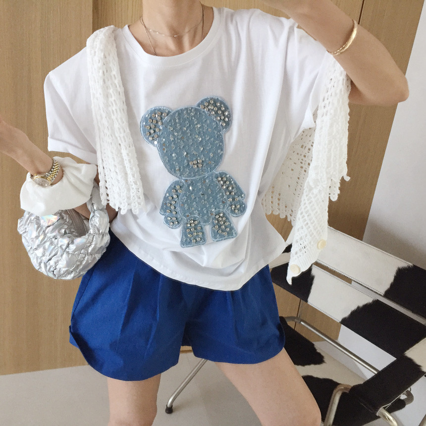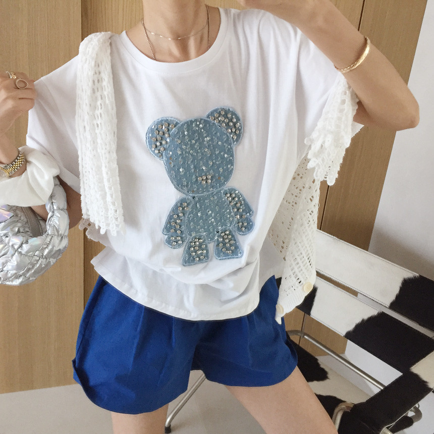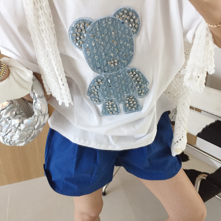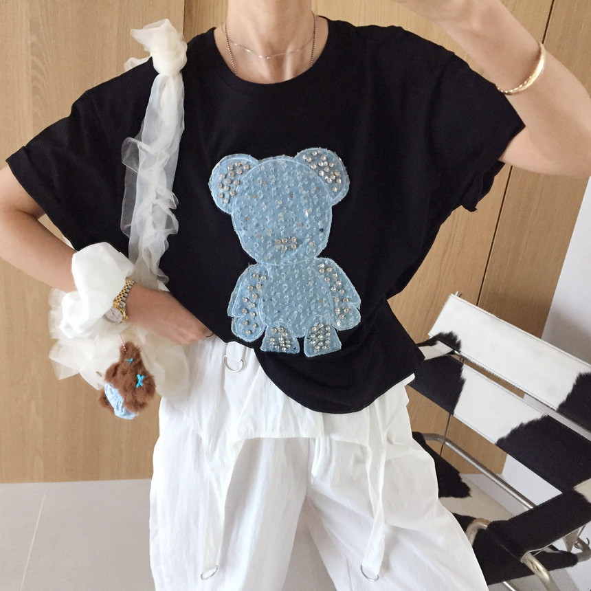 곰돌이 큐빅 비즈 패치 반팔티셔츠 소개드려용^^~