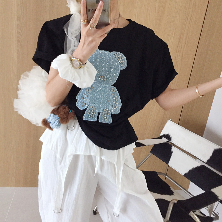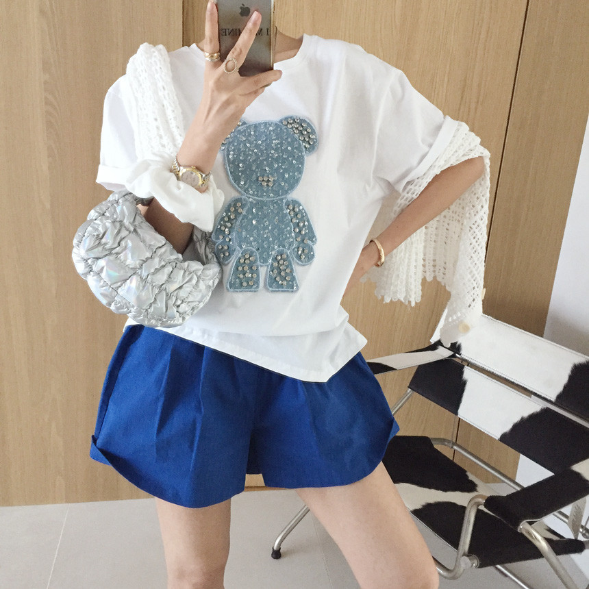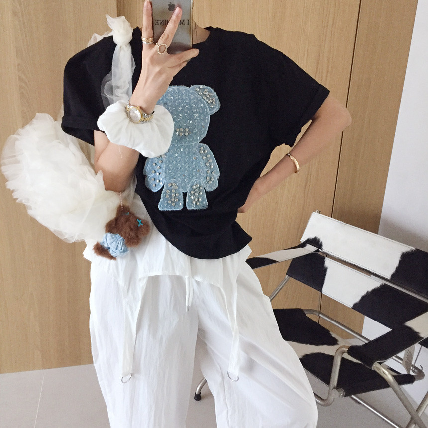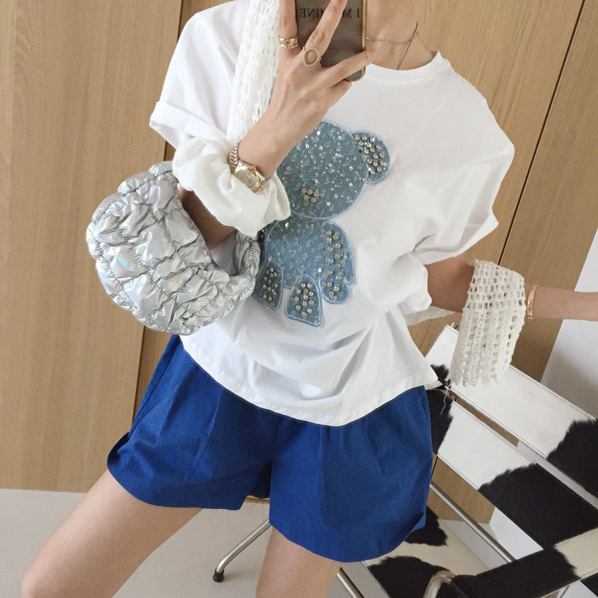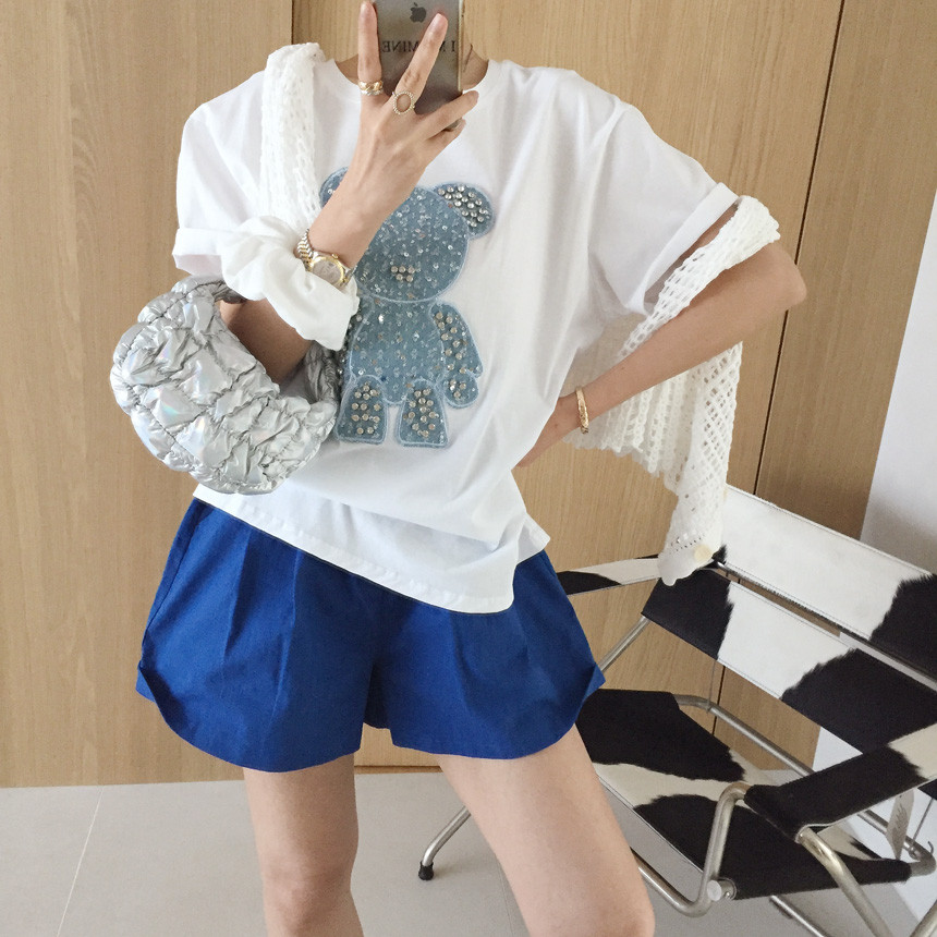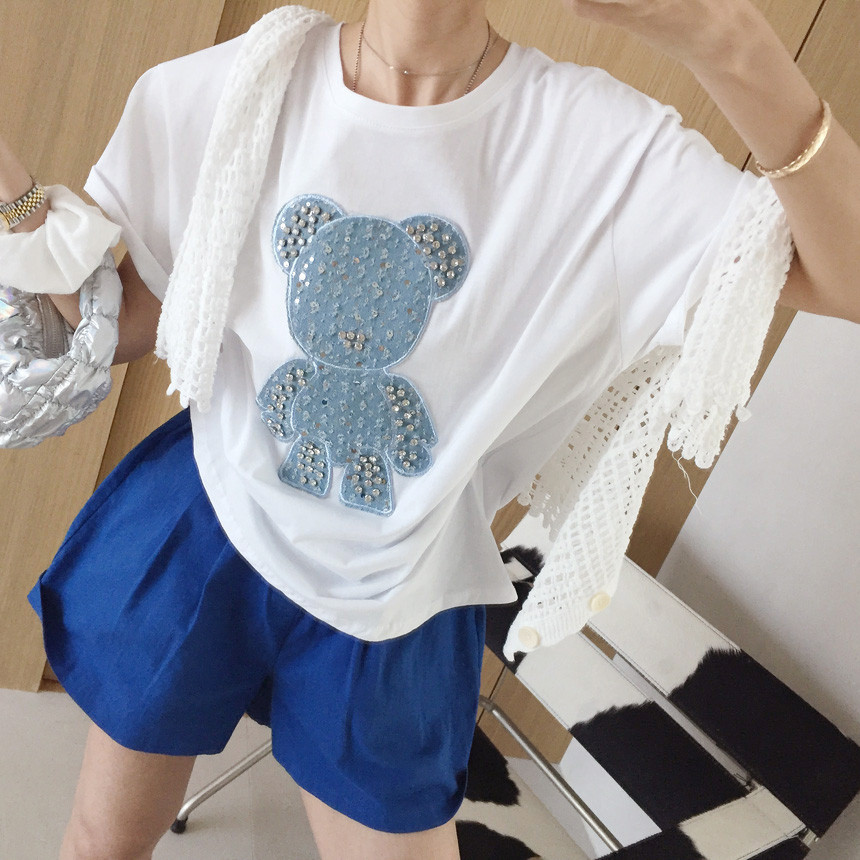 곰돌이 큐빅 비즈 패치 반팔티셔츠 소개드려용^^~