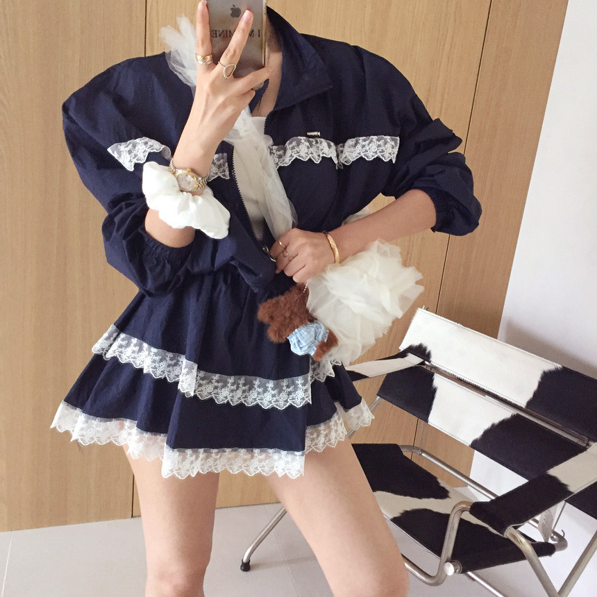 레이스 바스락 바람막이 스커트 투피스세트 보여드릴게요~