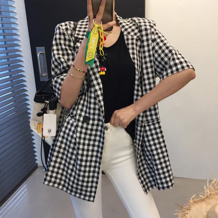 단정하서도 캐주얼한 무드가 돋보이는 체크패턴에 유니크한 감성이