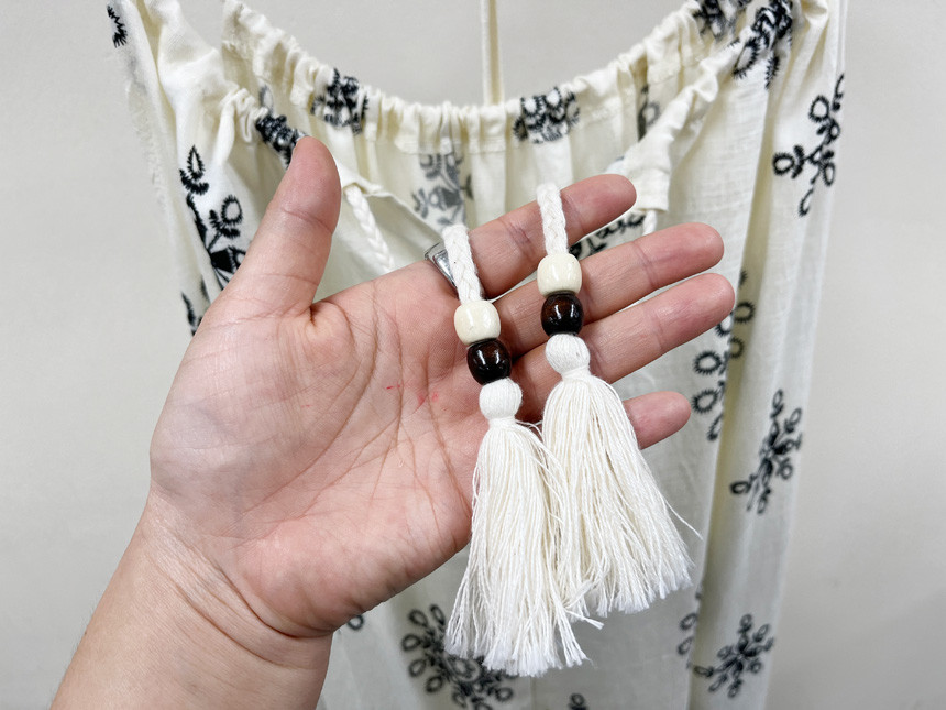 스트링에는 비즈와 수술로 포인트를 주었답니당!