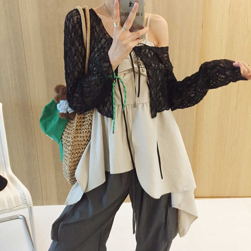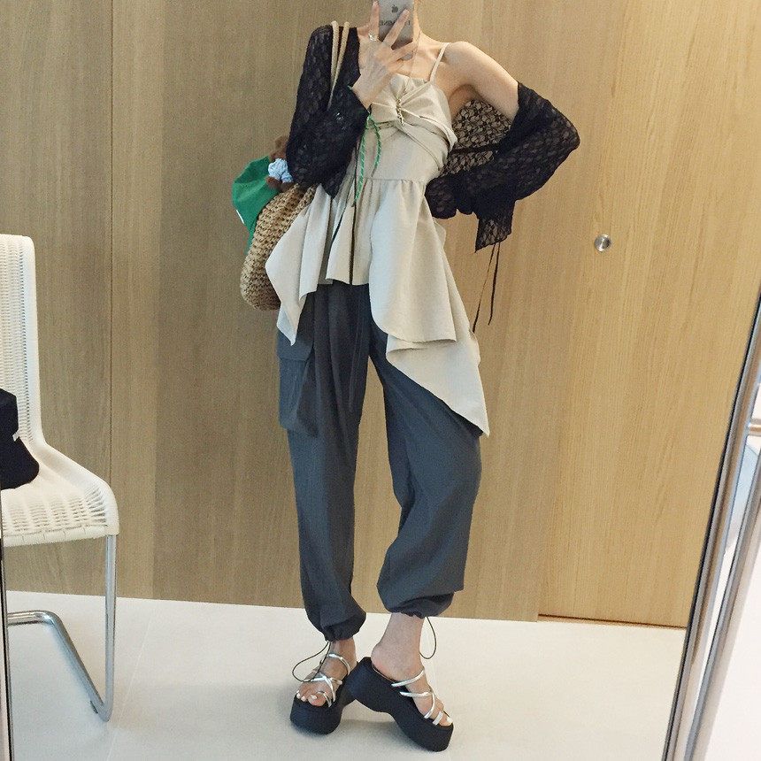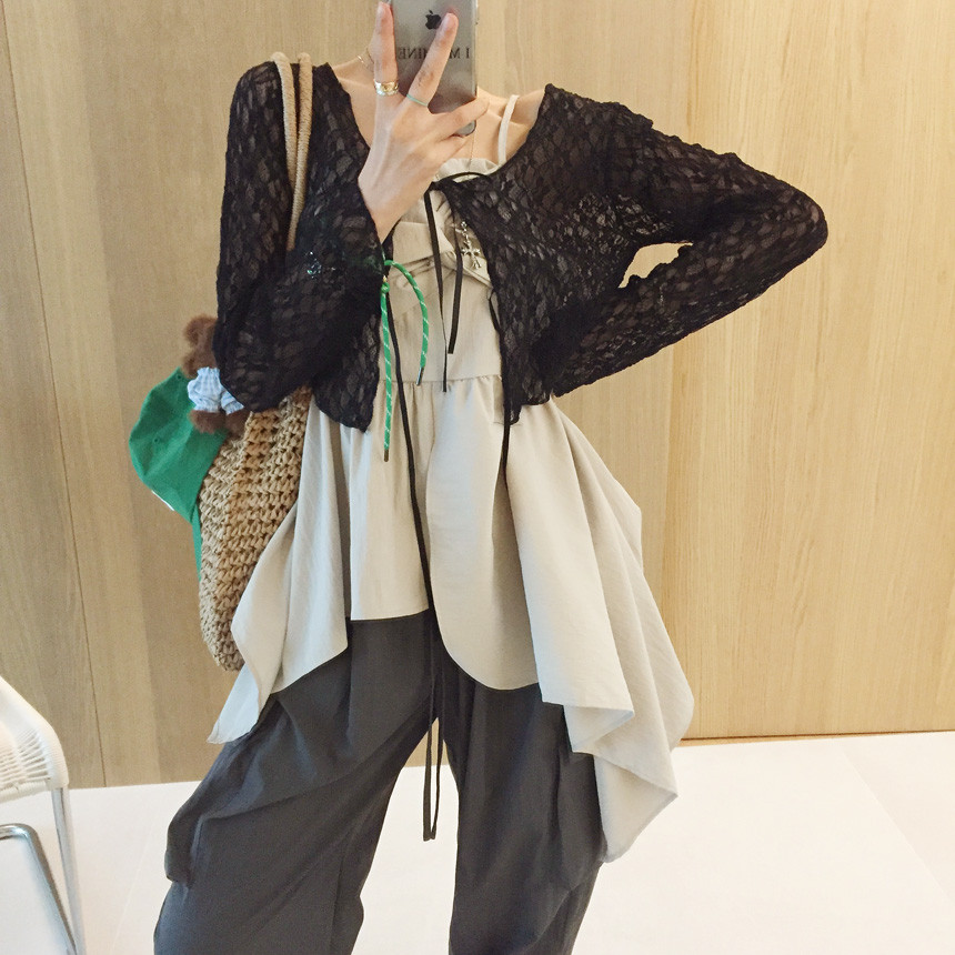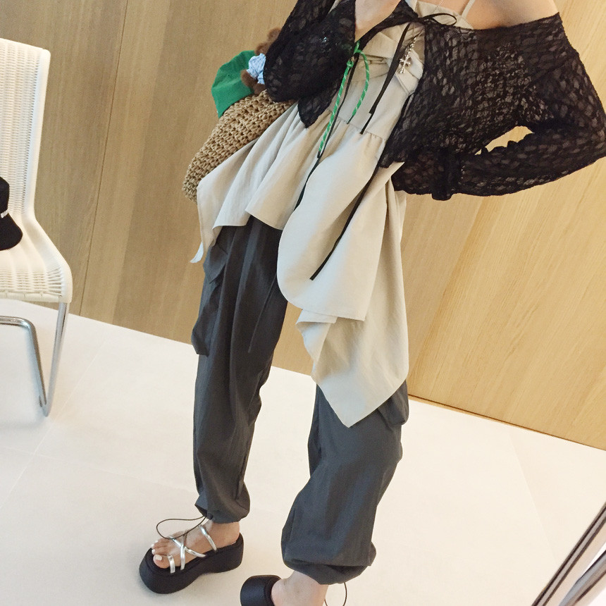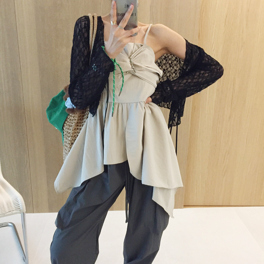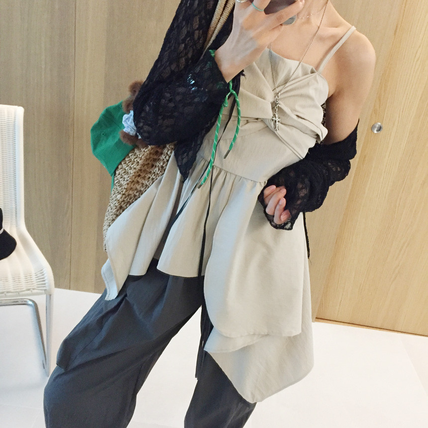 [가슴 33.5~FREE(스모크뒷밴딩) 총기장(최대치끈길이포함) 짧은부분 72 긴부분 90]