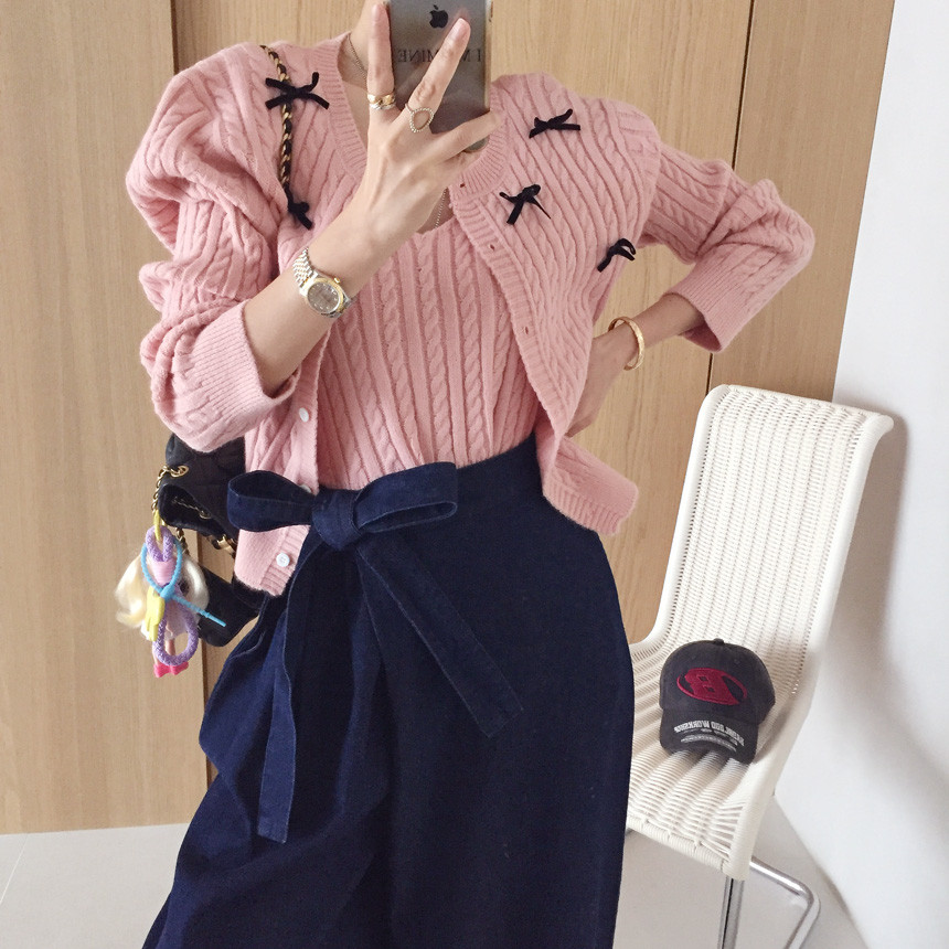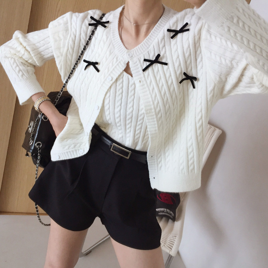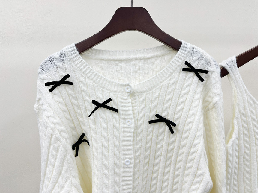 가디건은 깔끔한 라운드넥에 단추로 오픈클로징이 이지하고
