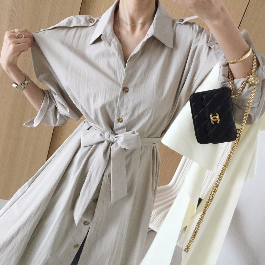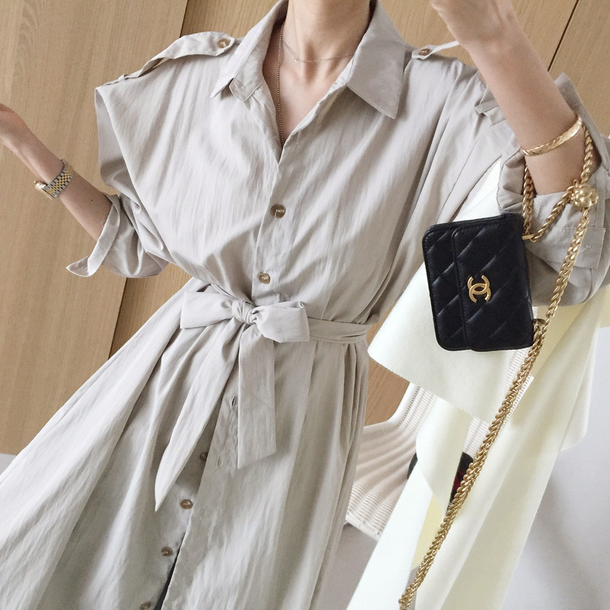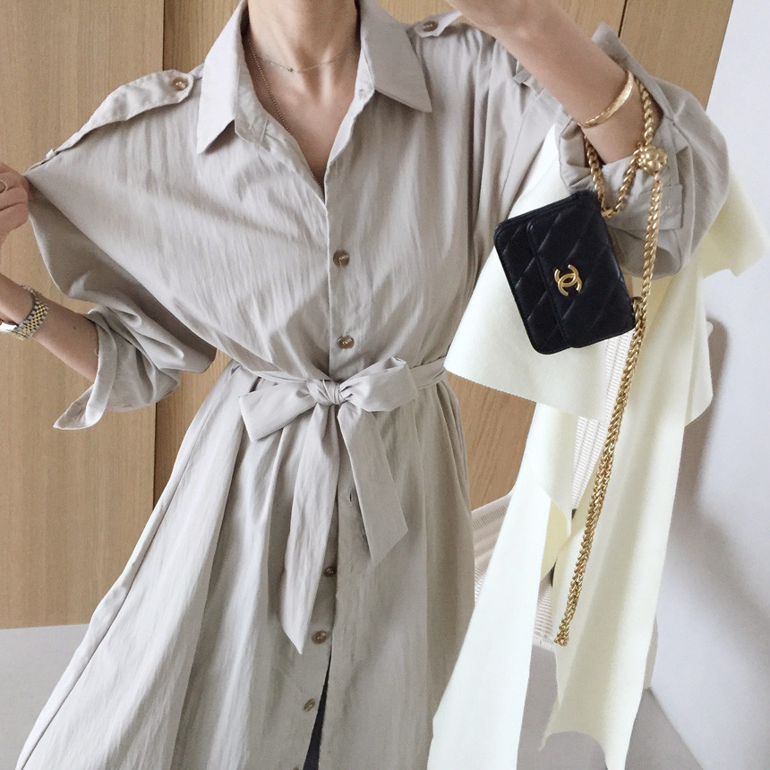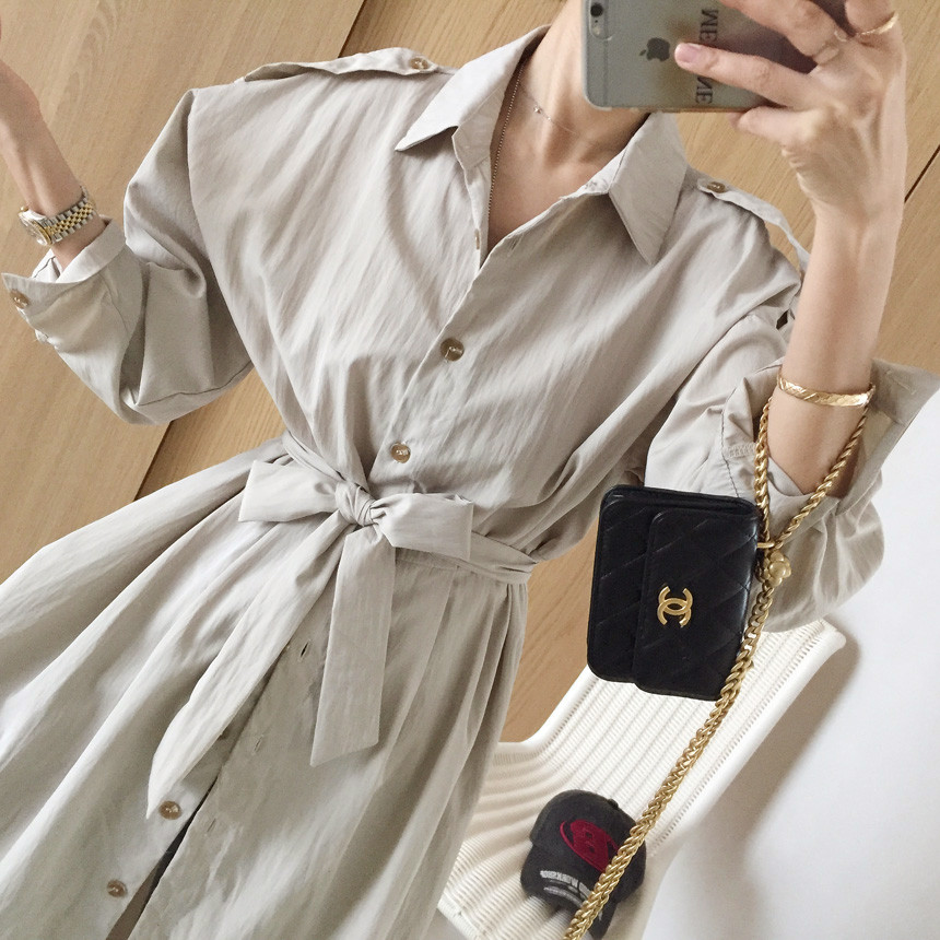 벨트세트 A라인 핀턱 셔츠 롱원피스 소개해드릴께요 :)