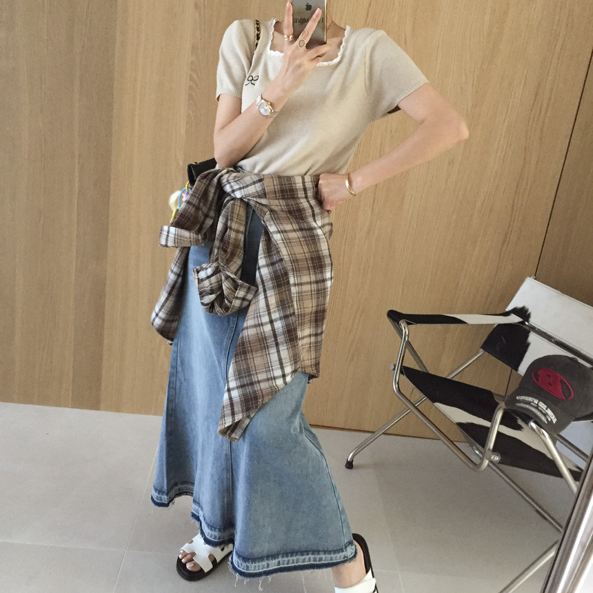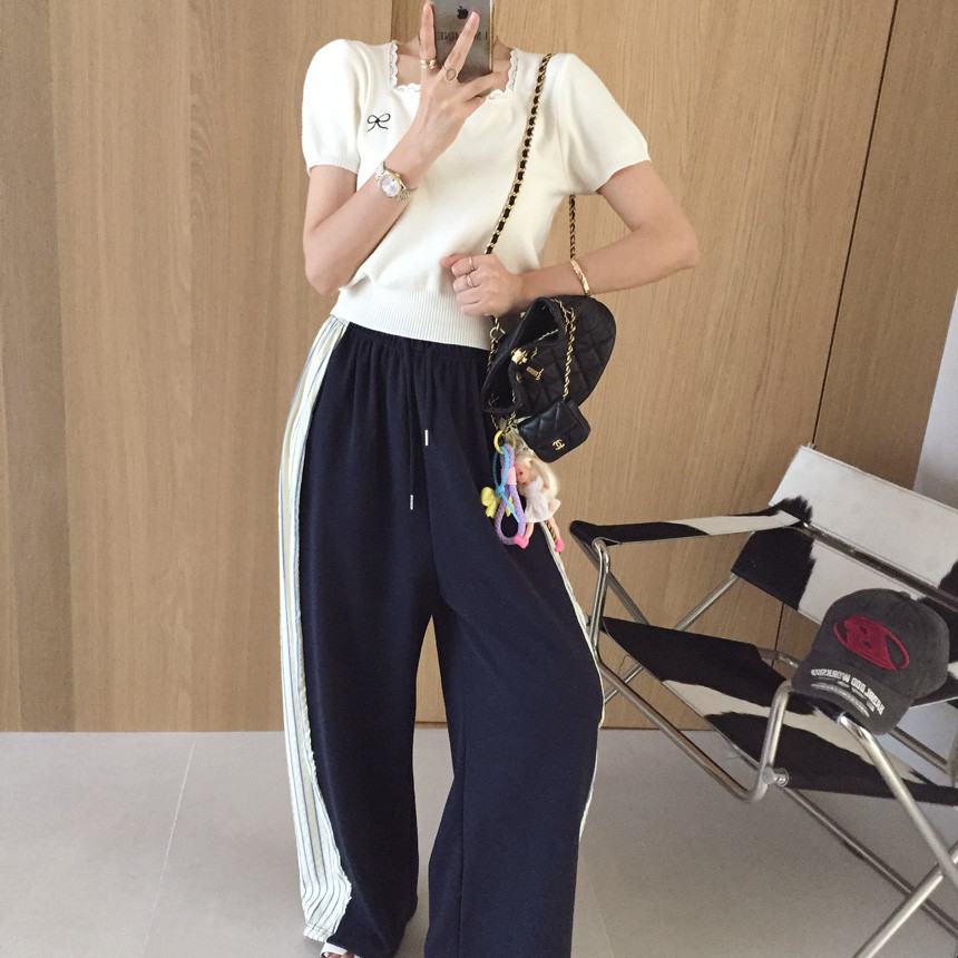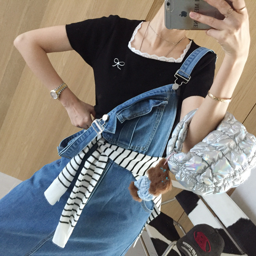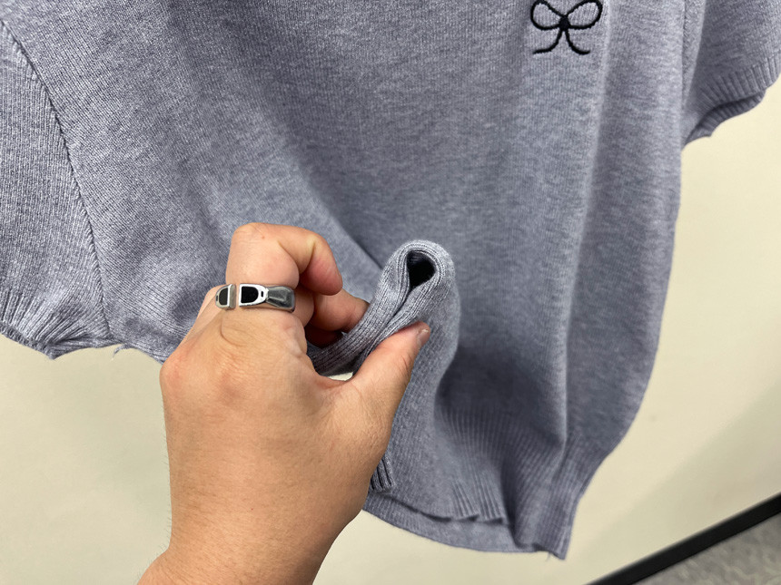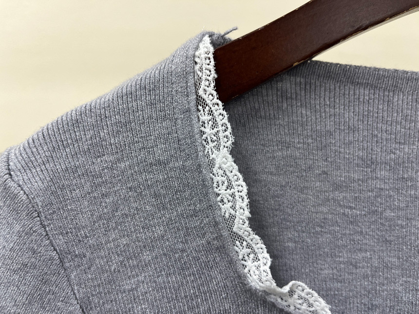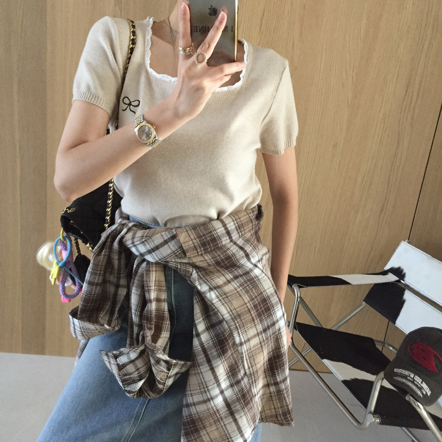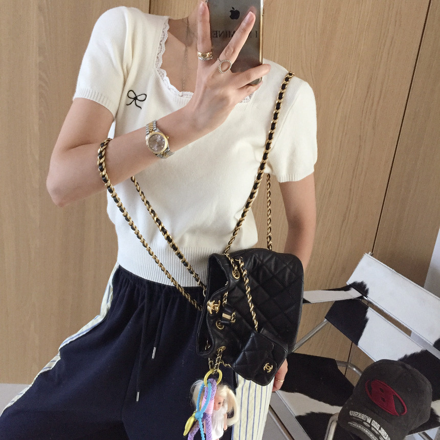 레이스 리본자수 스퀘어넥 반팔니트 소개드려요 ><