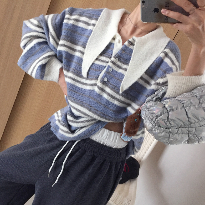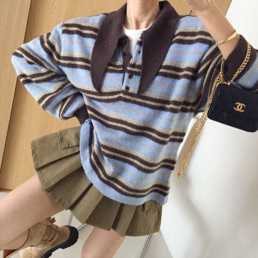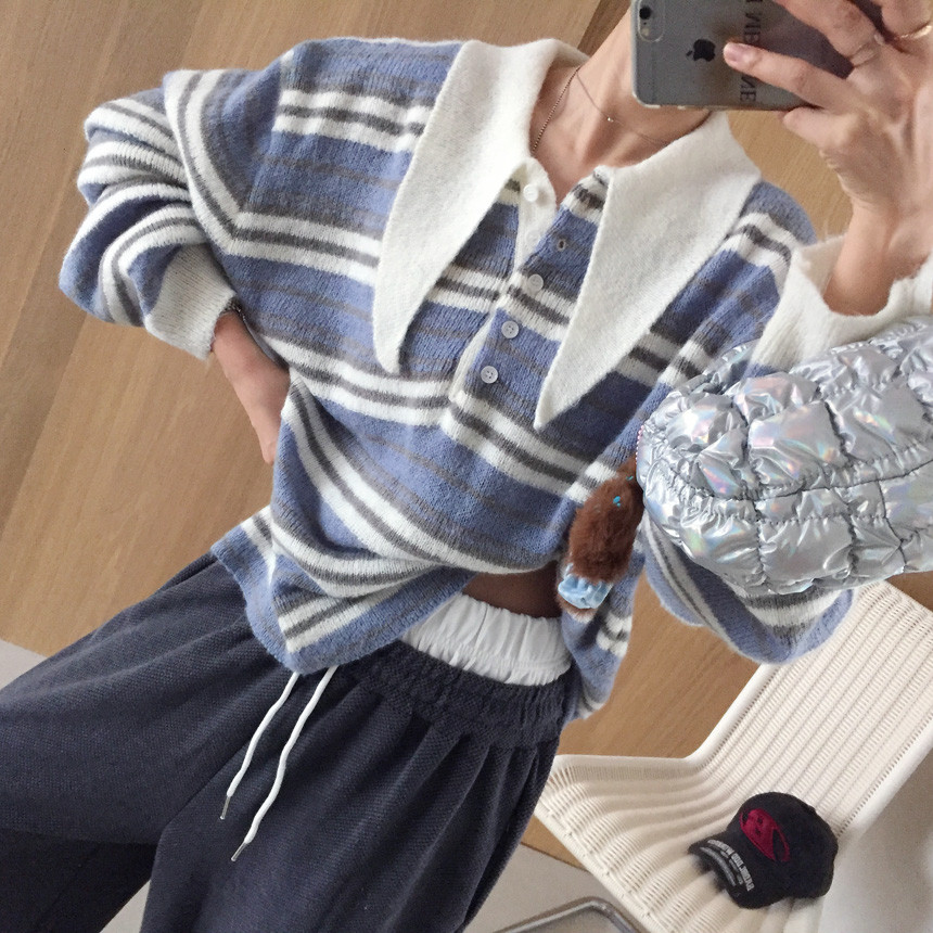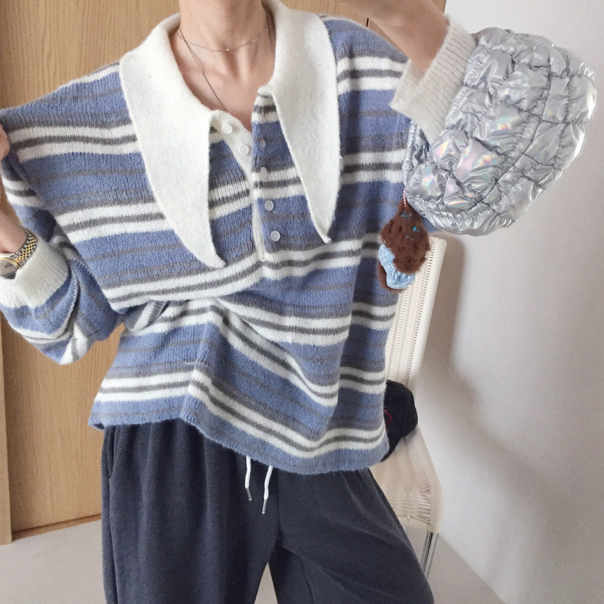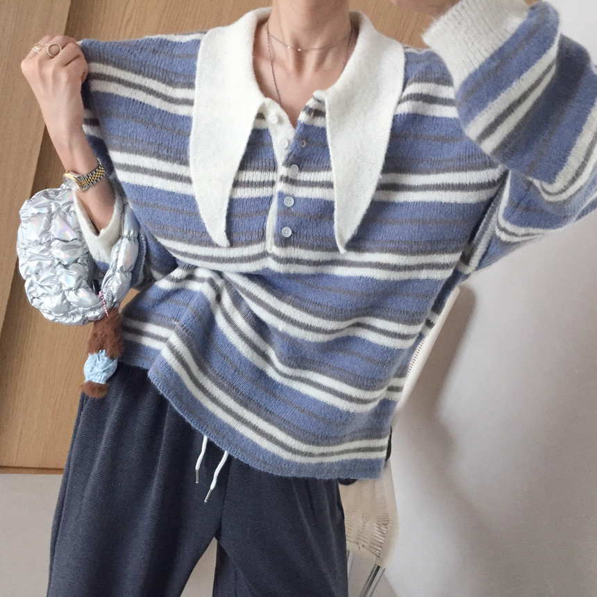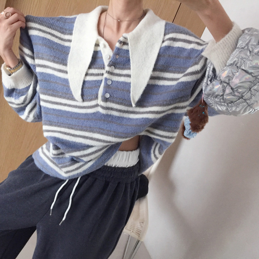 배색 스트라이프 빅카라 니트 소개해드릴께요 :)
