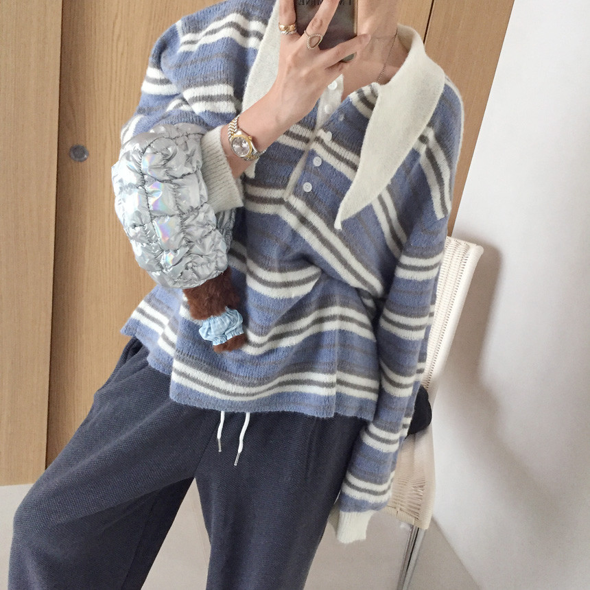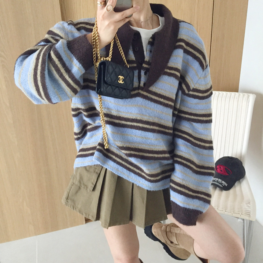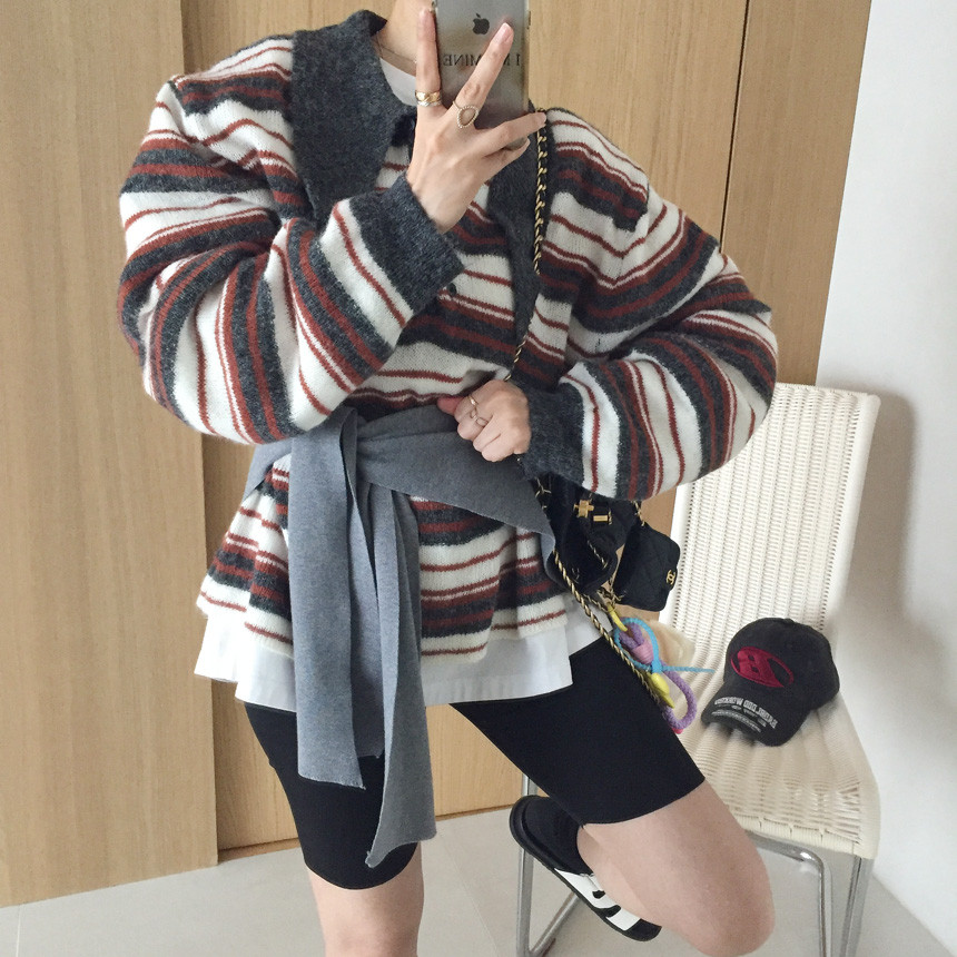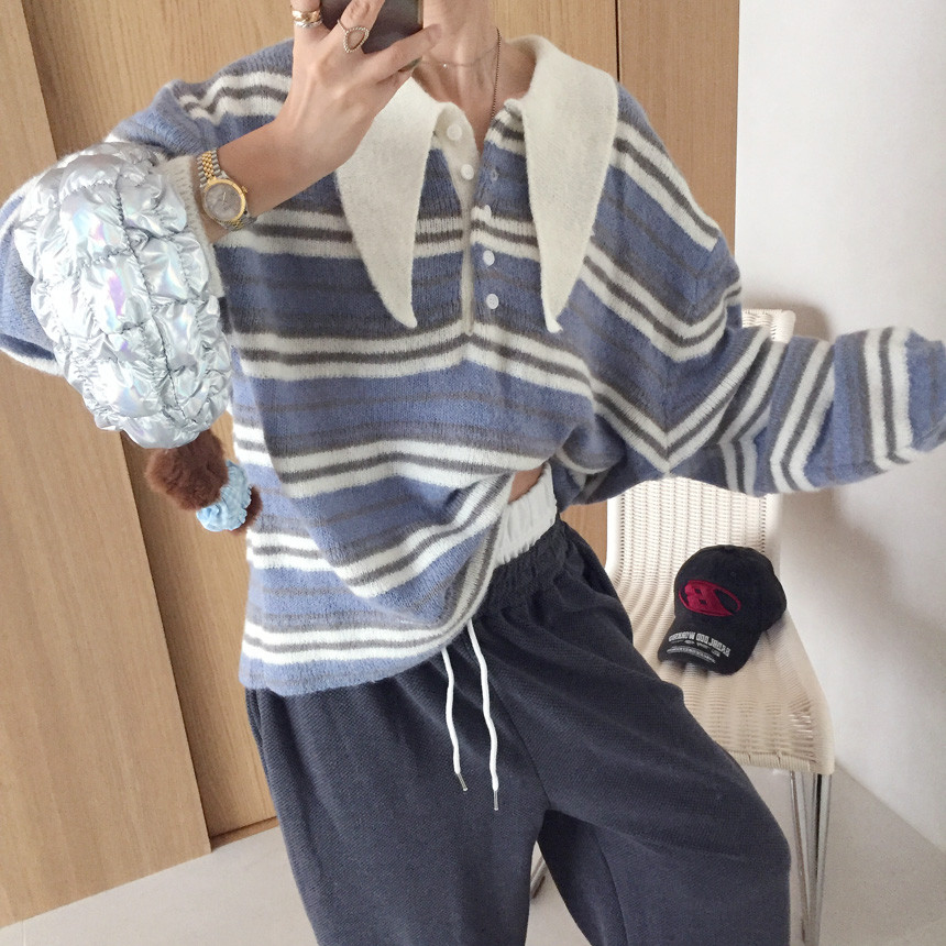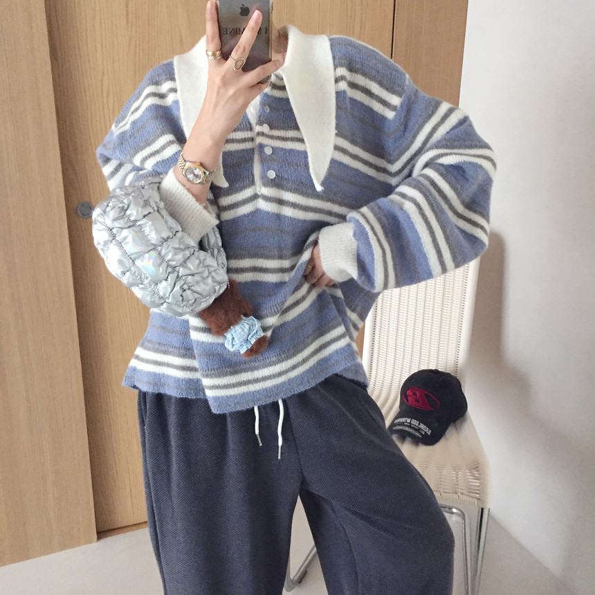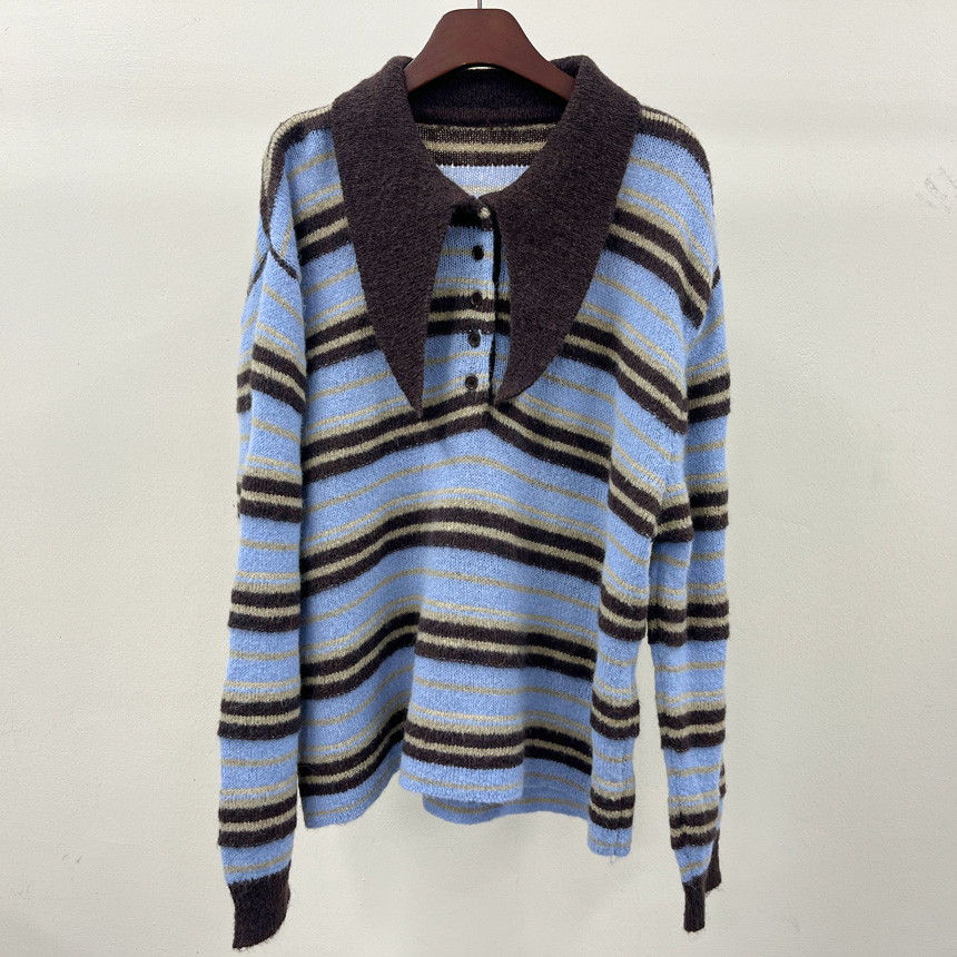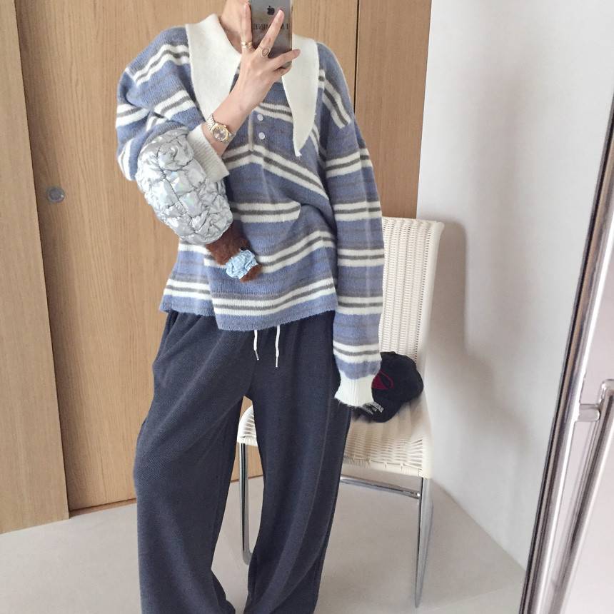 배색 스트라이프 빅카라 니트 소개해드릴께요 :)