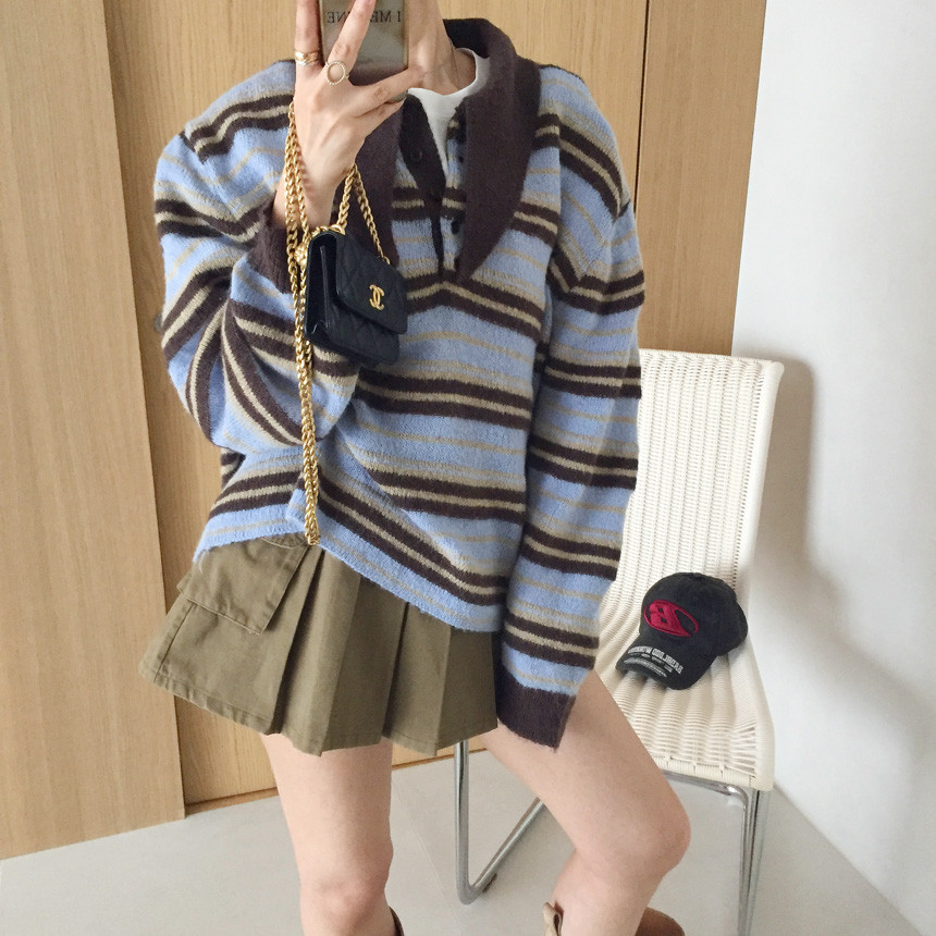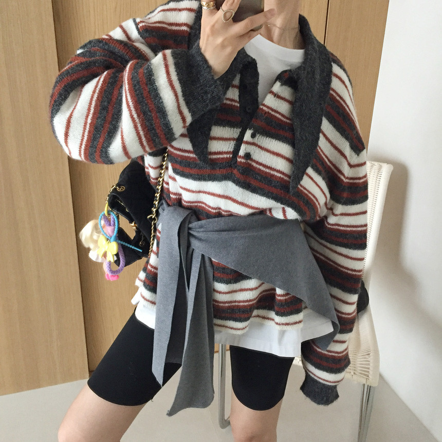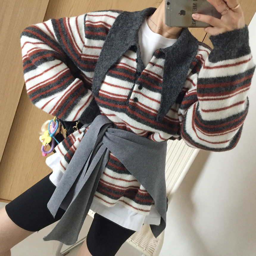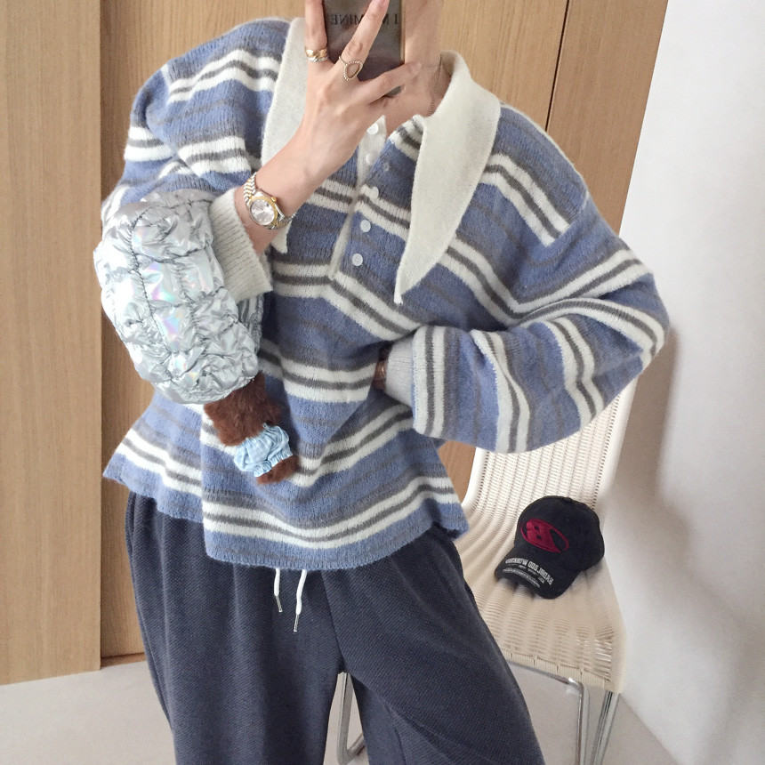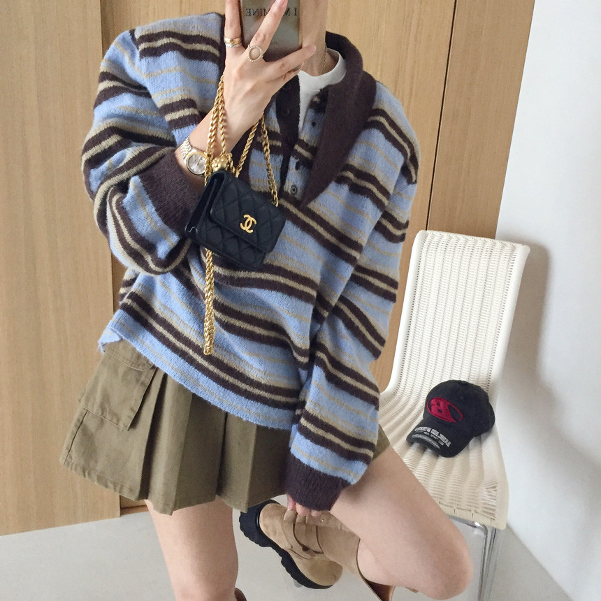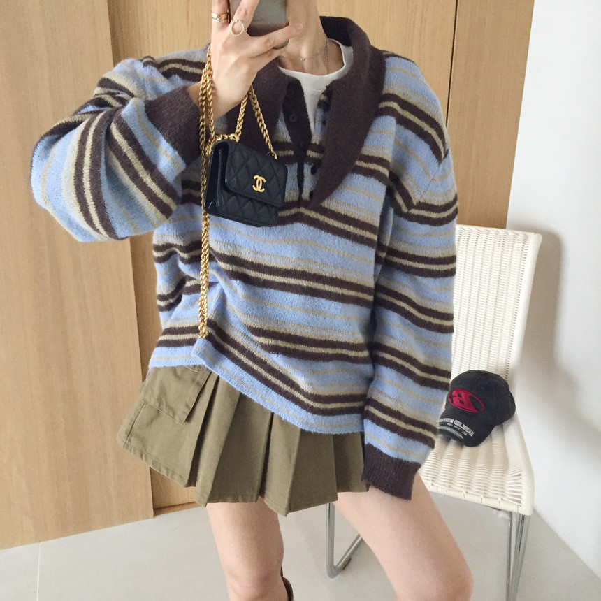 배색 스트라이프 빅카라 니트 소개해드릴께요 :)