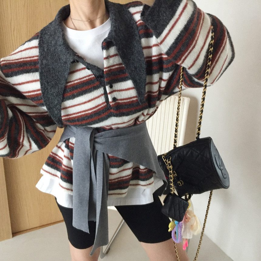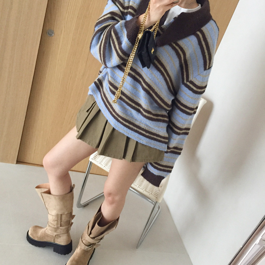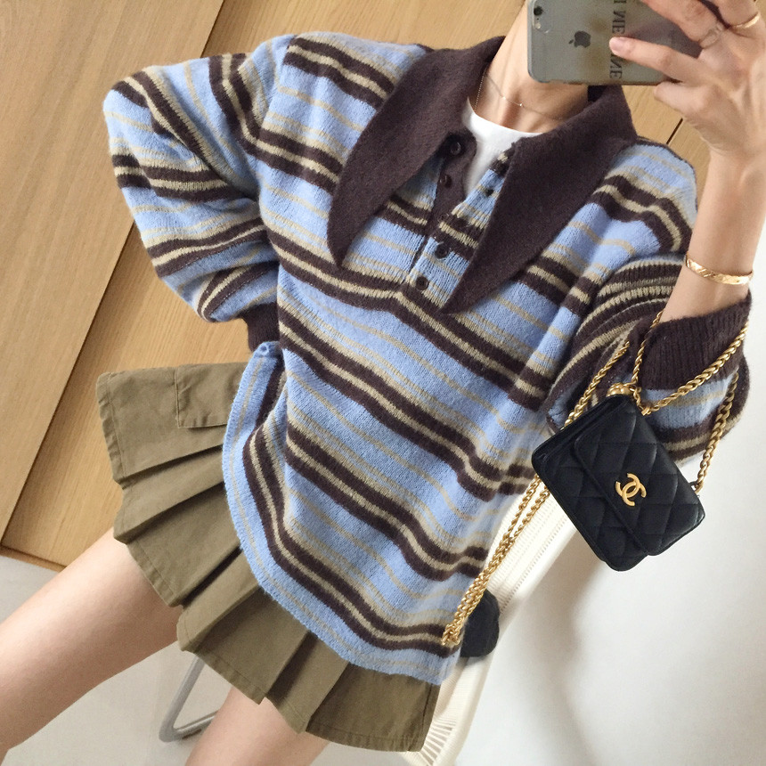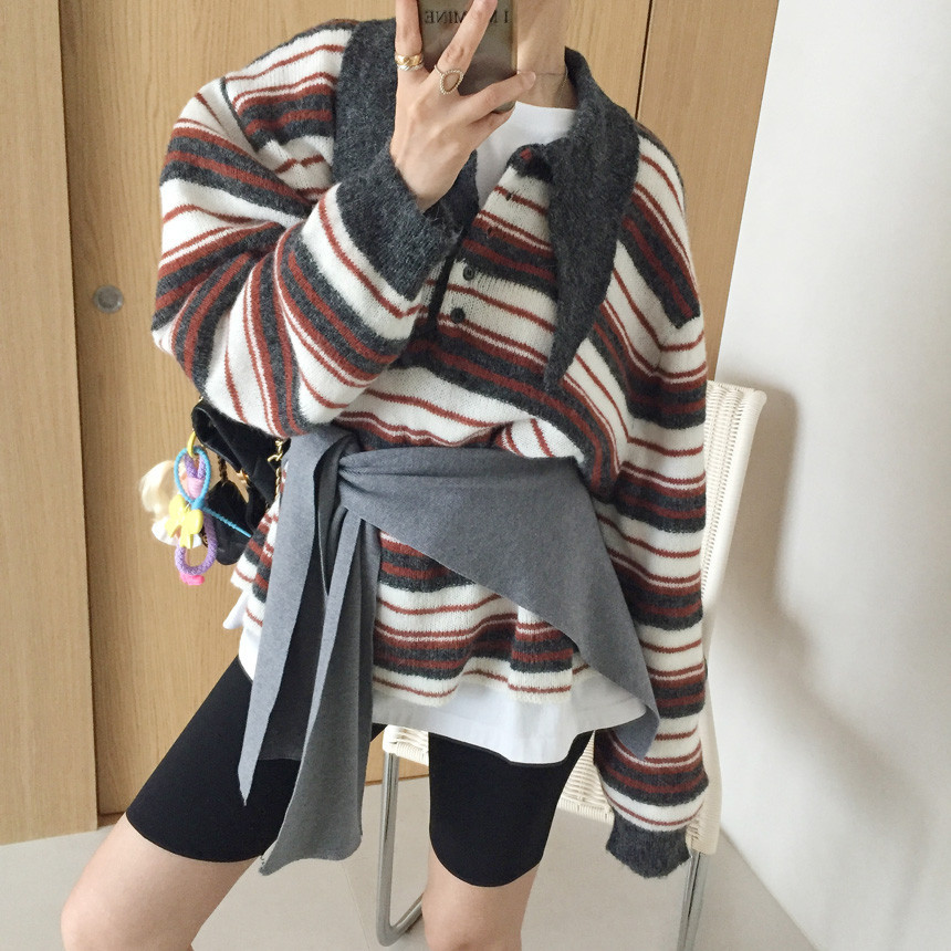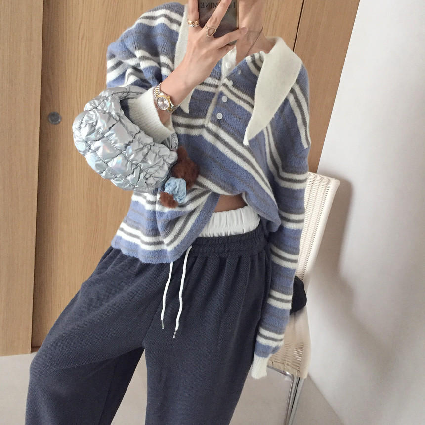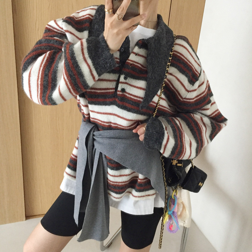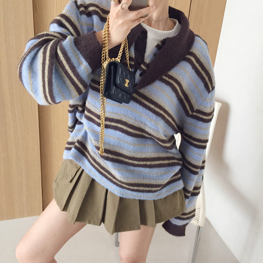배색 스트라이프 빅카라 니트 소개해드릴께요 :)