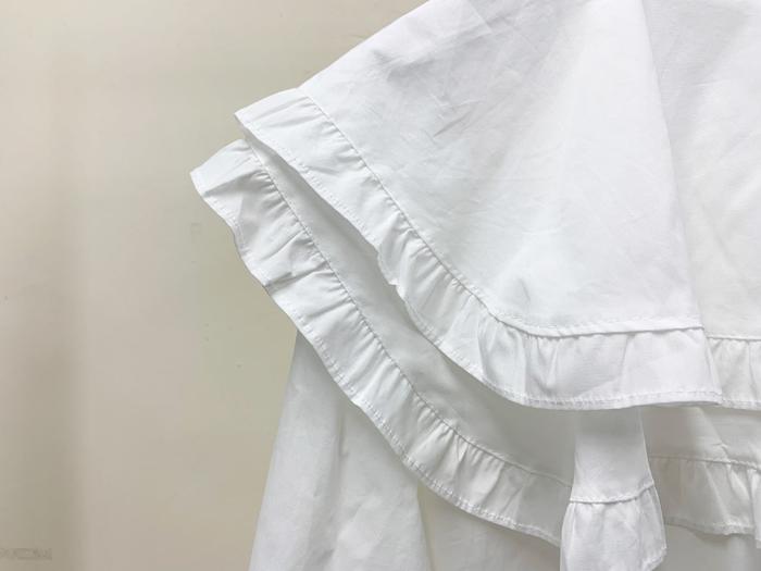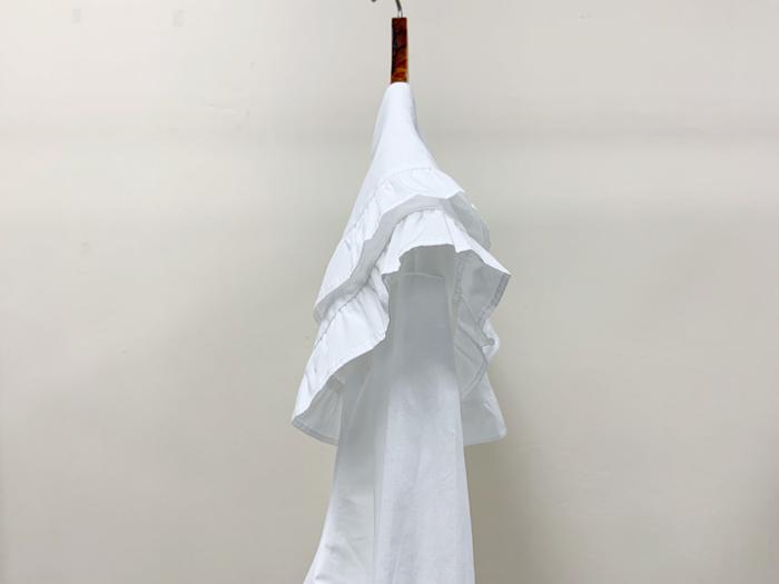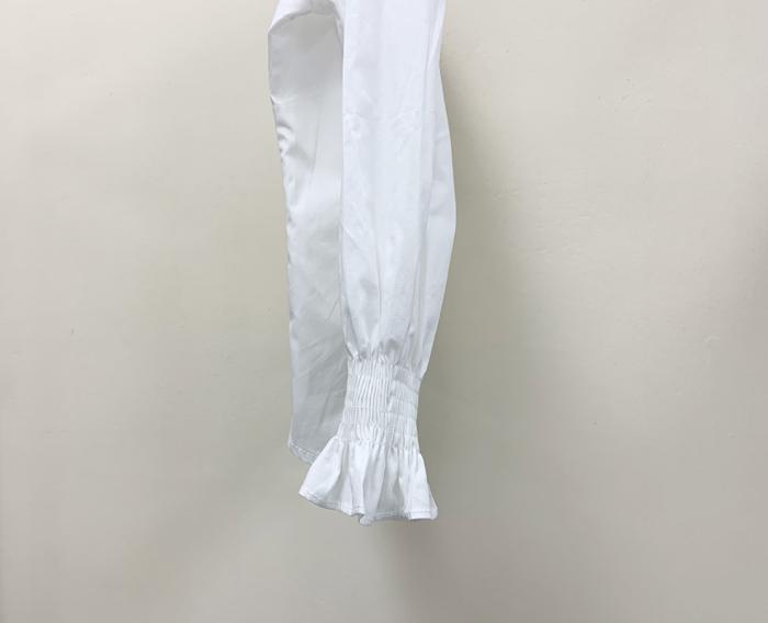 디자인에 스모크 밴딩 처리된 프릴 소매라인이