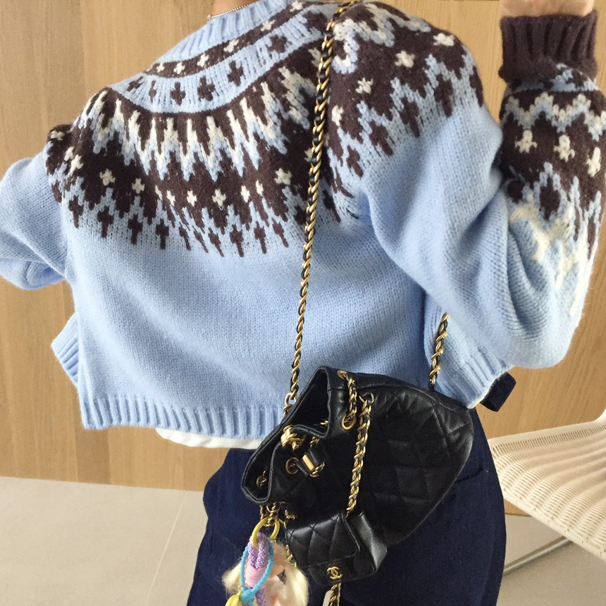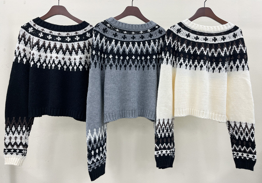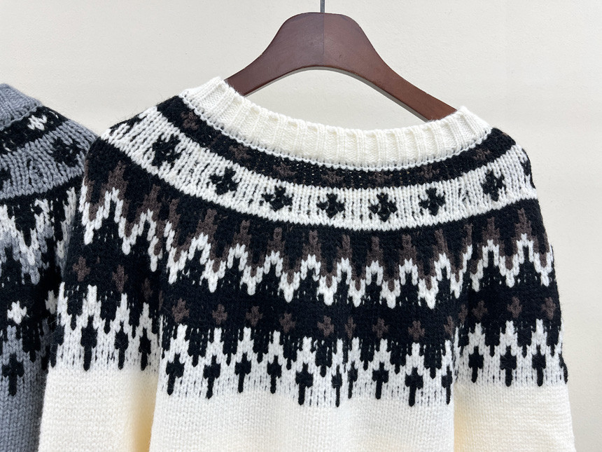 넥라인과 소매의 배색 노르딕 패턴으로