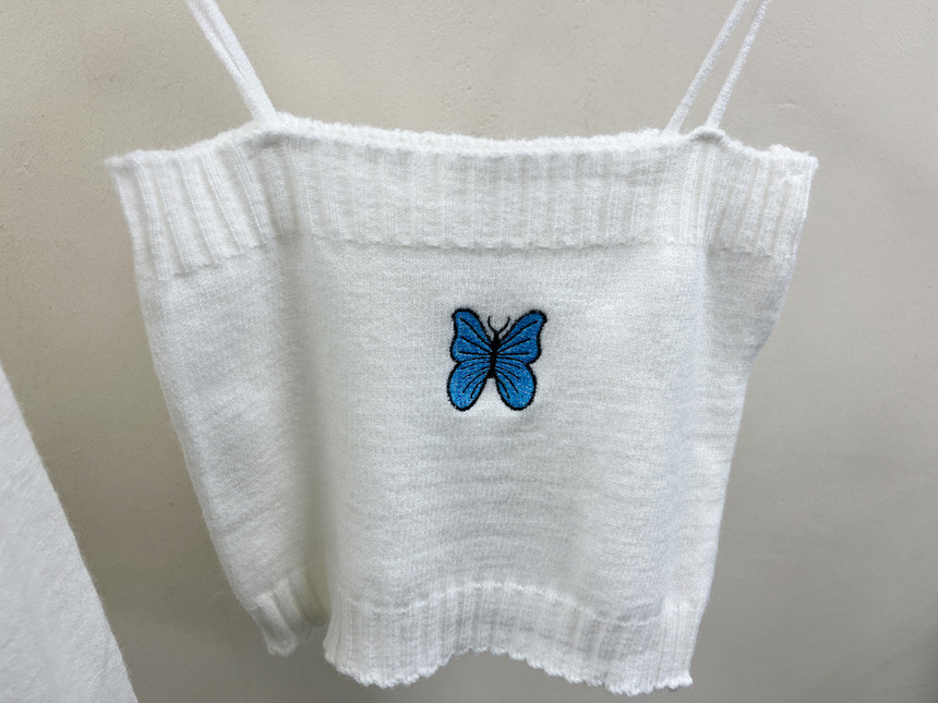 곳곳의 나비 자수가 러블리한 포인트로 연출되는