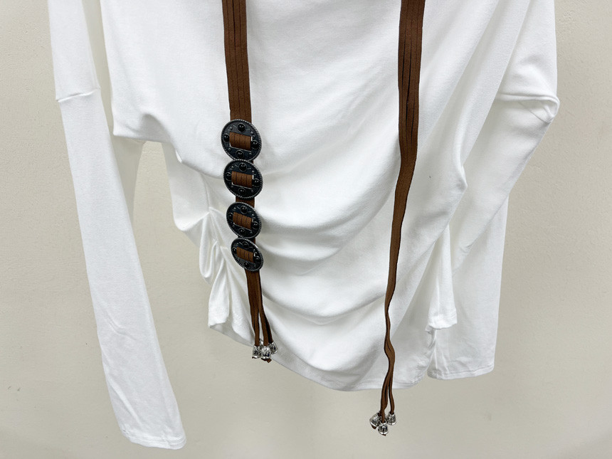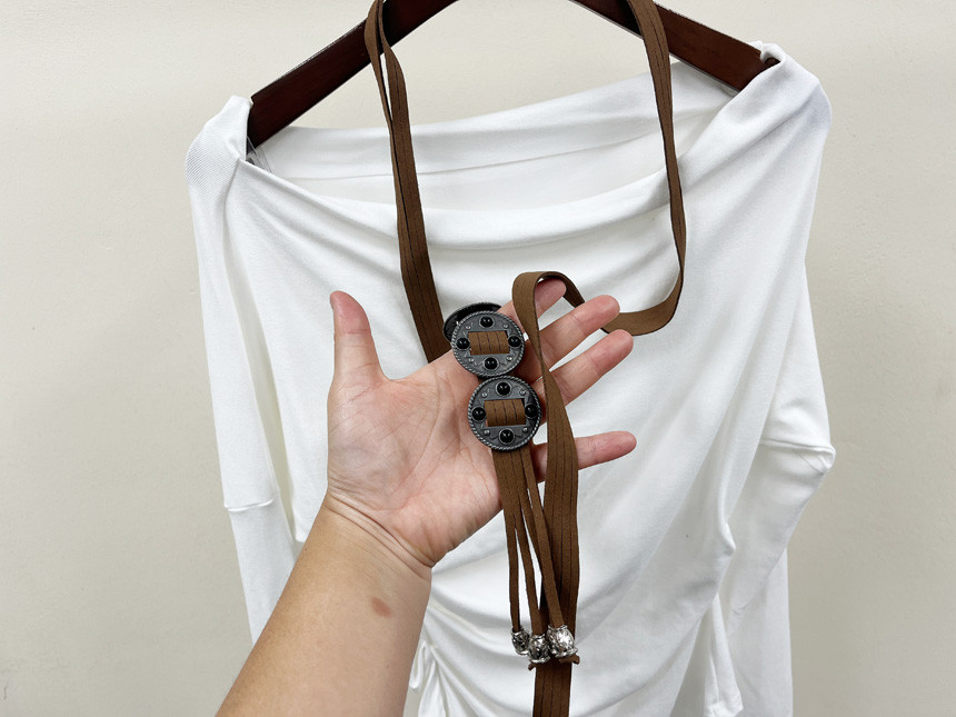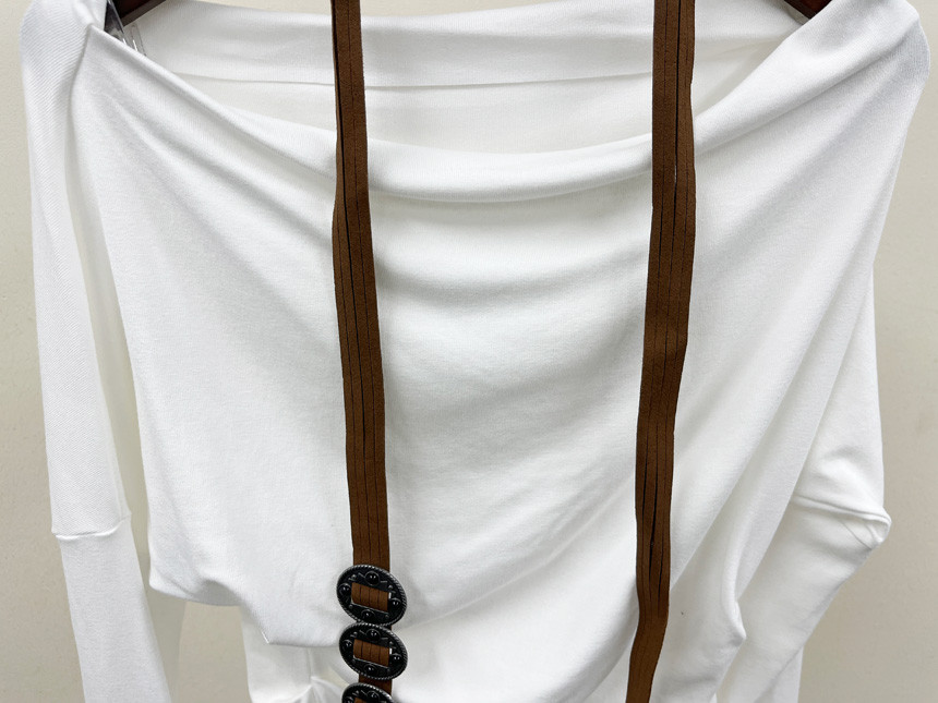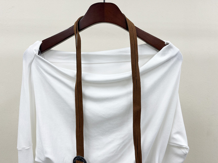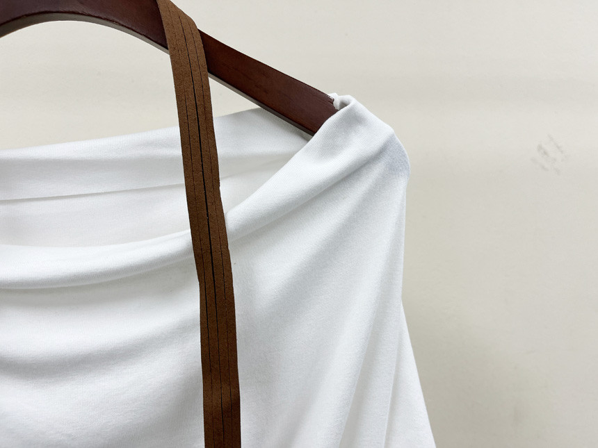벨트세트 드레이프 셔링에 보트넥과 오프숄더 중간정도의