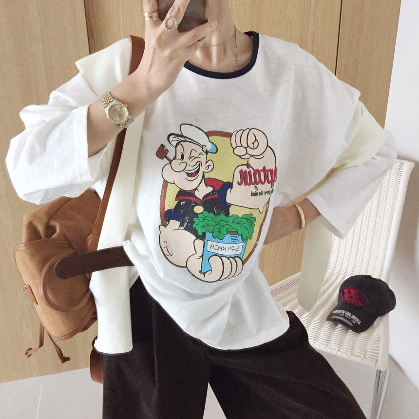 배색 라운드 루즈핏 긴팔티셔츠 소개해드릴께요 ^^