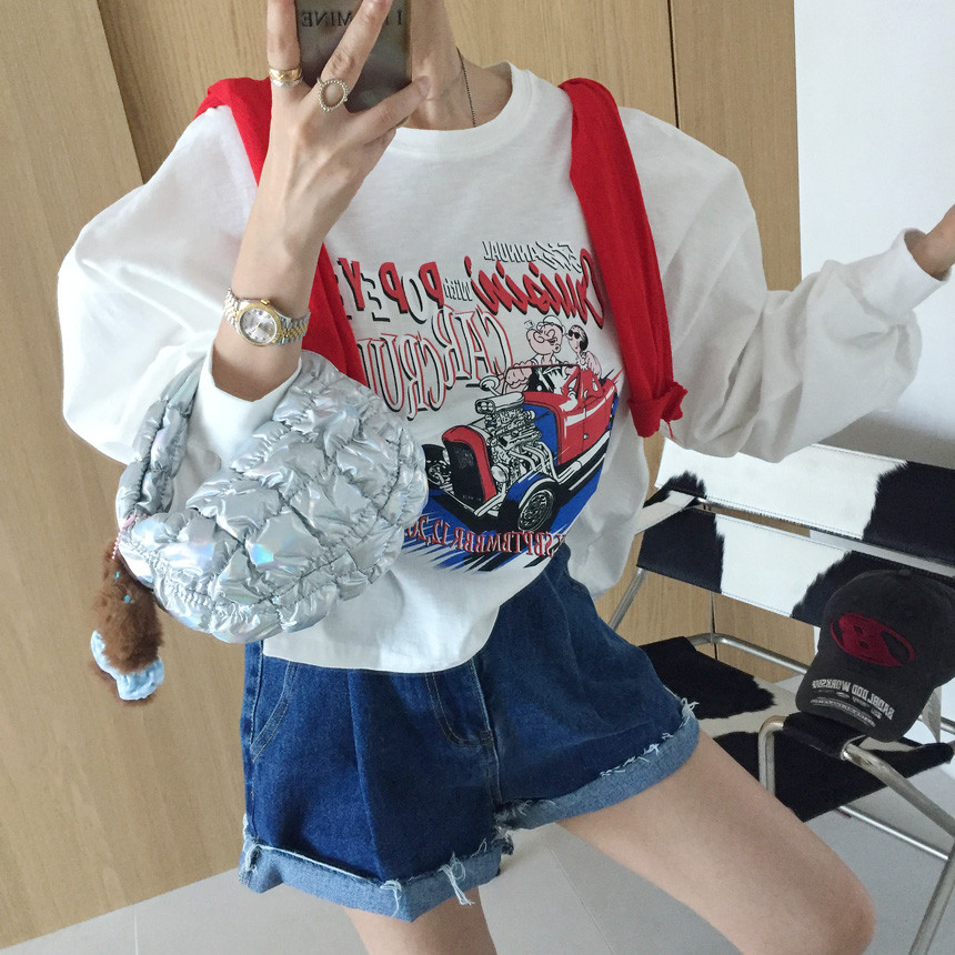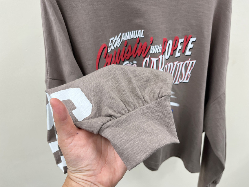 소매에 큼지막한 레터링이 포인트적인 아이에용!