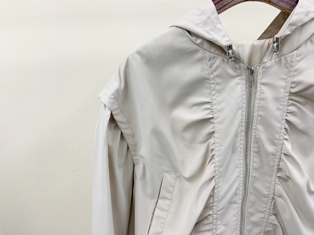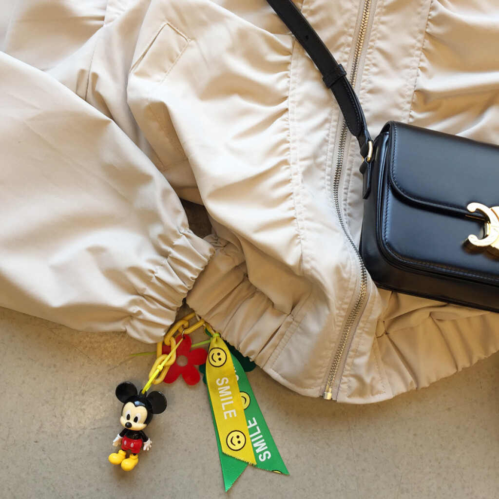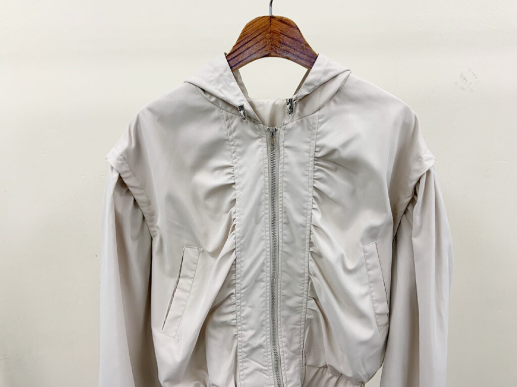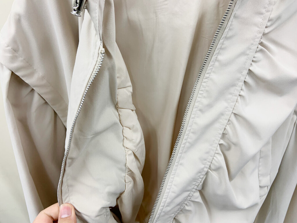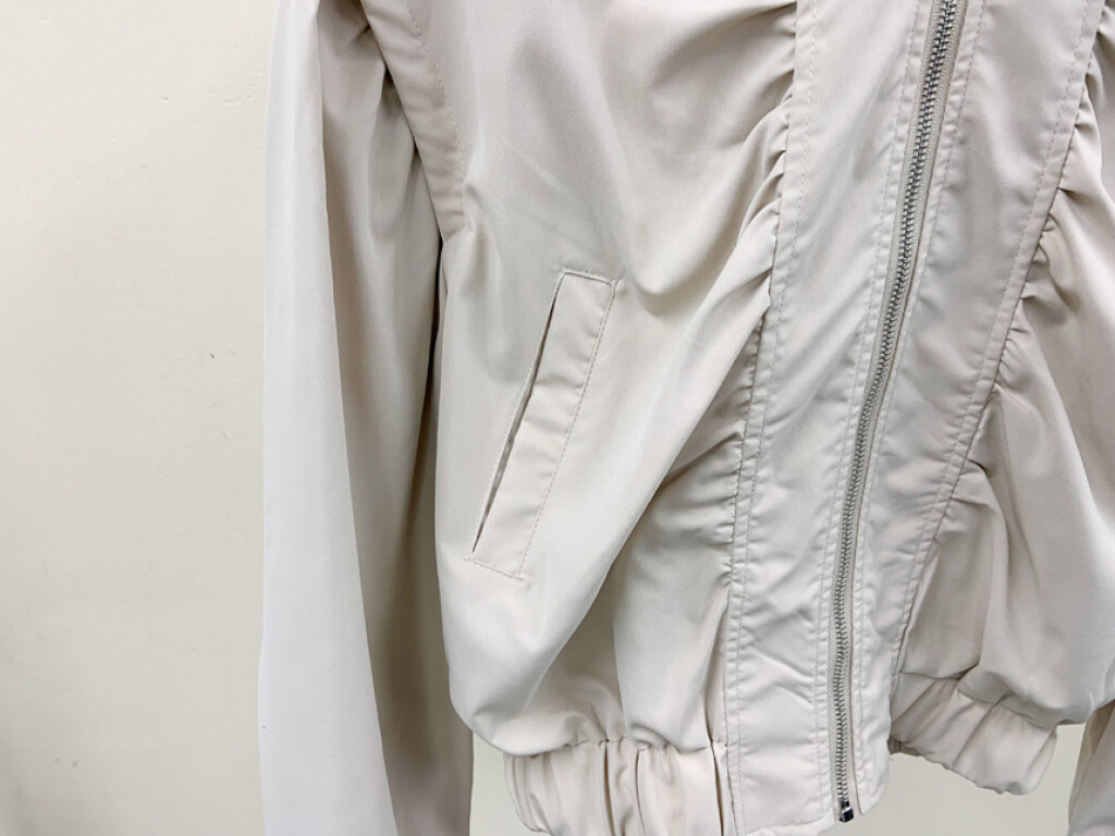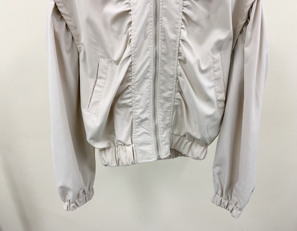 전면의 지퍼를 따라 셔링잡힌 디자인이 볼륨감있으면서