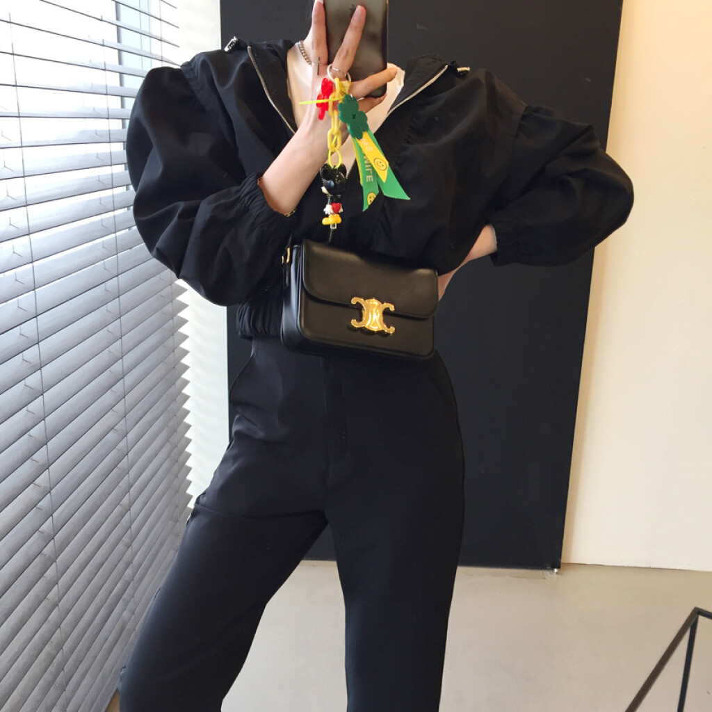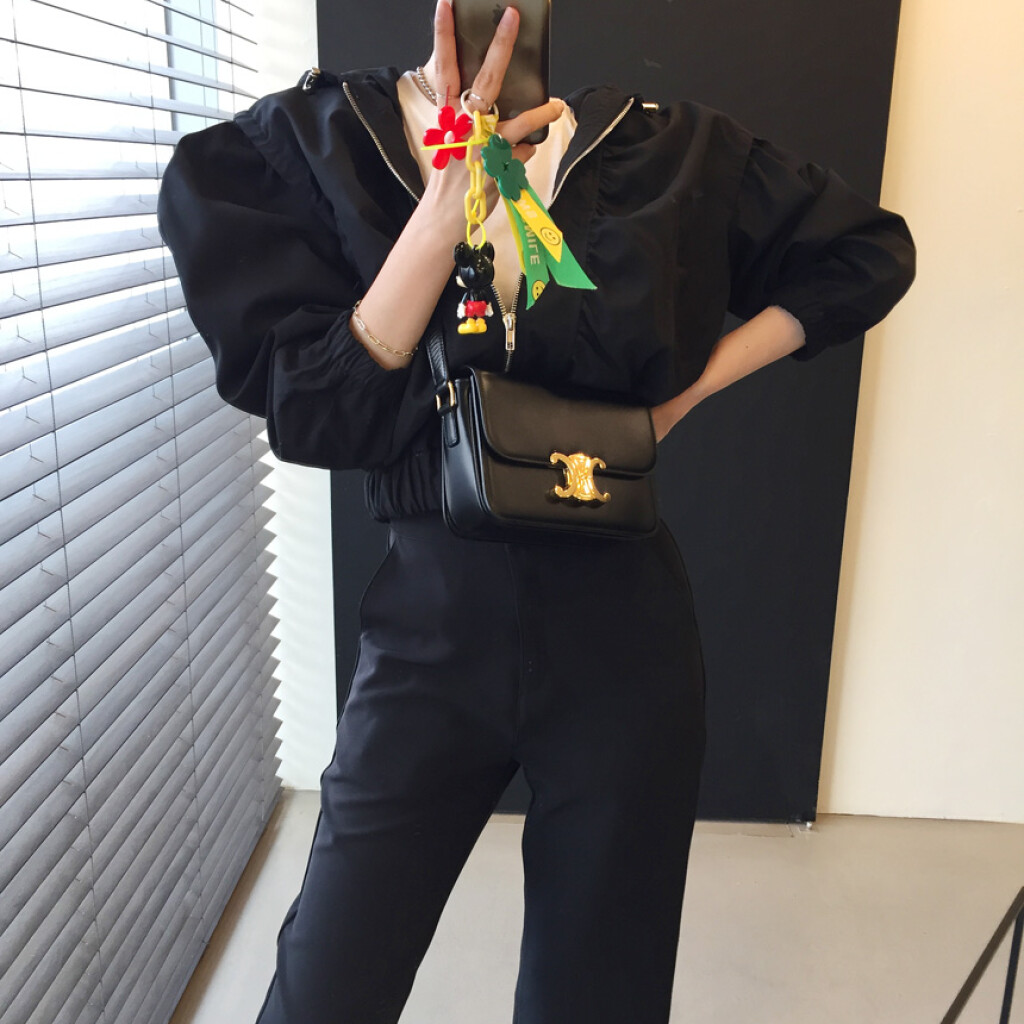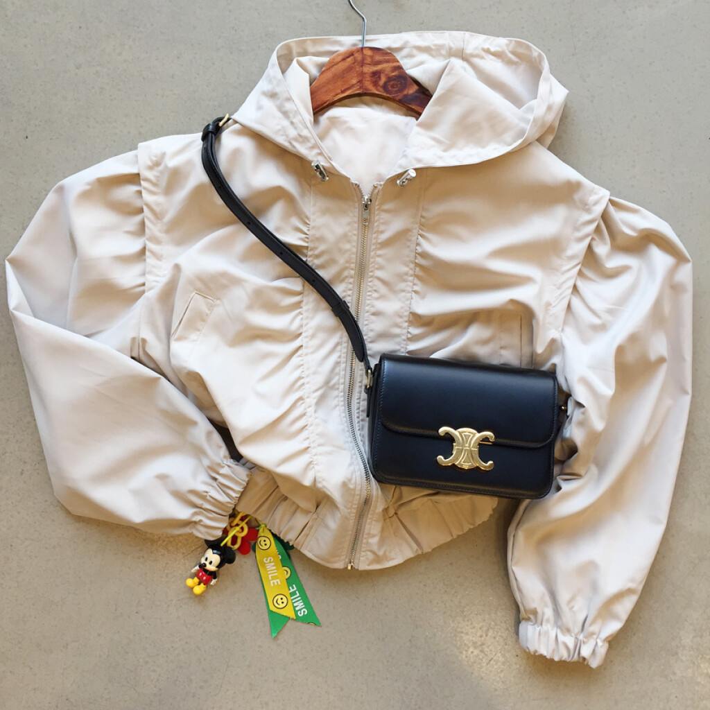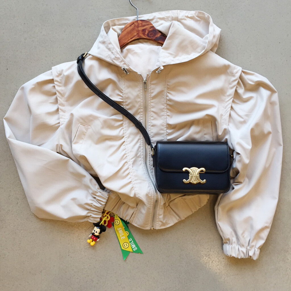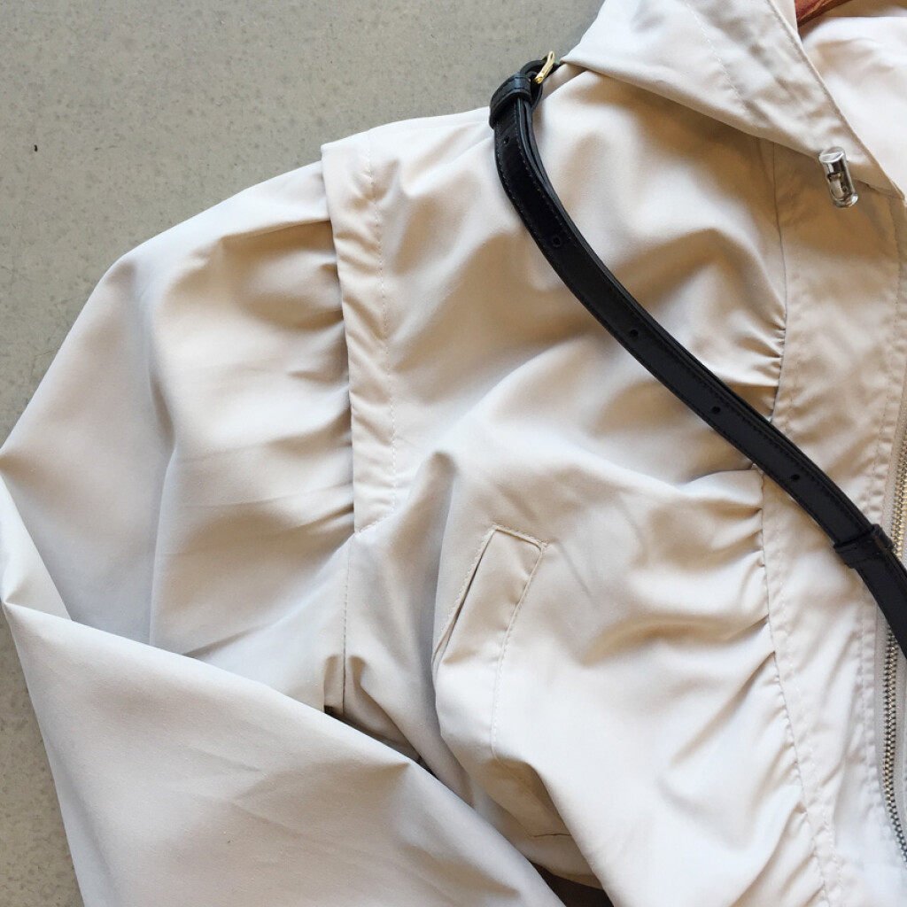 전면의 지퍼를 따라 셔링잡힌 디자인이 볼륨감있으면서