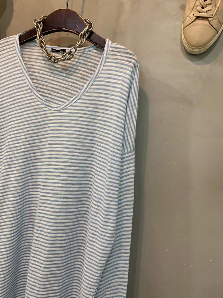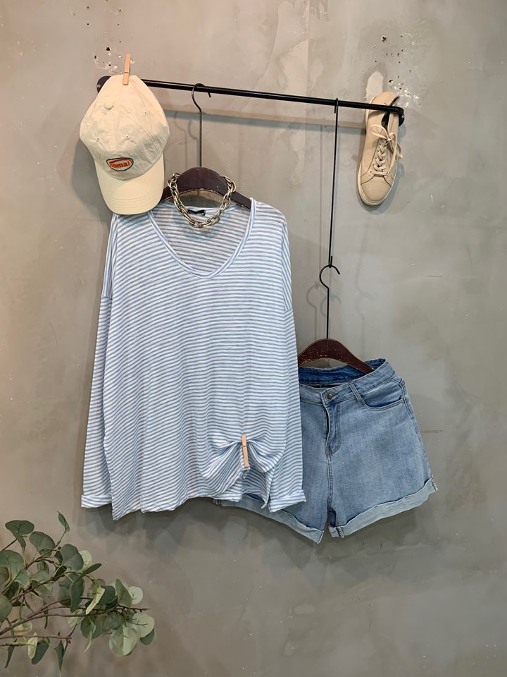 깊은 브이넥 라인으로 답답하지 않으면서