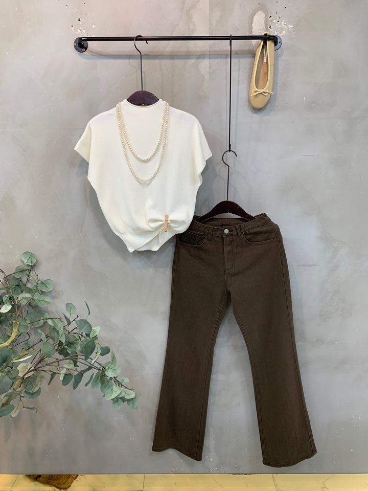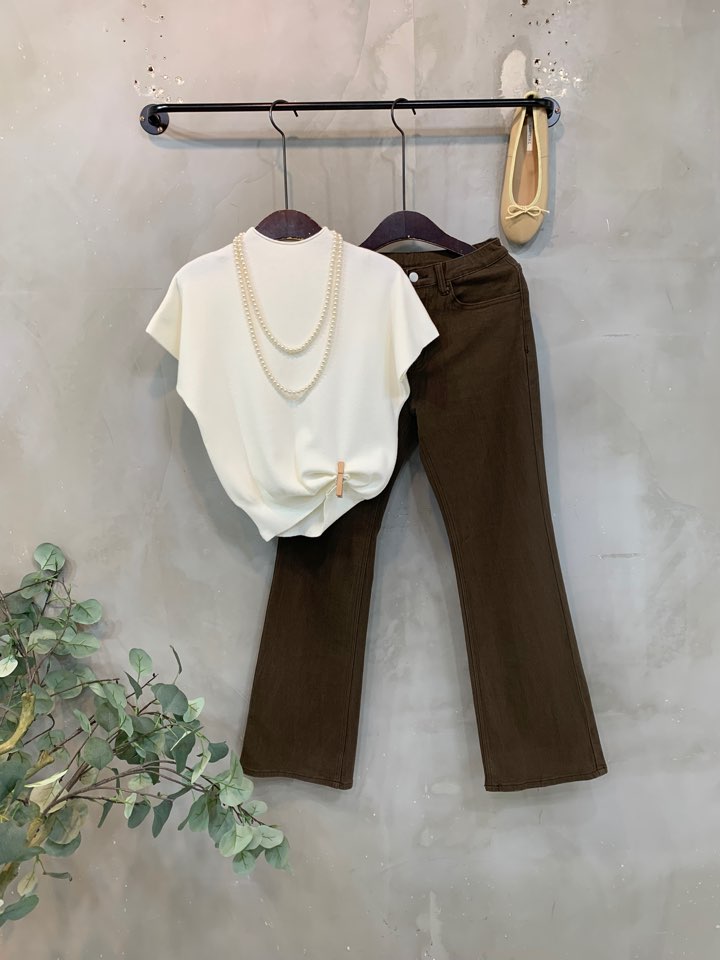 - 총장 52 / 가슴 42 / 밑단 24 / 목선~소매 25 / 소매끝단 14.5