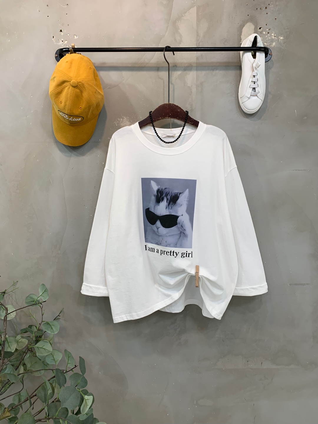 귀여운 포인트를 더한 긴팔 티셔츠에요