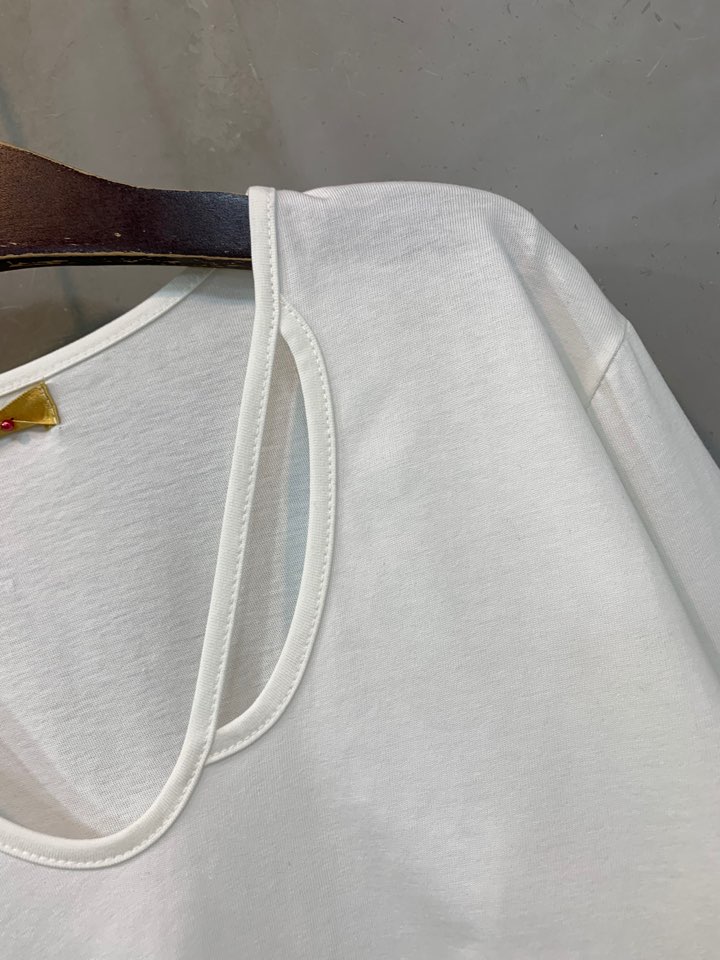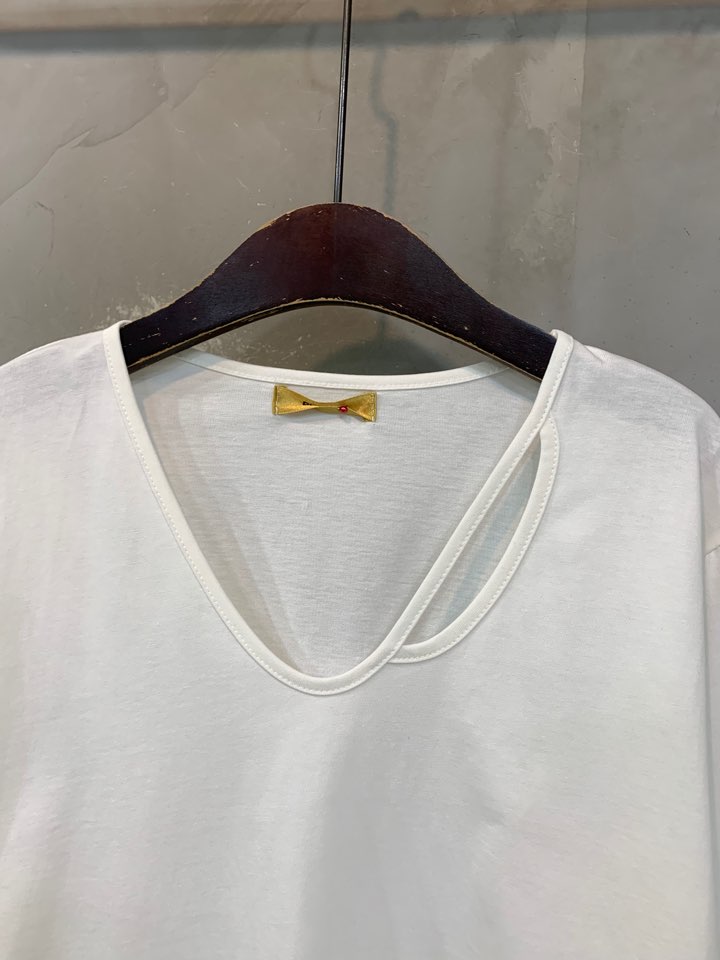 유연한 곡선으로 마무리한 브이넥으로